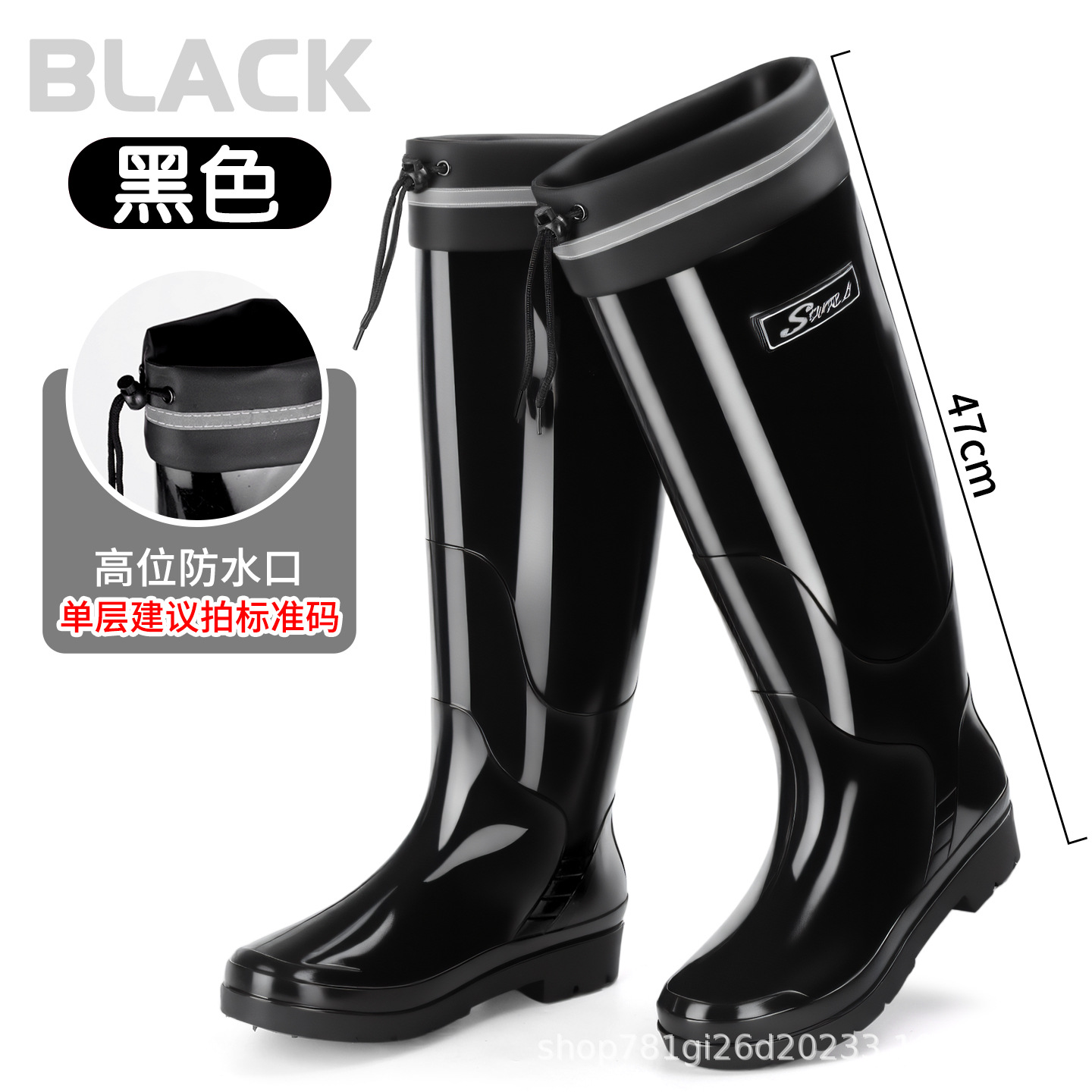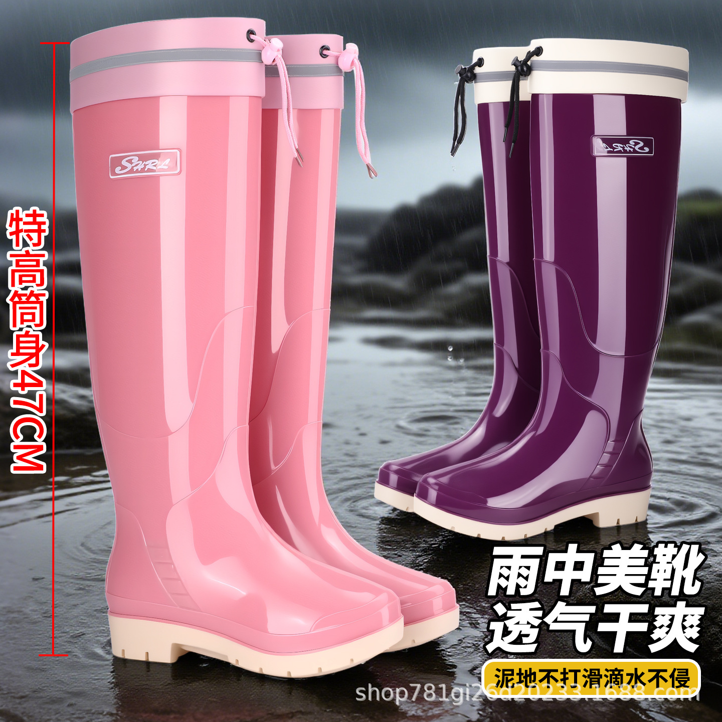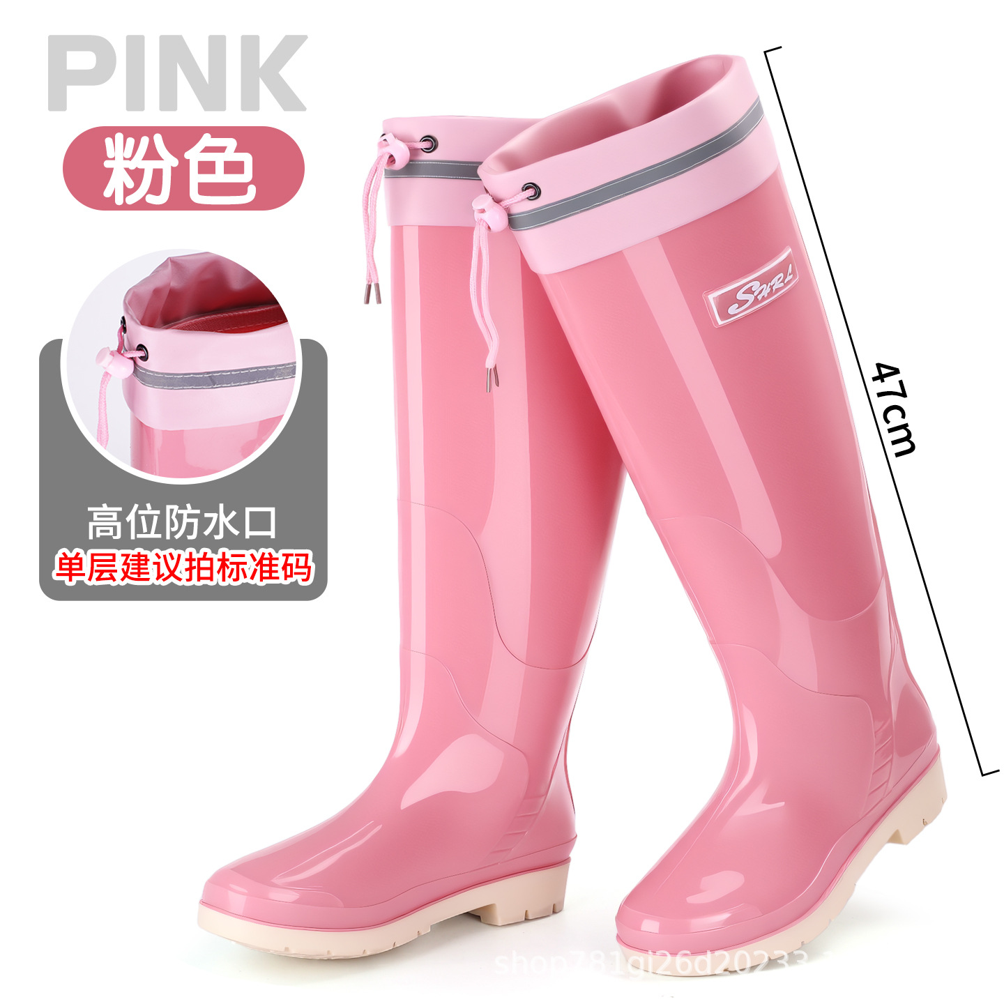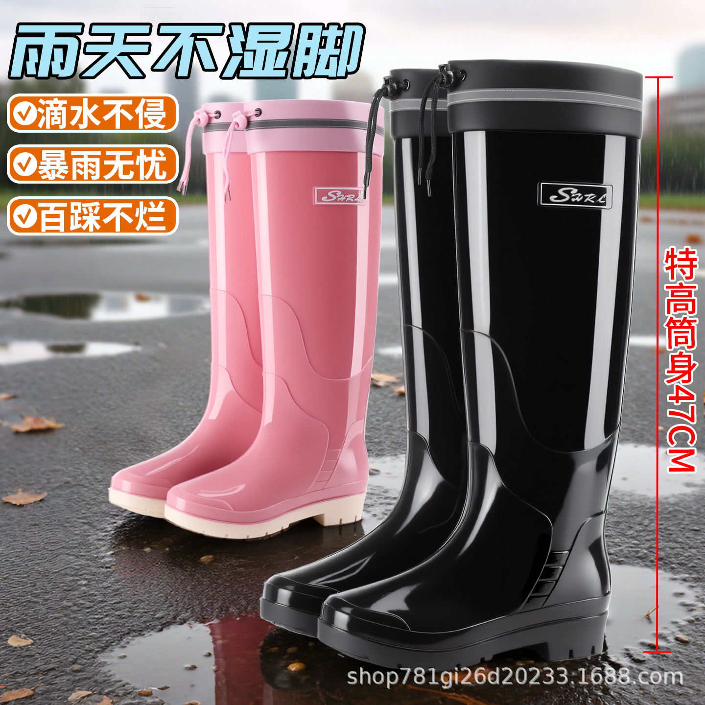 新款雨鞋时尚高筒女束口雨季防水外穿耐磨休闲防滑显瘦厚底雨靴