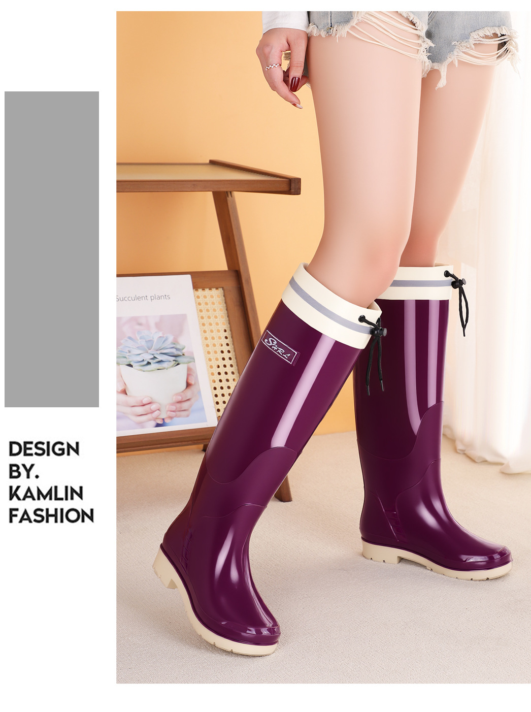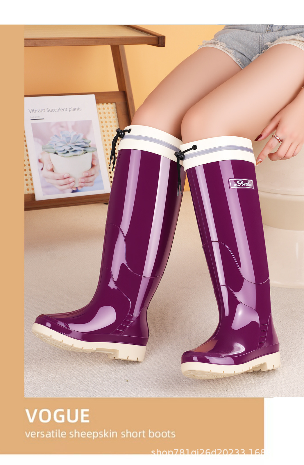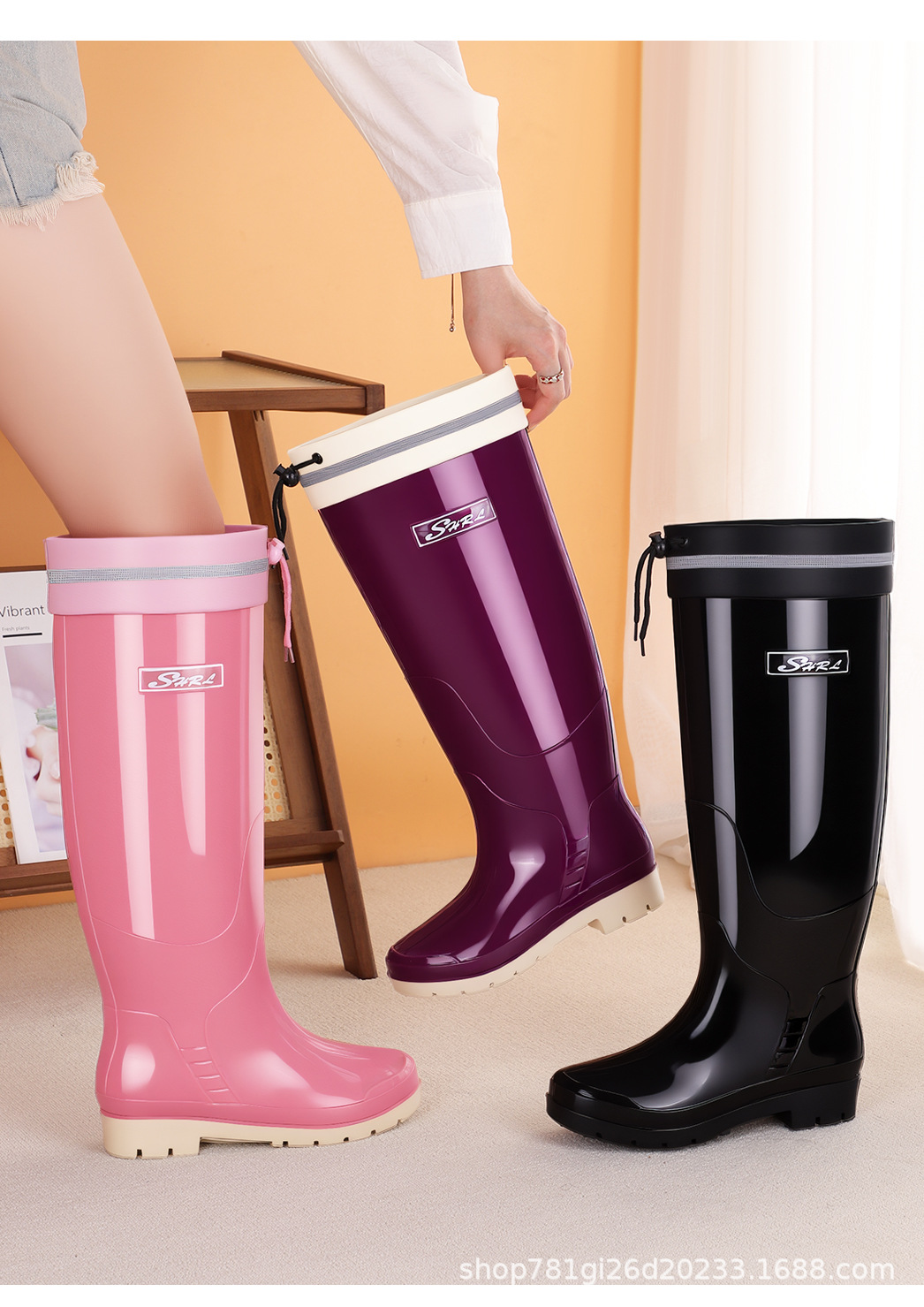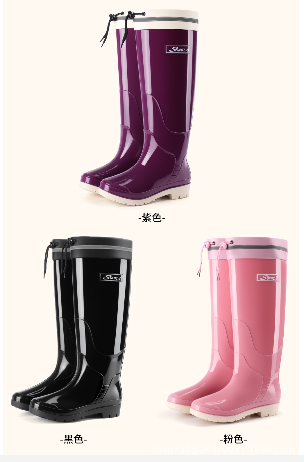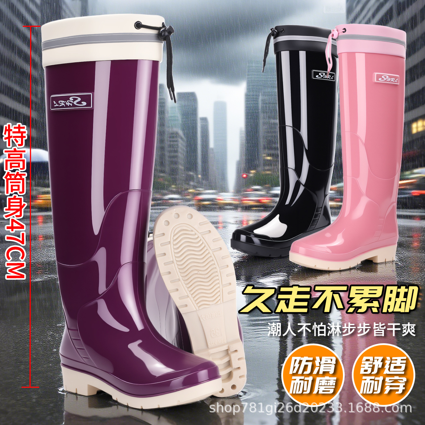 新款雨鞋时尚高筒女束口雨季防水外穿耐磨休闲防滑显瘦厚底雨靴