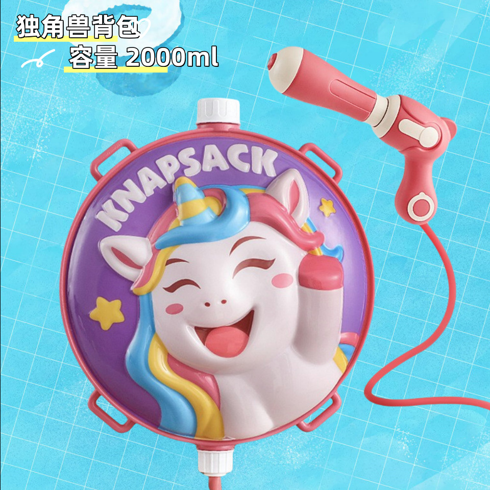 夏季儿童背包水枪玩具宝宝沙滩戏水立体男孩女孩抽拉式卡通呲水枪