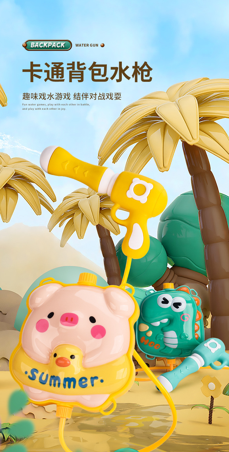 儿童新款背包水枪玩具夏天抽拉式水枪批发幼儿园礼物戏水沙滩玩具