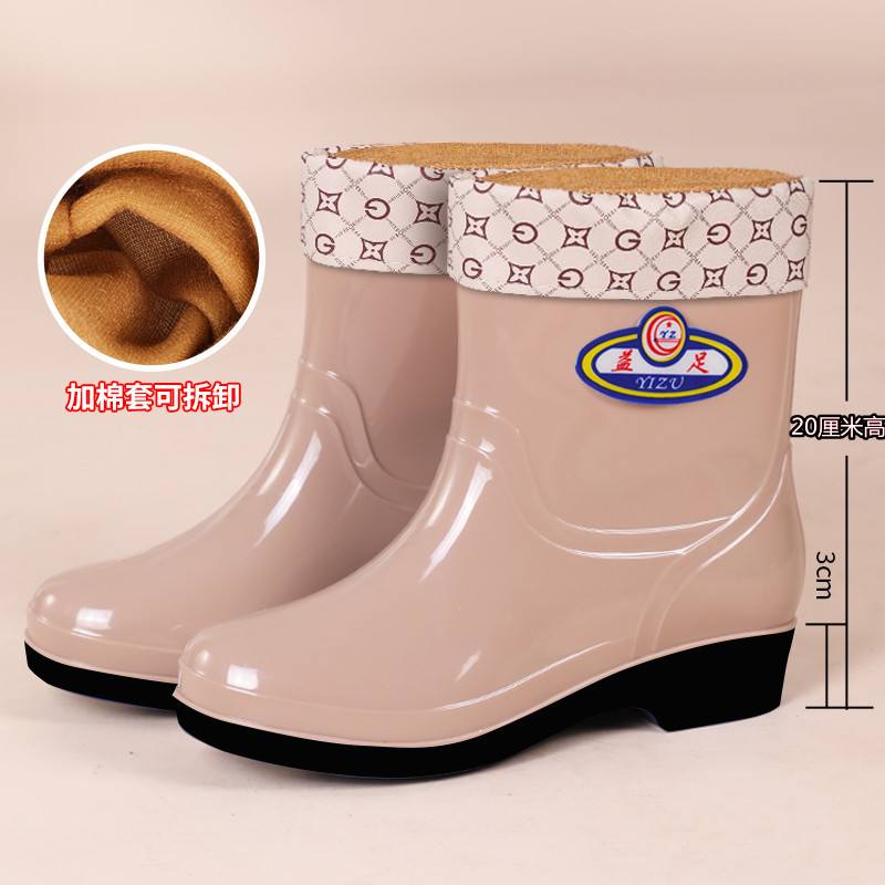雨鞋女士中筒加绒保暖雨靴防滑成人女士水鞋厨房水鞋加棉胶鞋