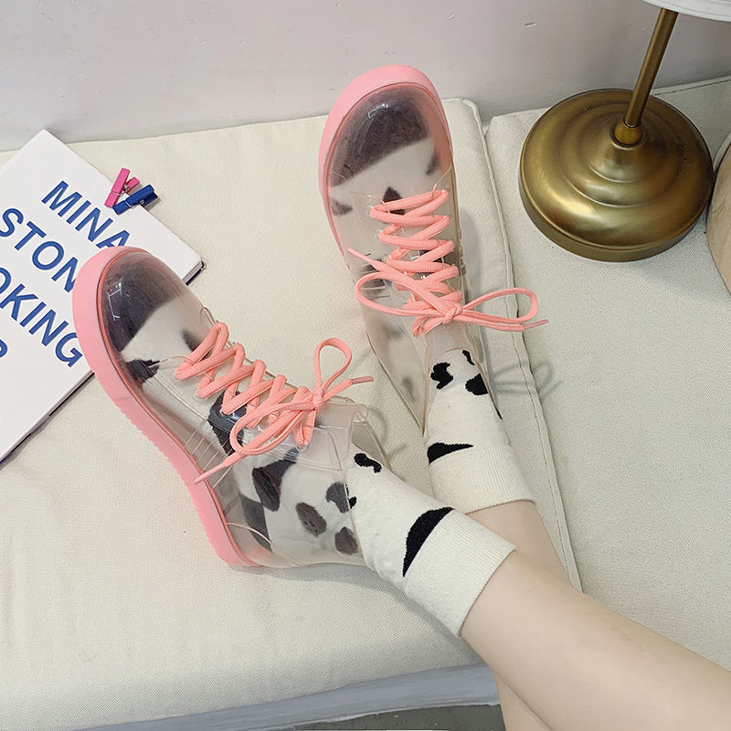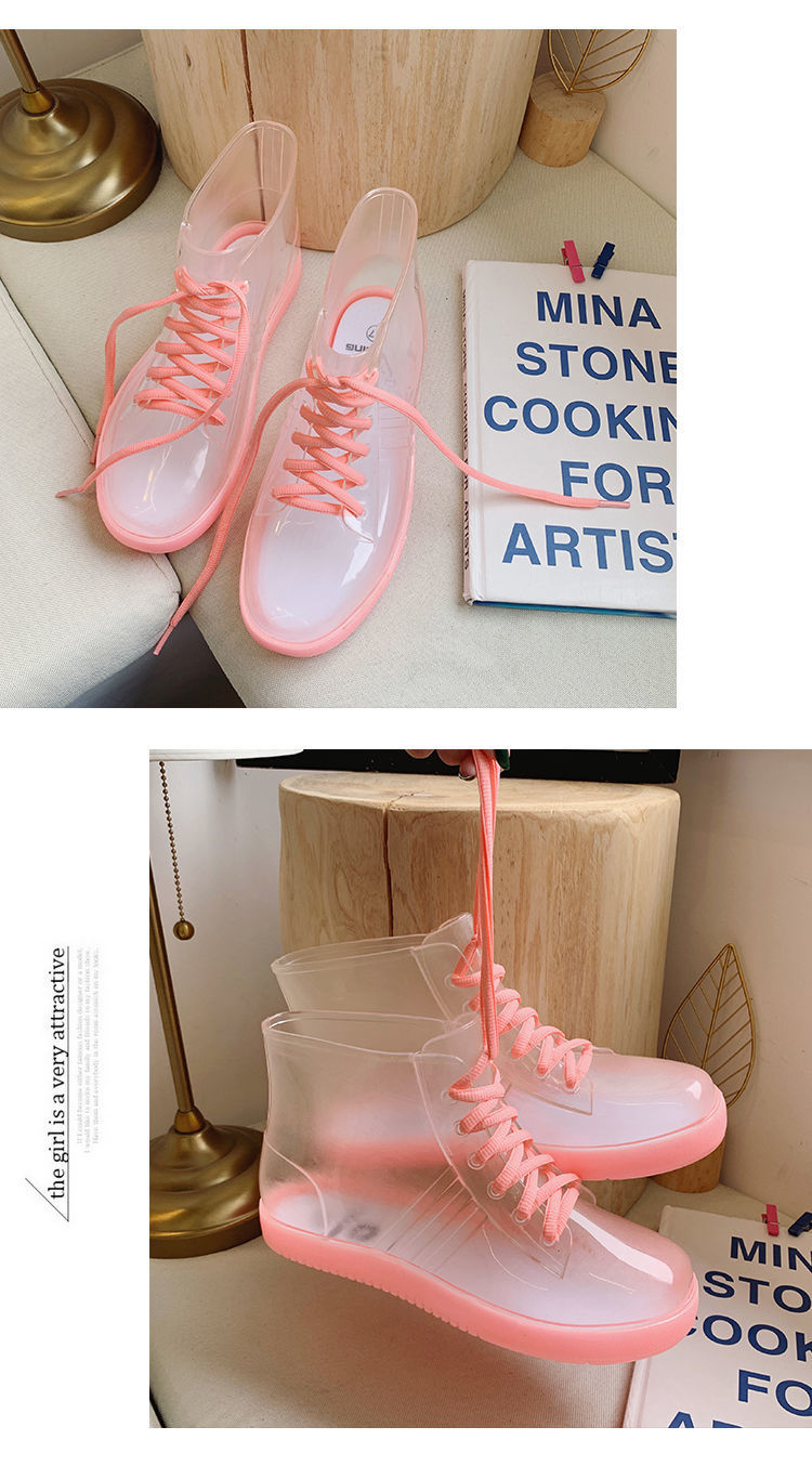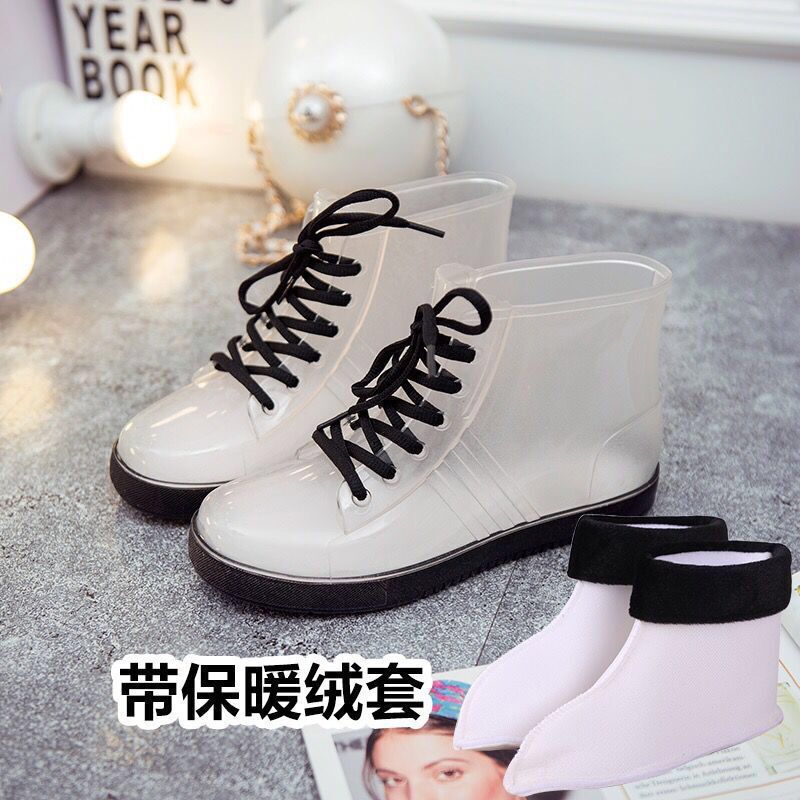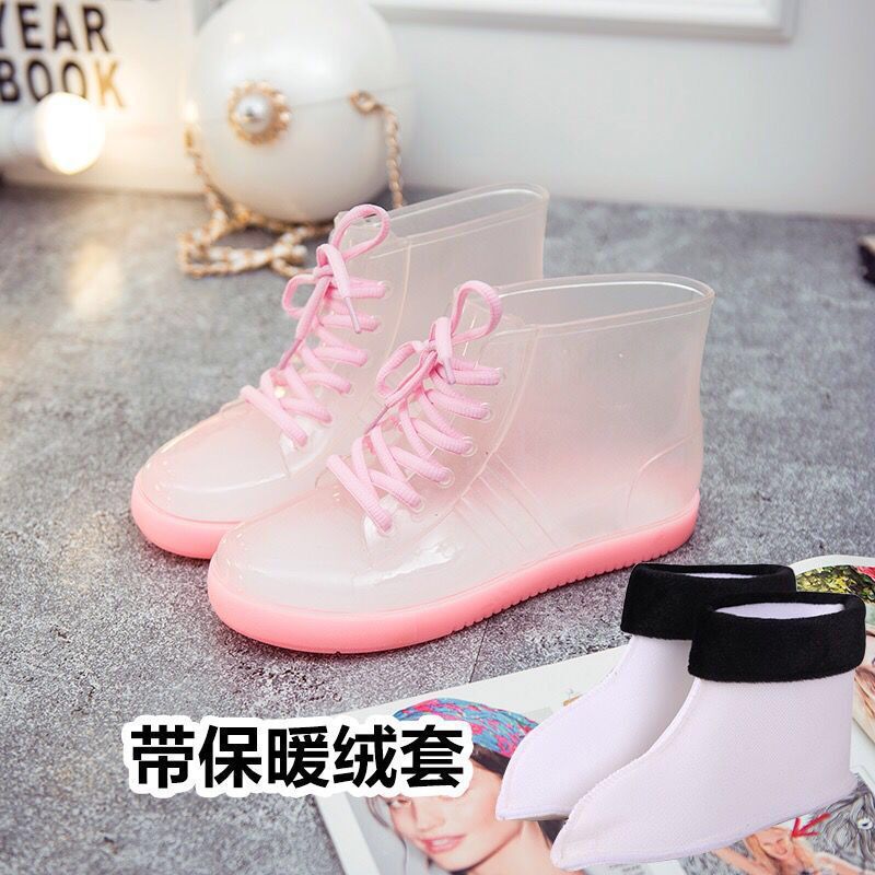 透明可爱成人短筒雨鞋女防水鞋防滑胶鞋套鞋韩式时尚款外穿雨靴秋