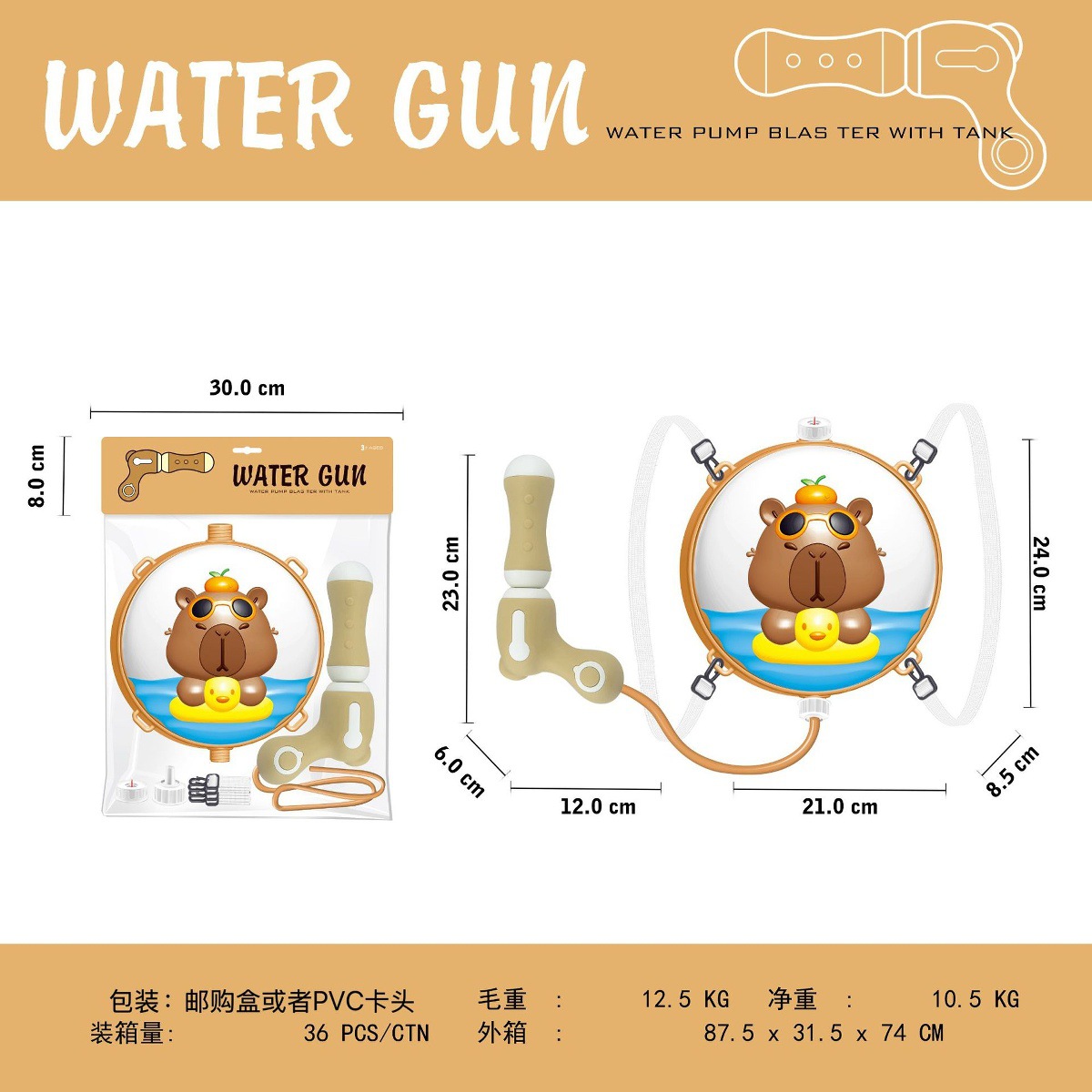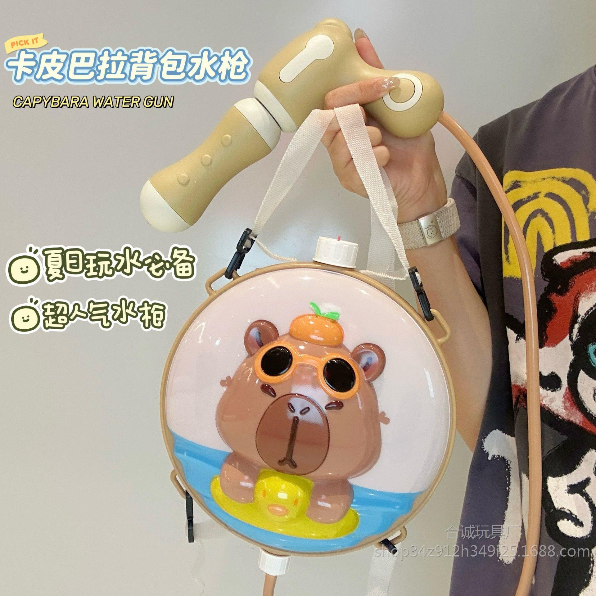 卡皮巴拉儿童互动水枪玩具戏水男孩女孩沙滩抽拉式喷水大容量背包