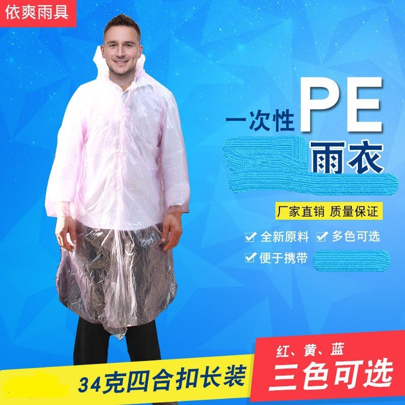 工厂销售一次性PE雨衣34克四合扣雨衣批发