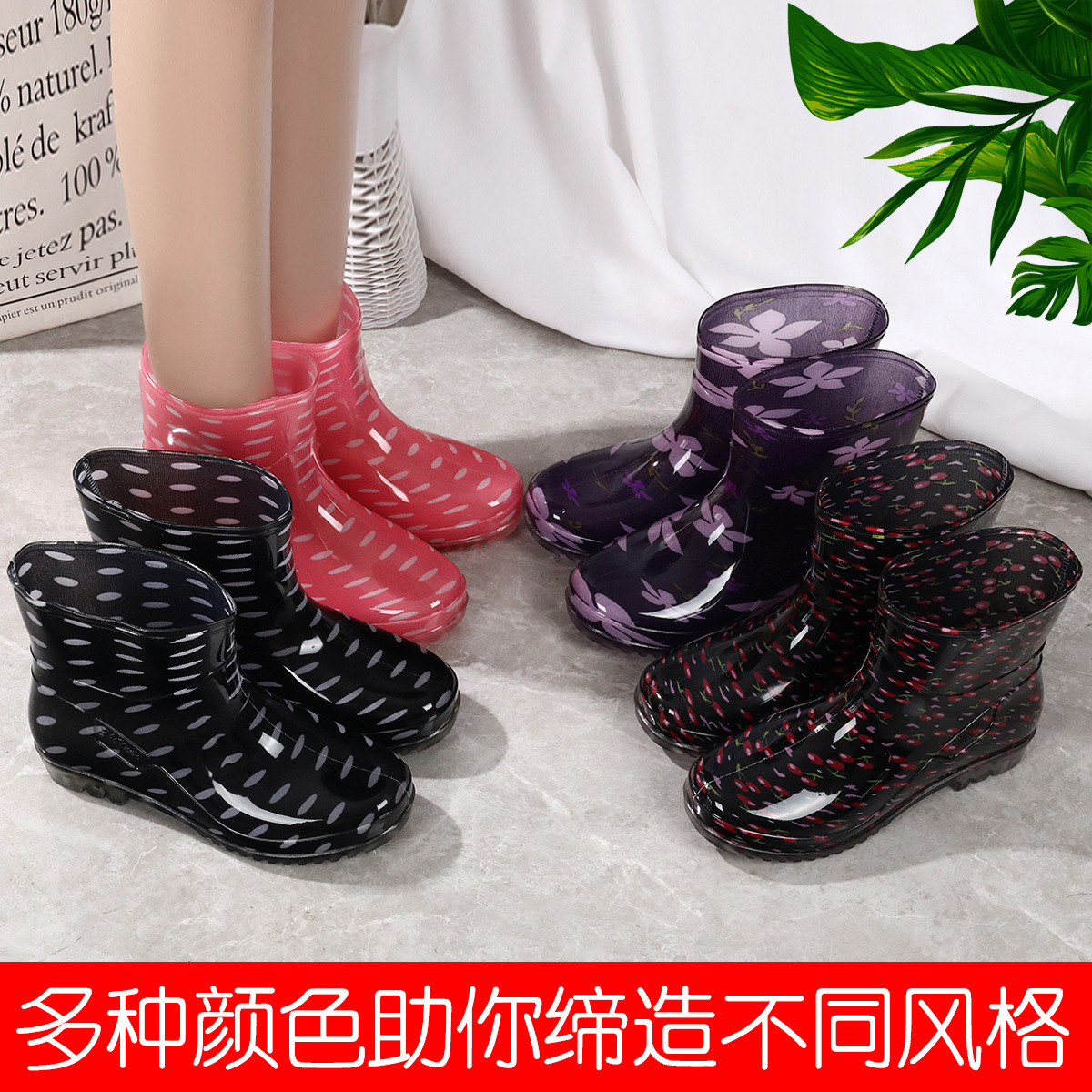 雨鞋女短筒时尚防滑雨靴成人水鞋外穿水靴厨房防水鞋保暖加棉胶鞋
