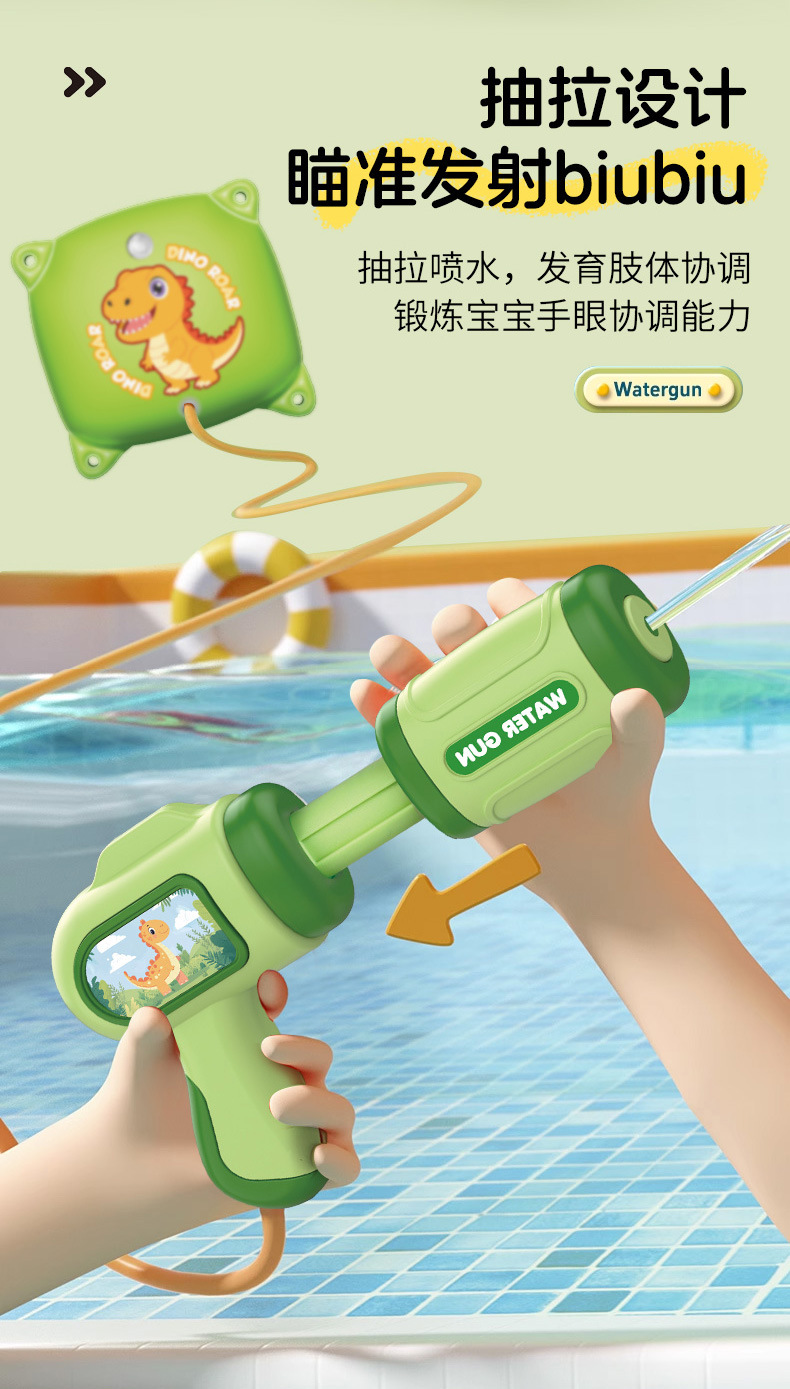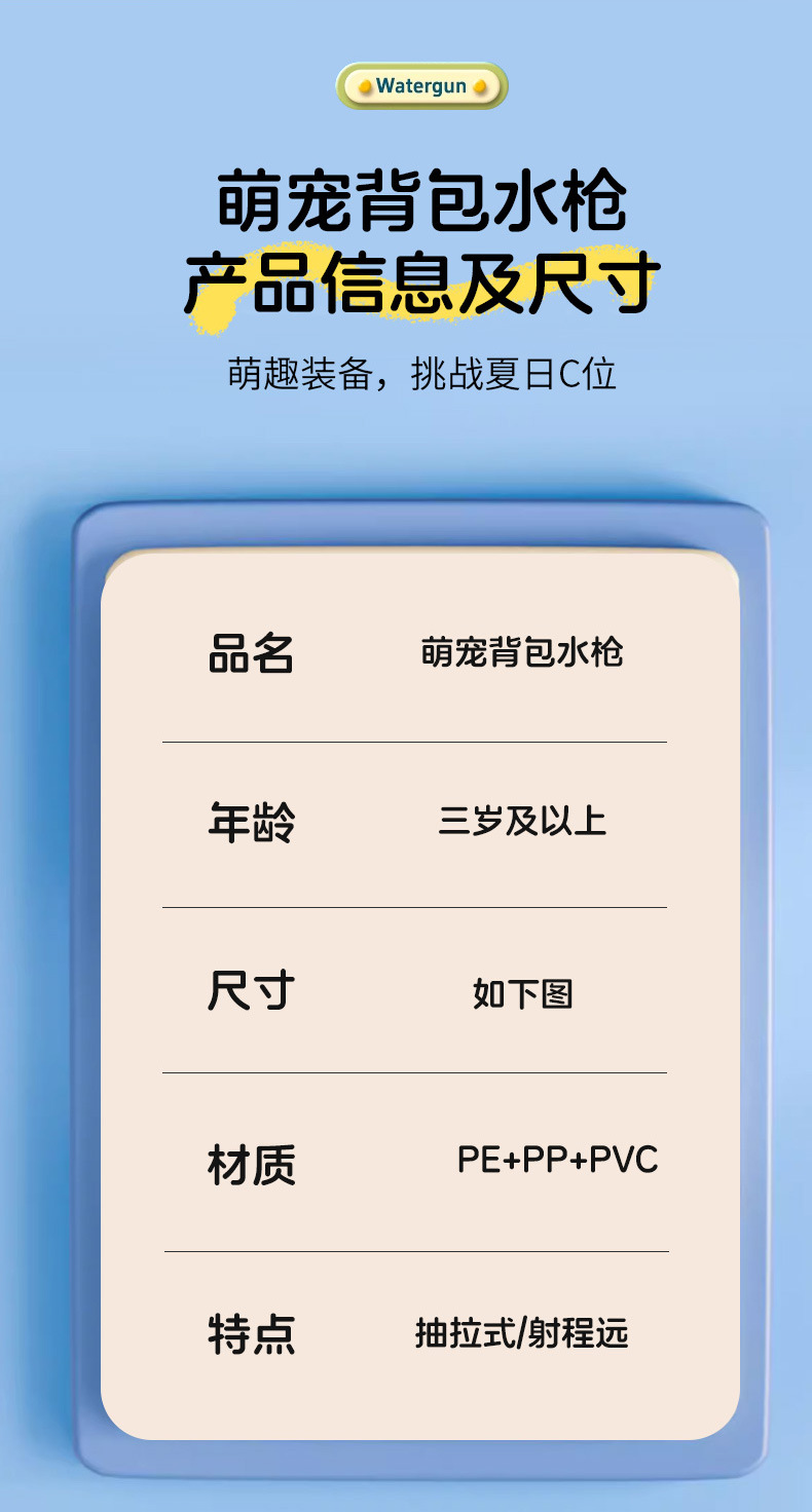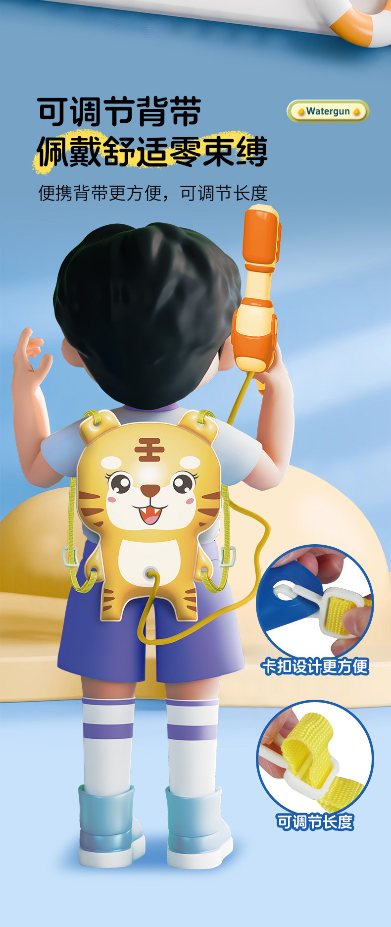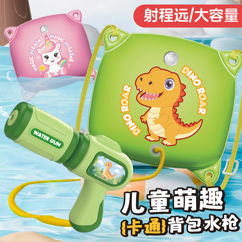 卡通儿童背包水枪抽拉式大容量呲水枪沙滩户外戏水玩具地摊批发