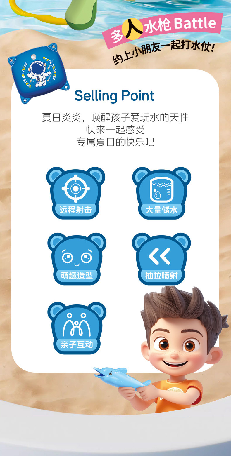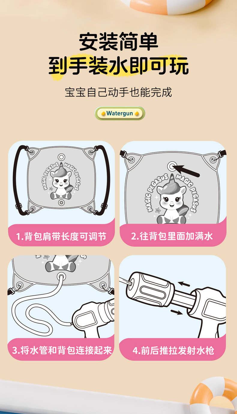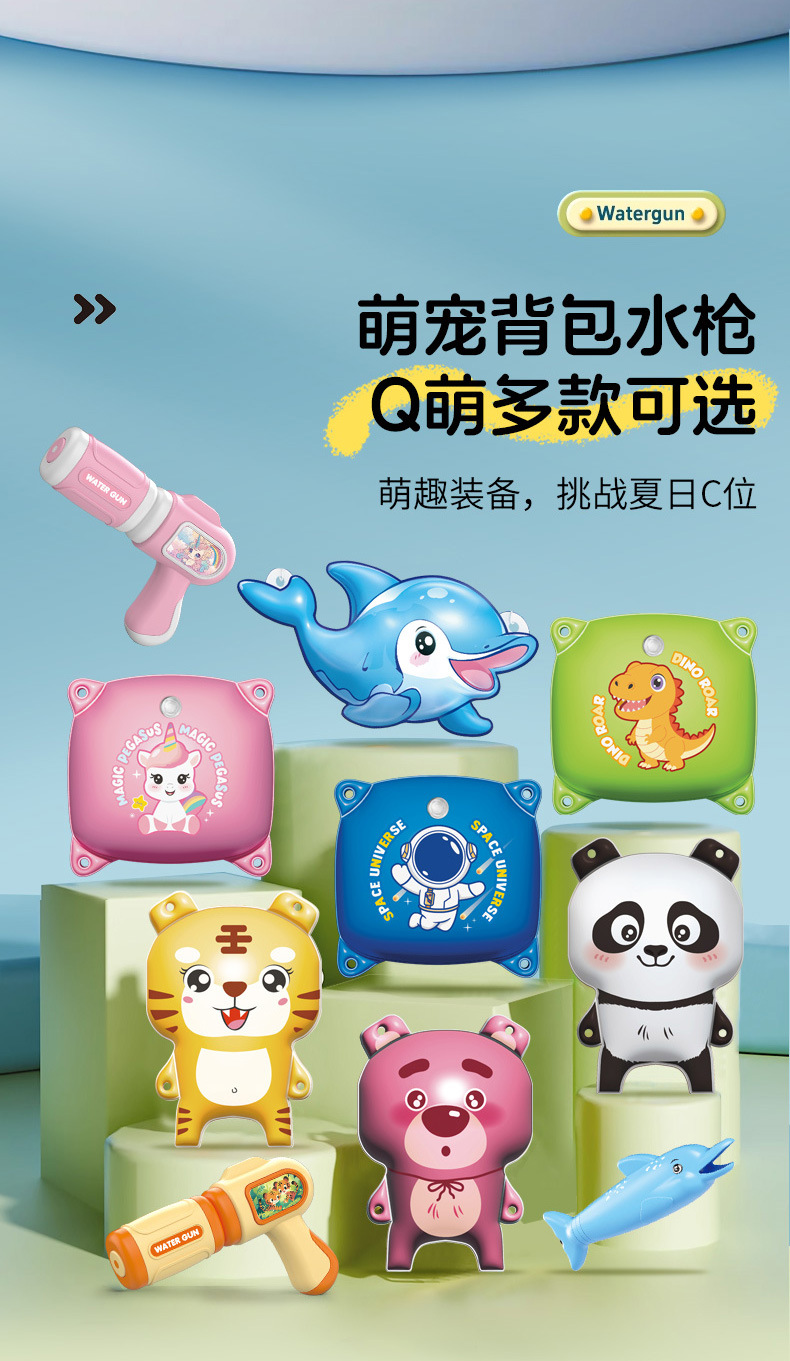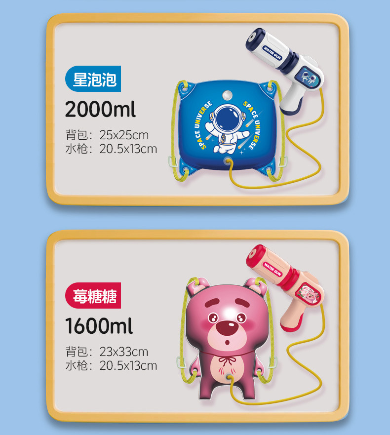 卡通儿童背包水枪抽拉式大容量呲水枪沙滩户外戏水玩具地摊批发
