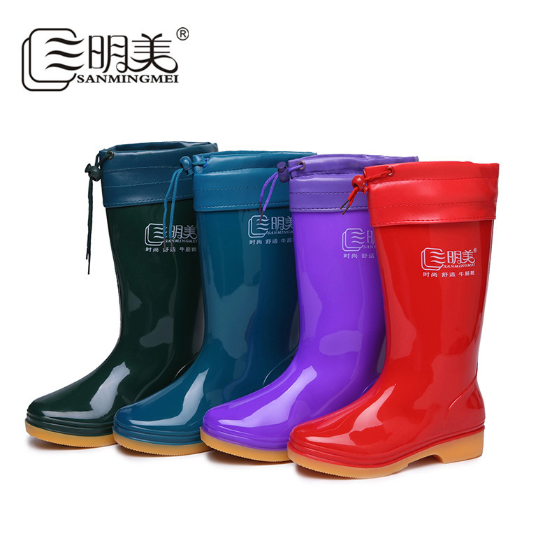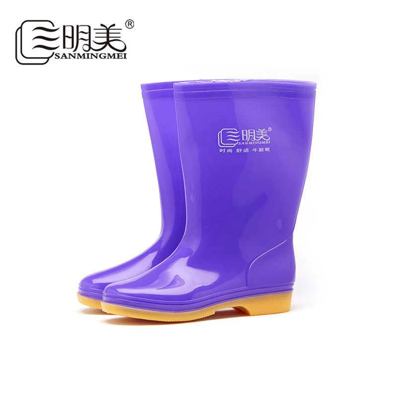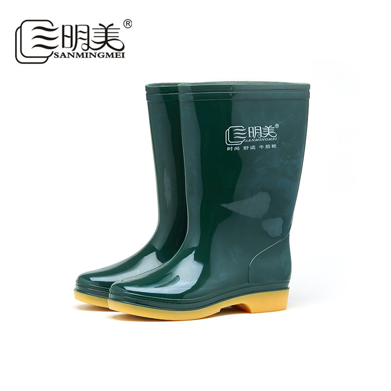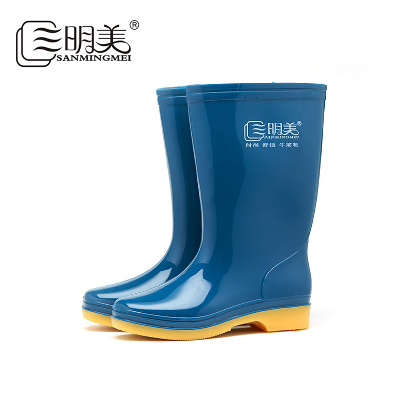 三明美中筒女士雨鞋纯色防水鞋防滑女雨靴耐磨劳保鞋0902百搭低跟