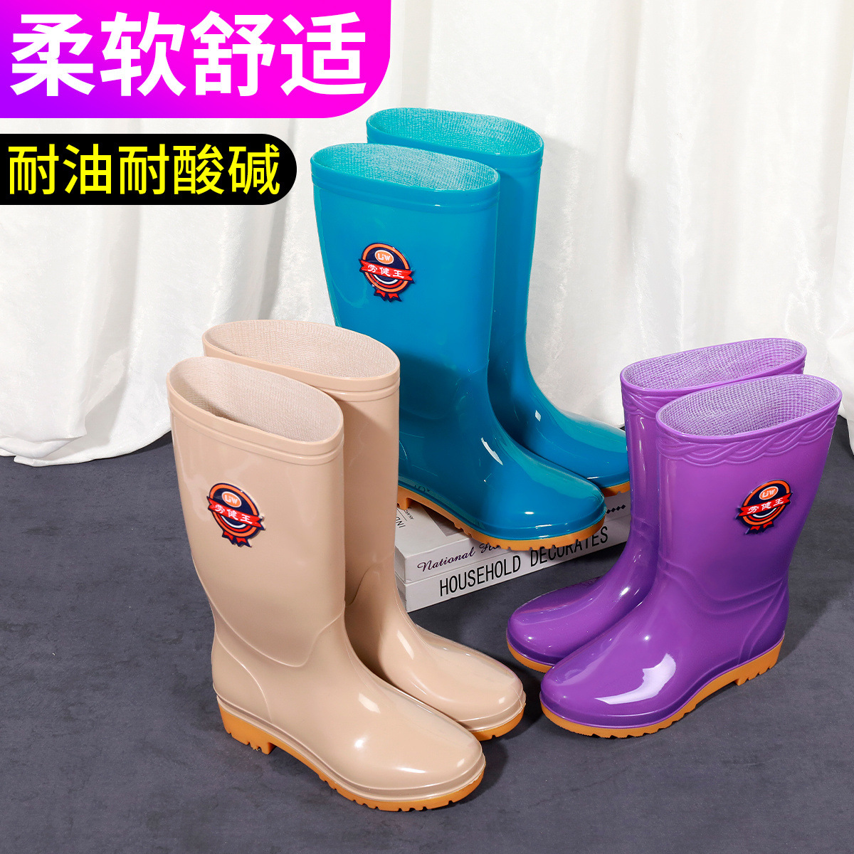 高中筒雨鞋女款雨靴时尚防水防滑水鞋洗衣厨房工作胶鞋套鞋水桶鞋
