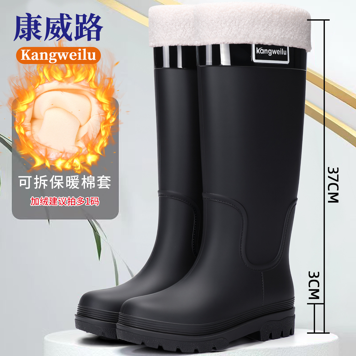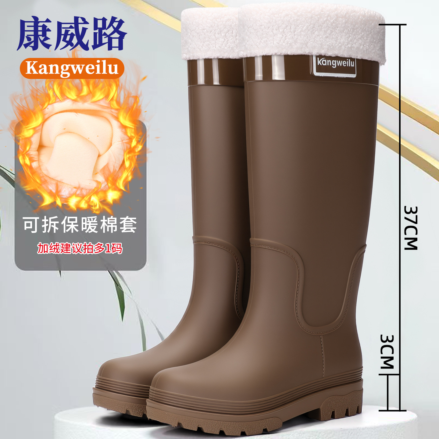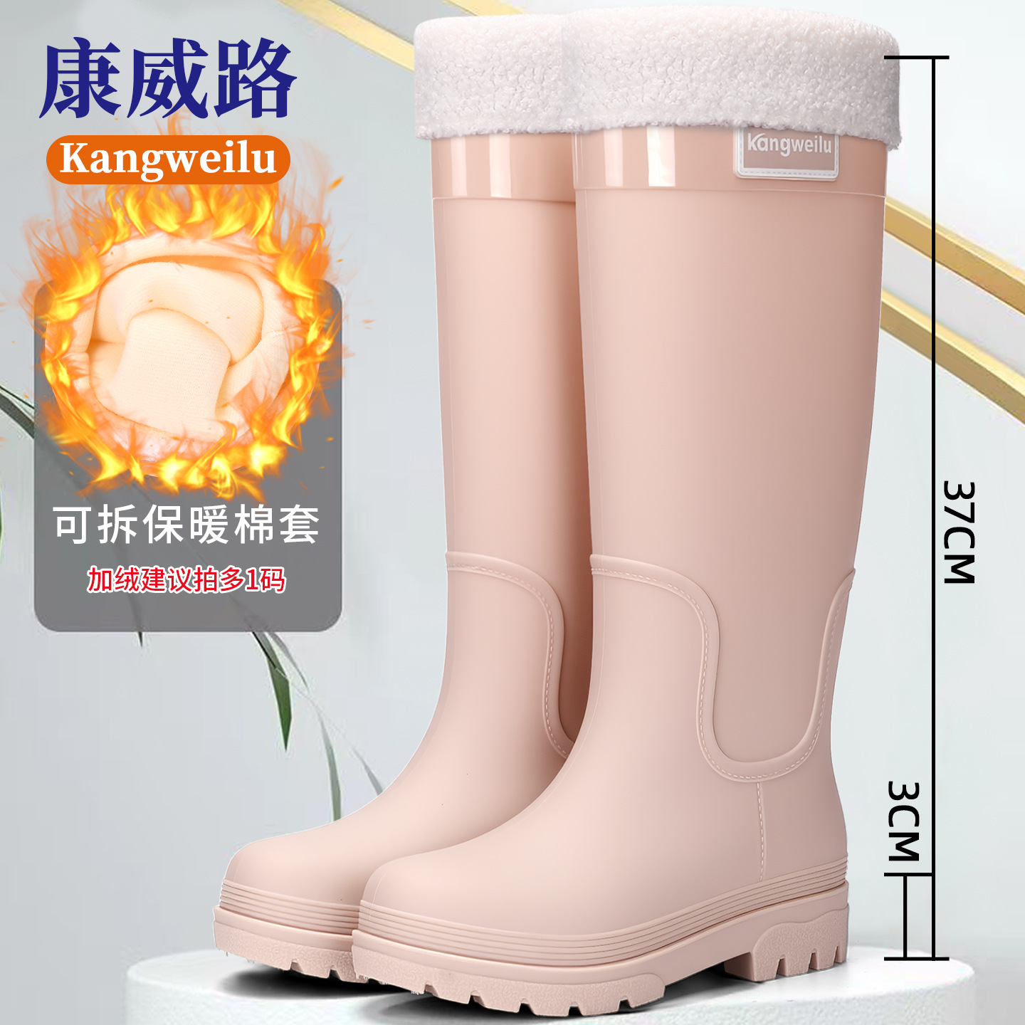 时尚雨鞋女款加绒长筒雨靴雨林徒步厚底防水套鞋防滑外穿赶海水鞋
