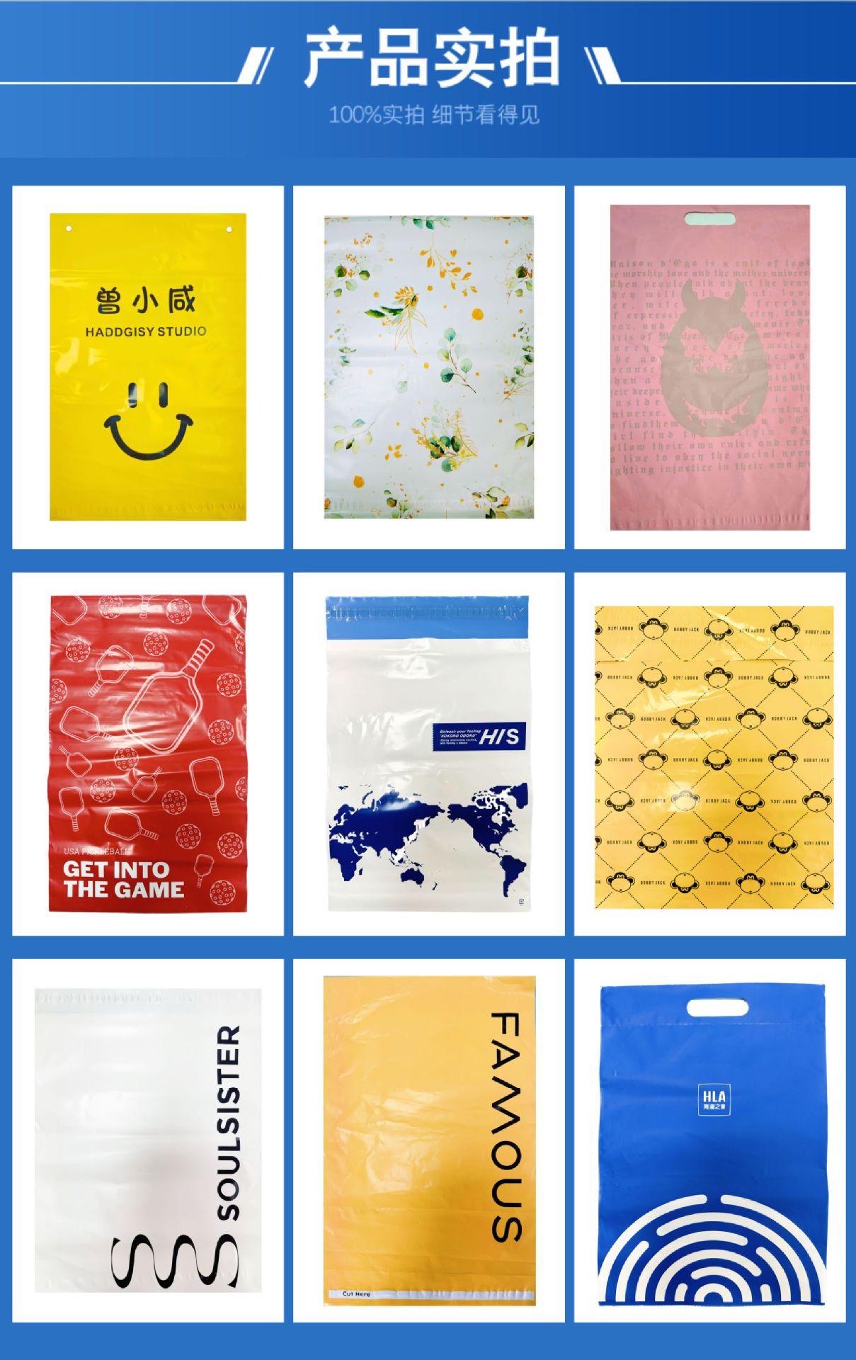 彩色定制手提加印图案打包袋子电商物流服装手拎加厚全新料快递袋