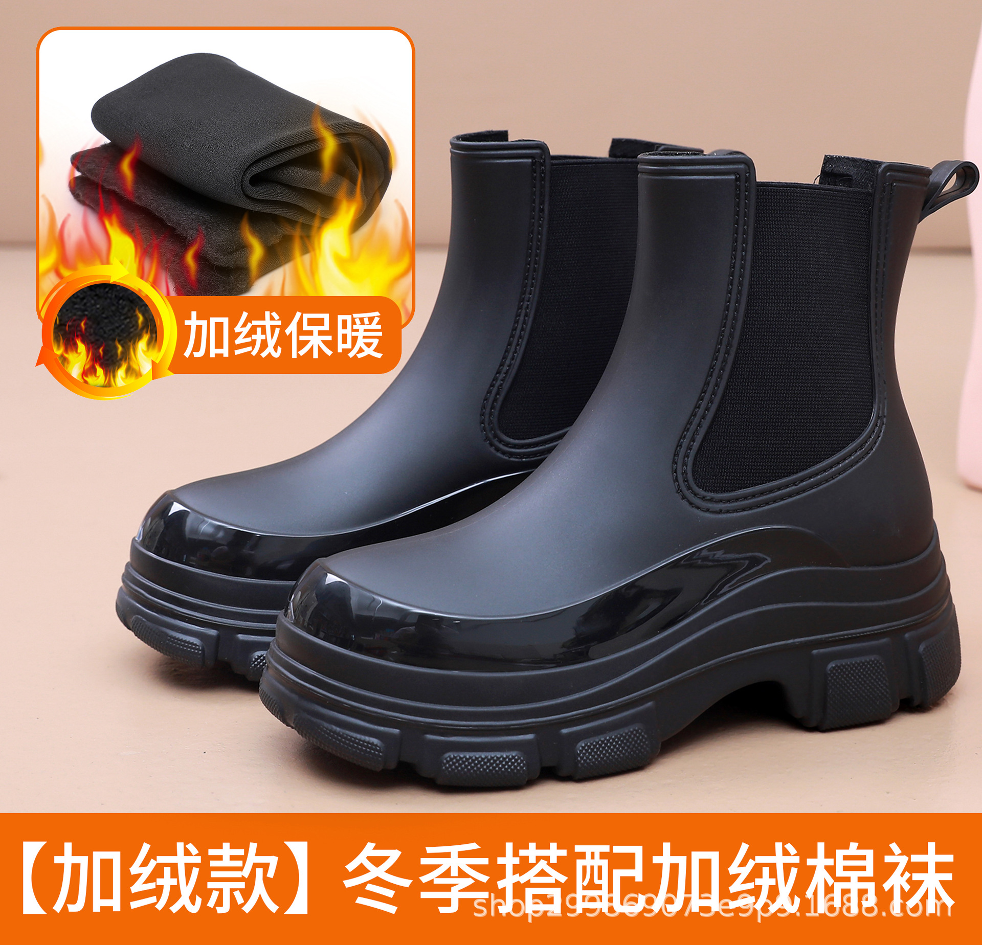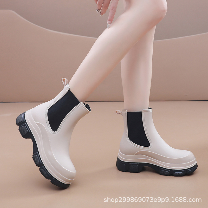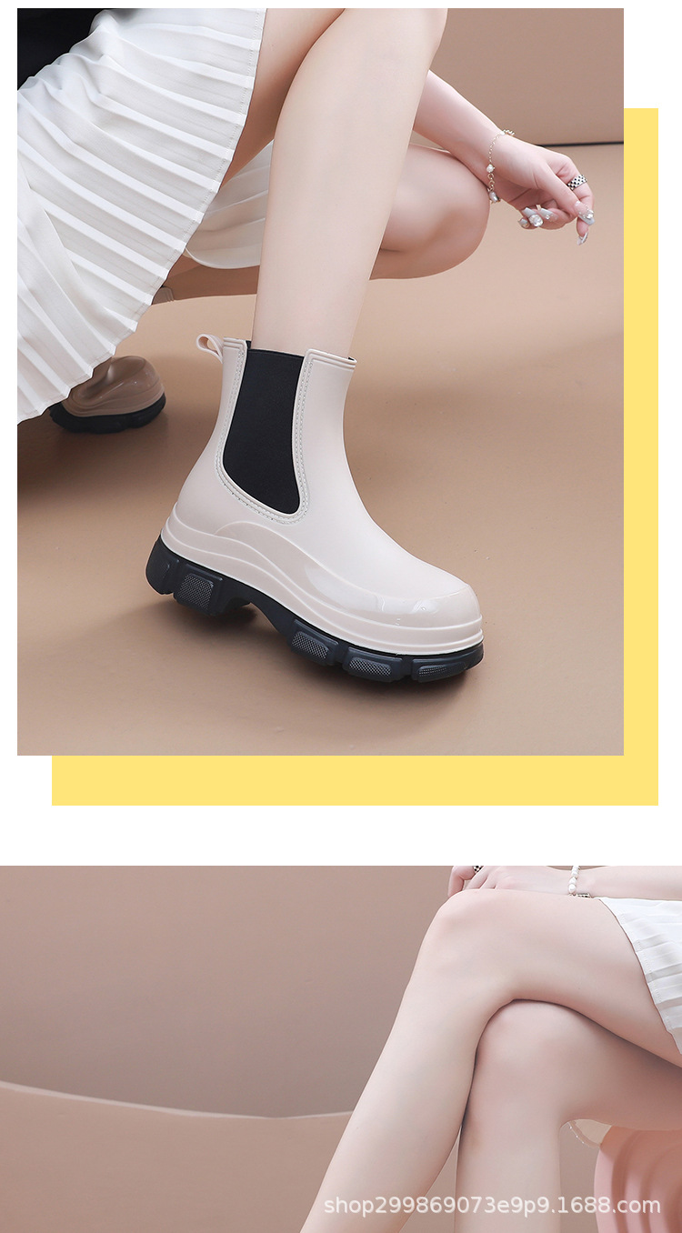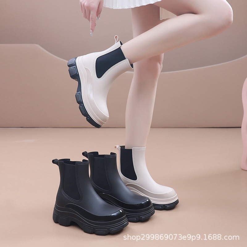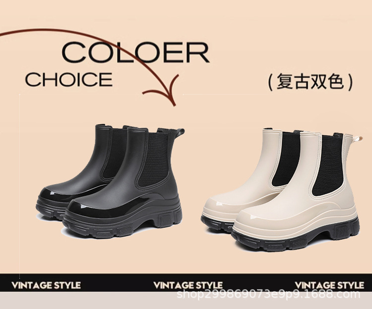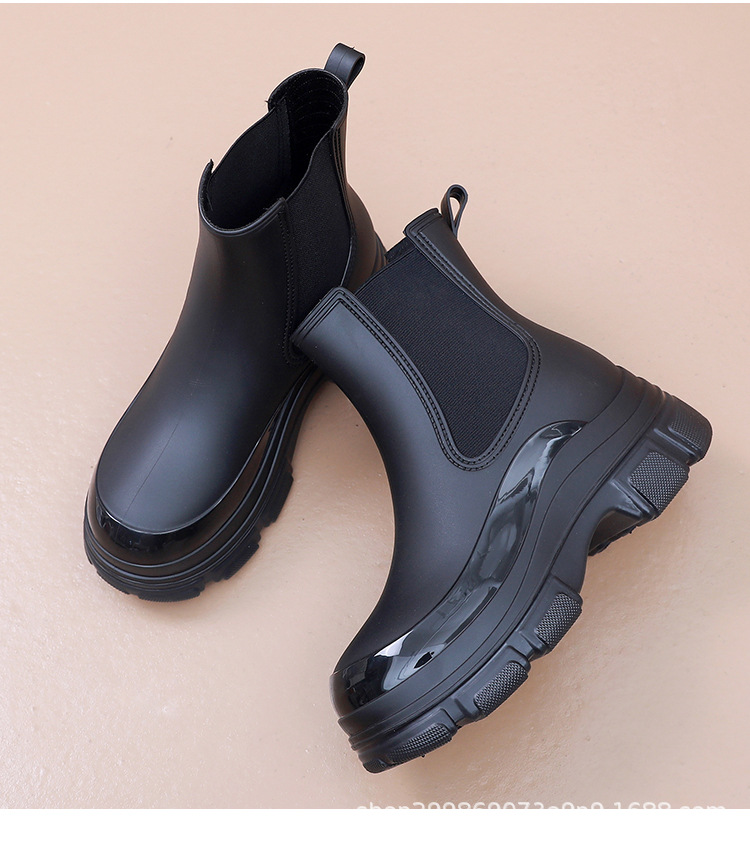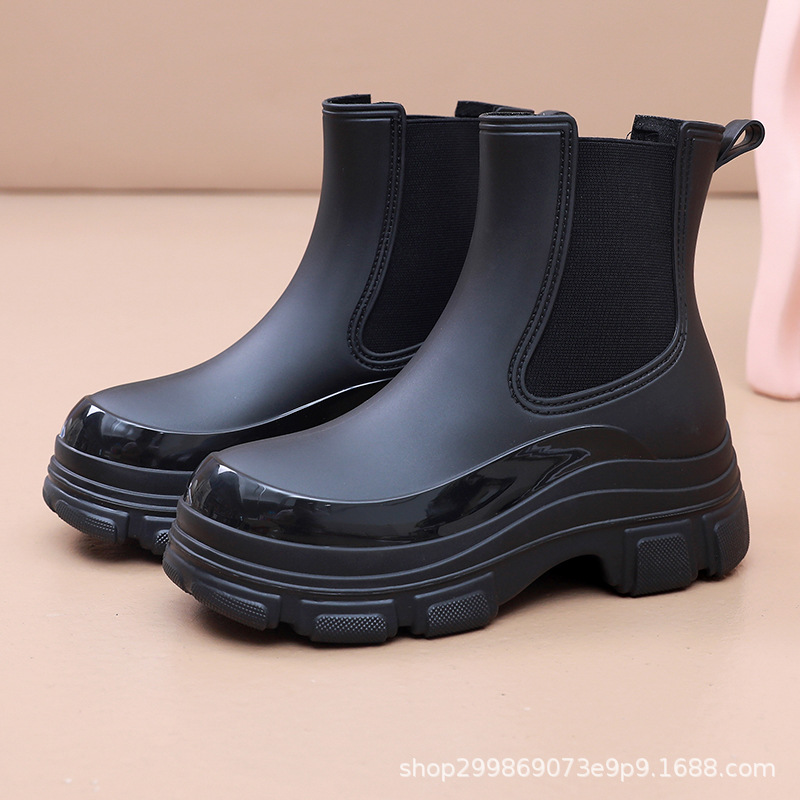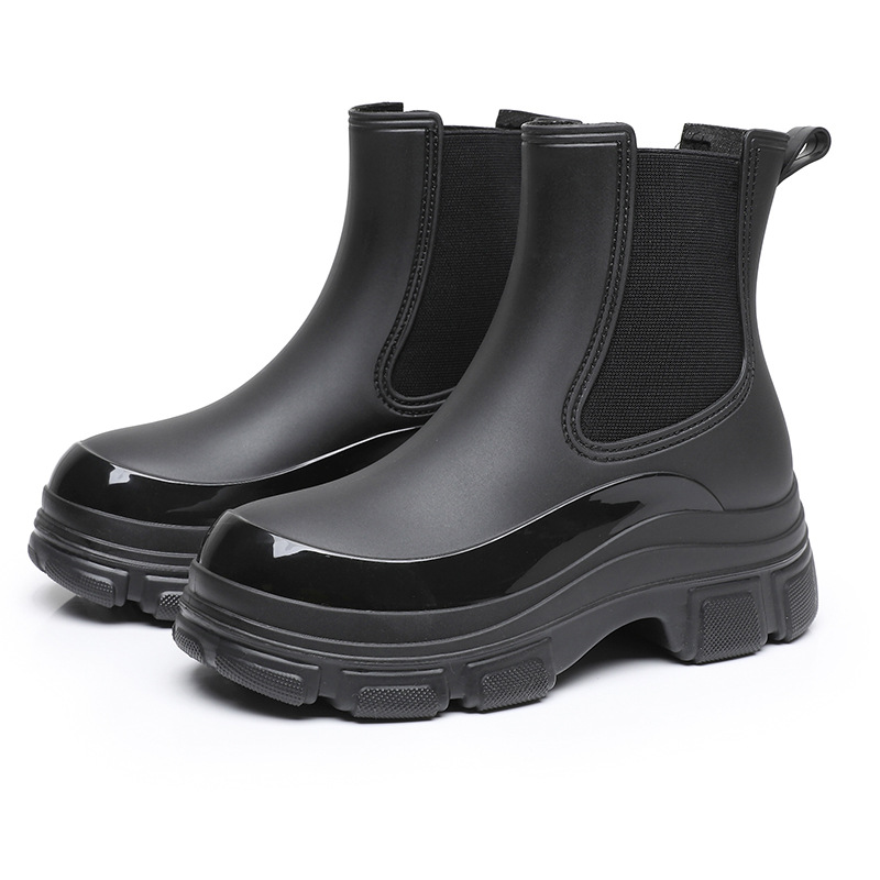 出口时尚雨鞋女式防水鞋马丁靴厚底雨靴女款防滑水靴外穿买菜胶鞋