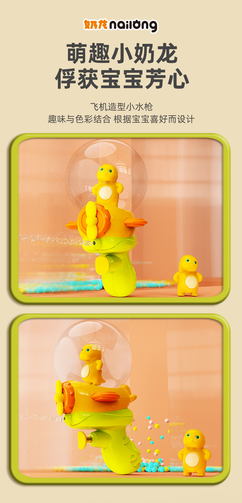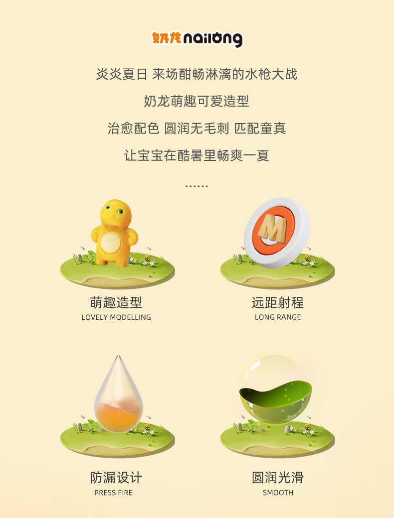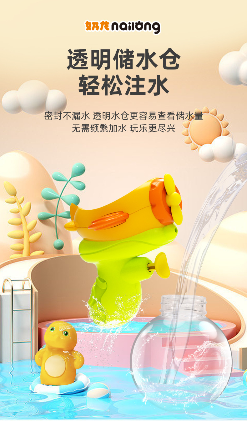 正版授权奶龙飞机小水枪男女孩灯光呲滋喷水枪宝宝玩水儿童玩具