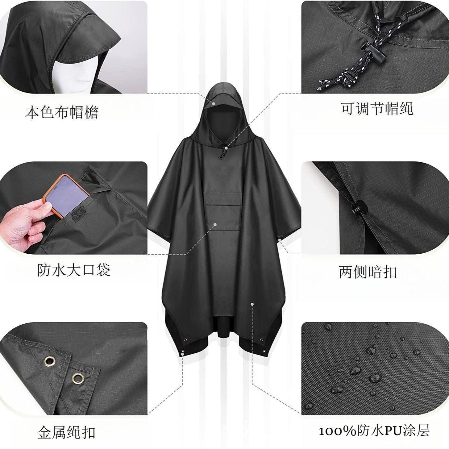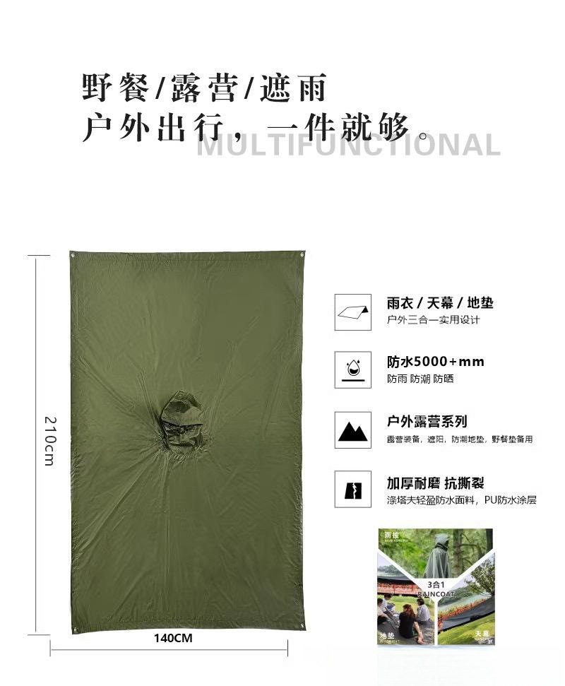 天幕多功能三合一户外方块雨披外贸款登山徙步斗篷雨衣骑行成人款