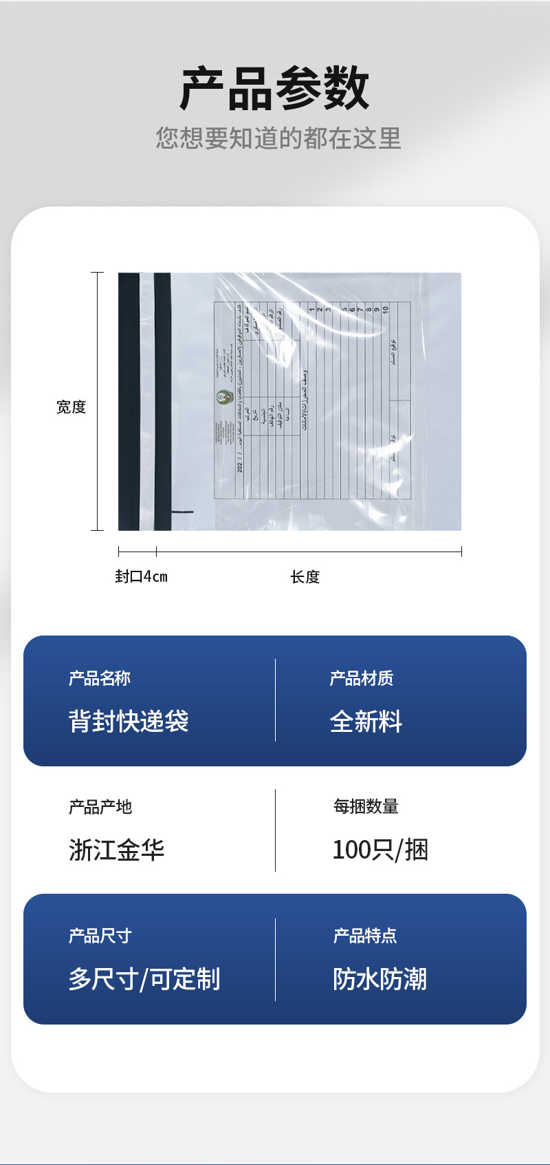 跨境电商多色背封袋生物基全降解物流包装袋子磨砂透明快递袋