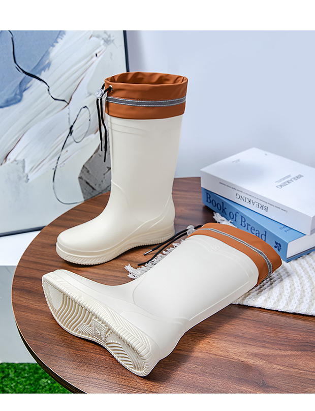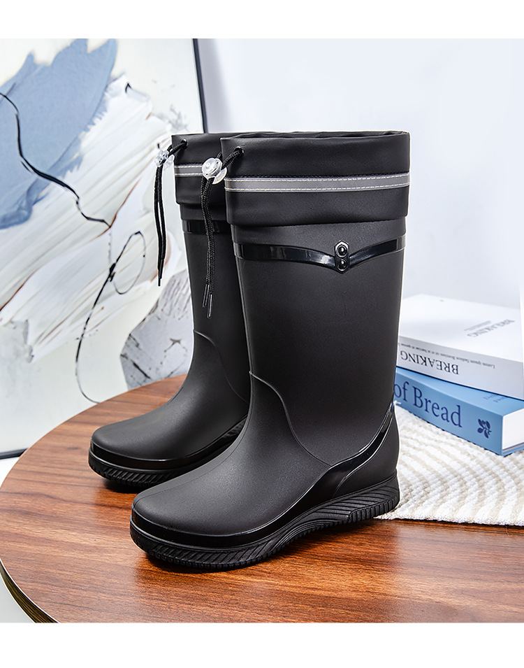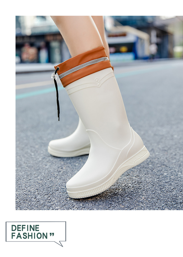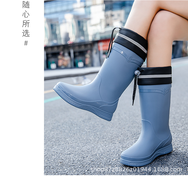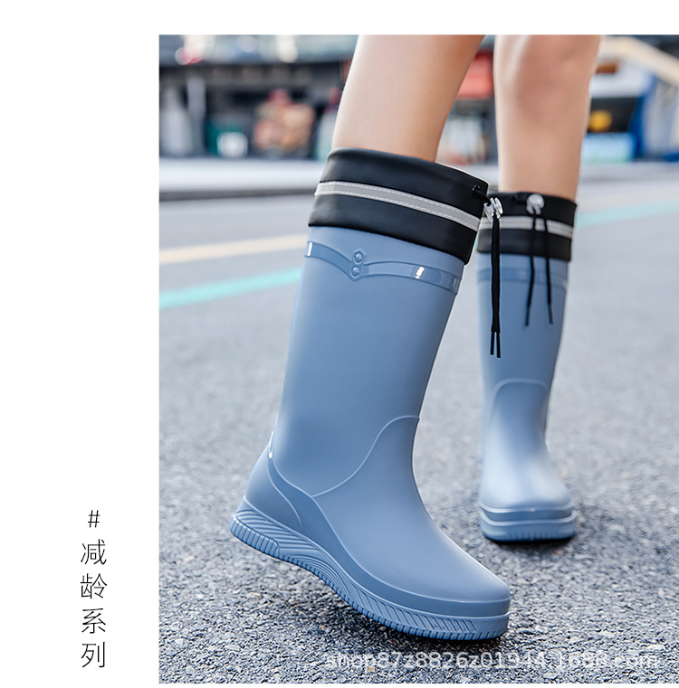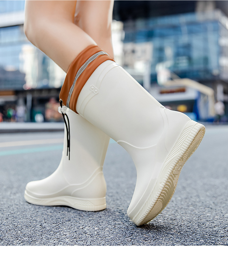2025轻便厚底成人水鞋女款外穿时尚中筒靴平底女士防水防滑雨靴女