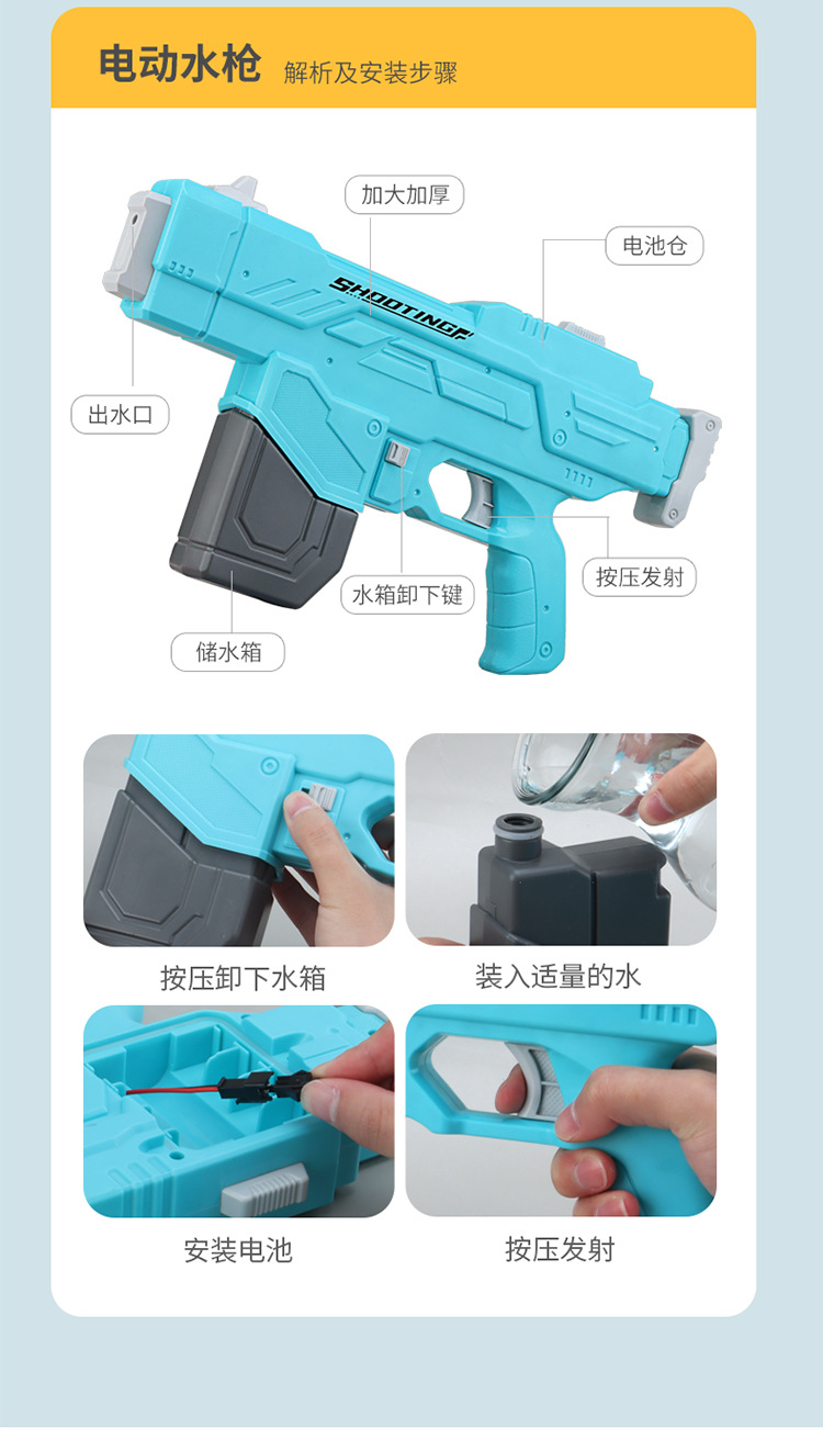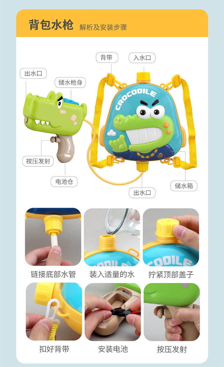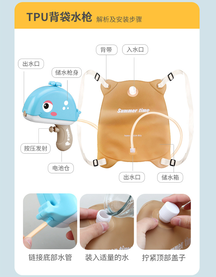 跨境爆款 儿童卡通电动背包水枪戏水打水战呲水枪玩具幼儿园礼物