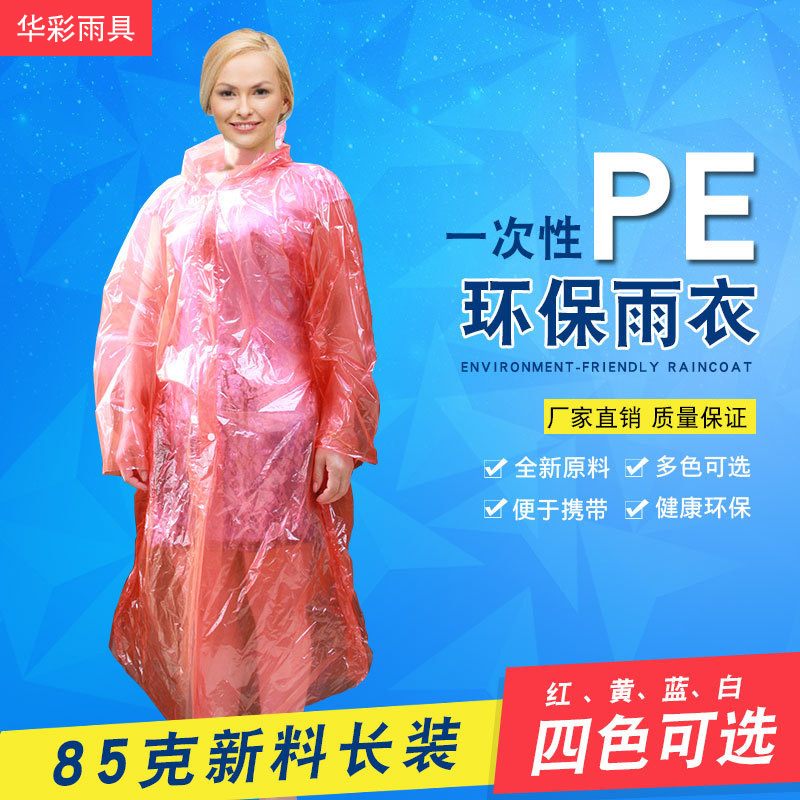 factory direct supply pe disposable raincoat 85g adult special new material long raincoat wholesale
