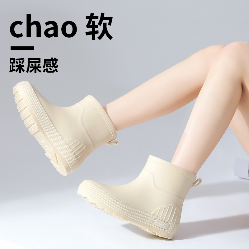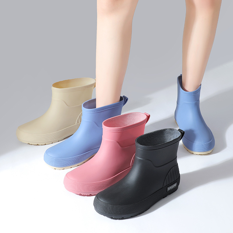 2024跨境简约时尚短筒女雨靴防滑雨鞋雨天外穿防水靴女水鞋胶鞋