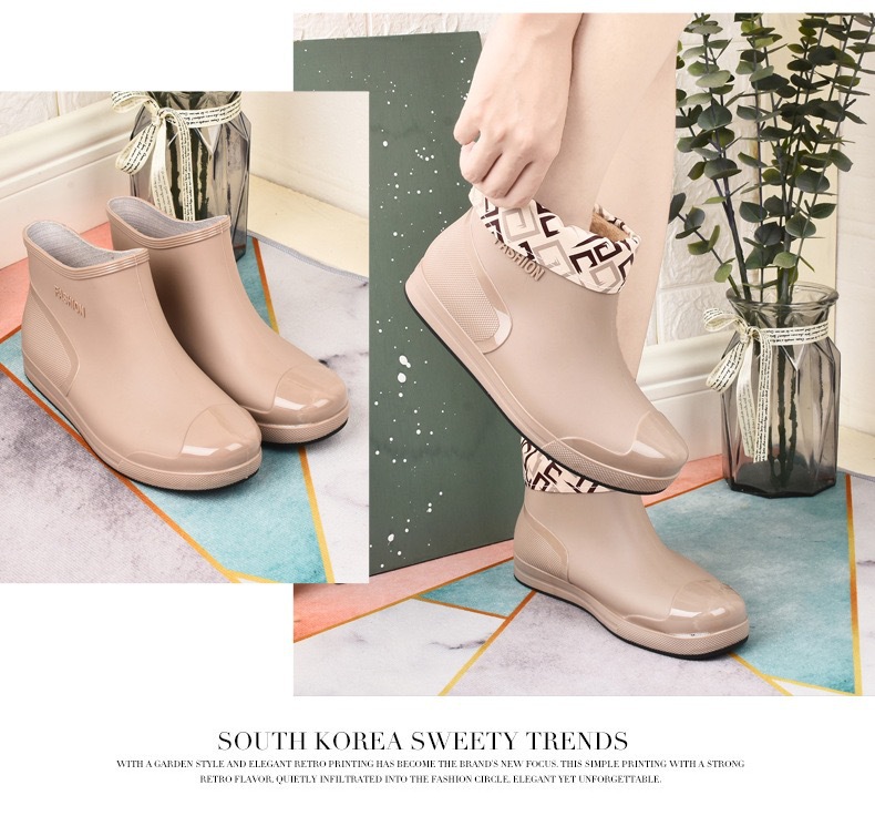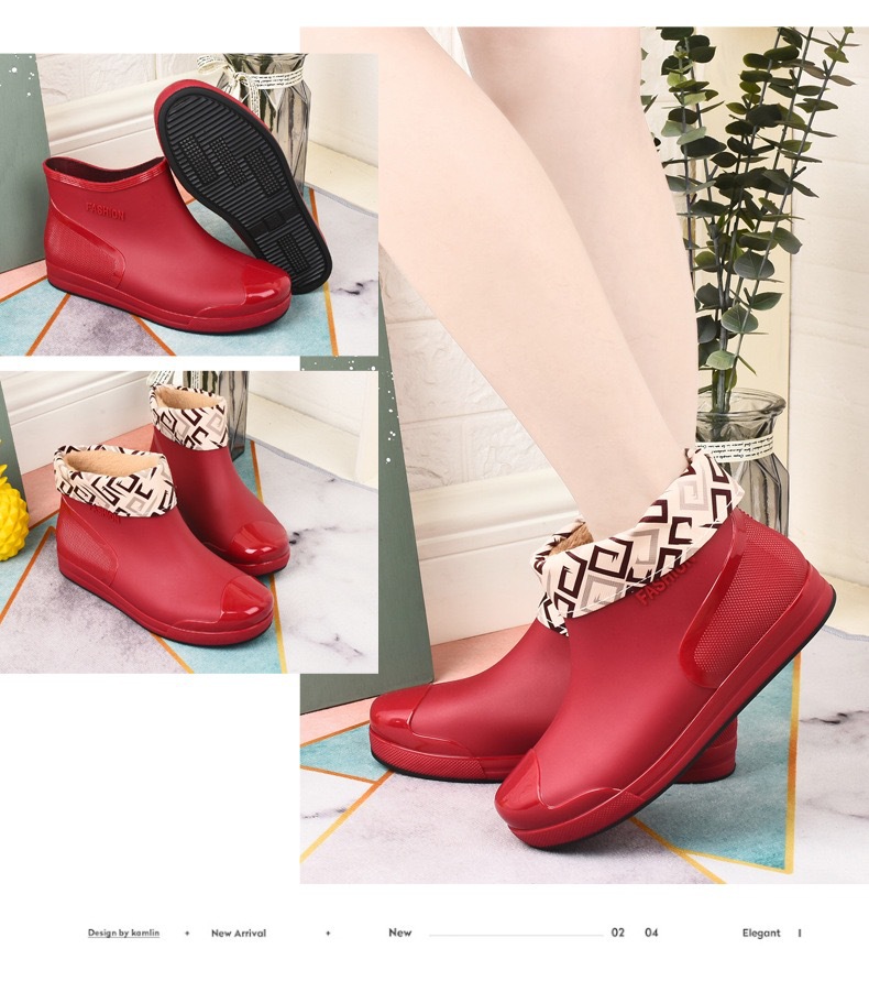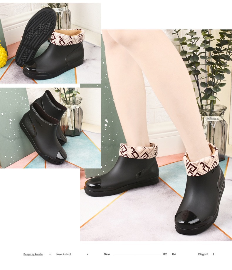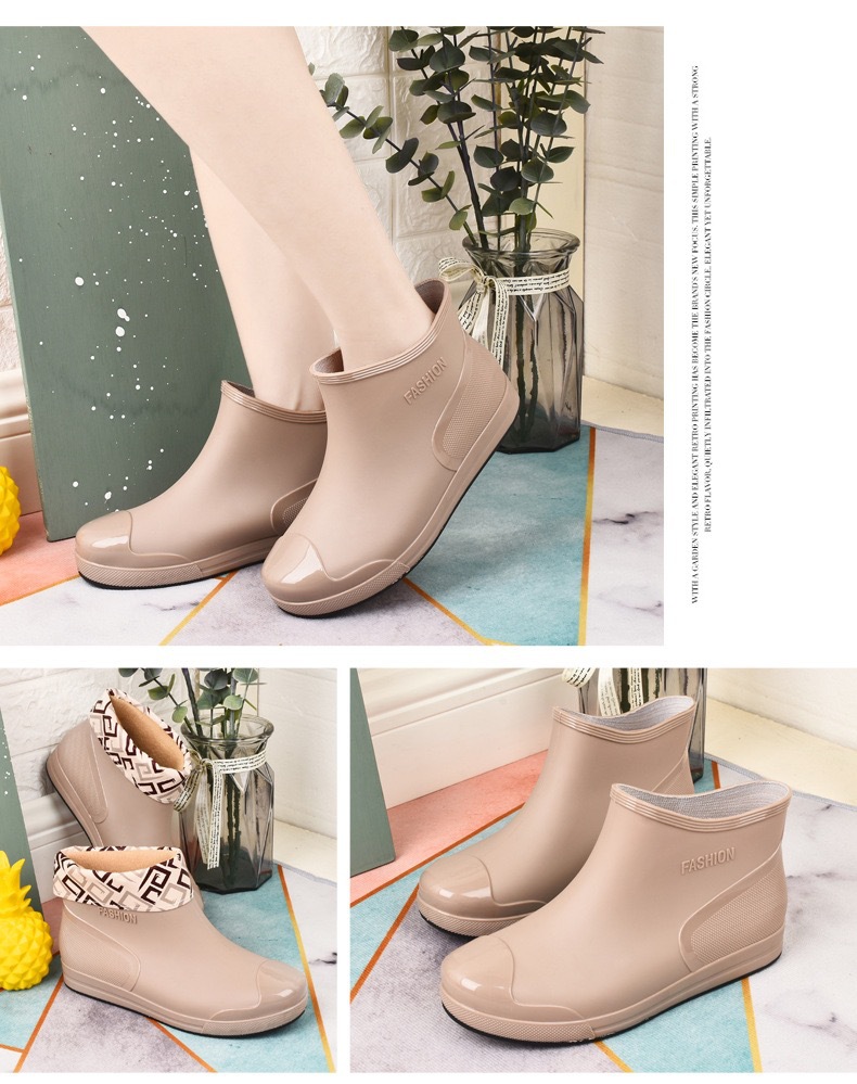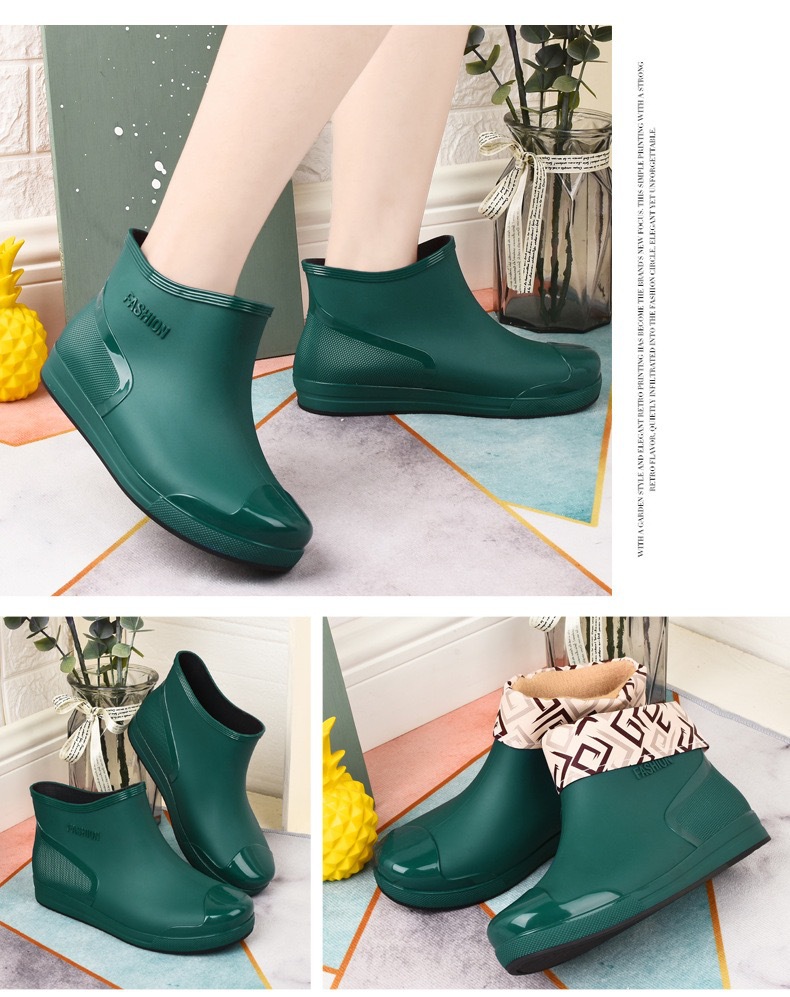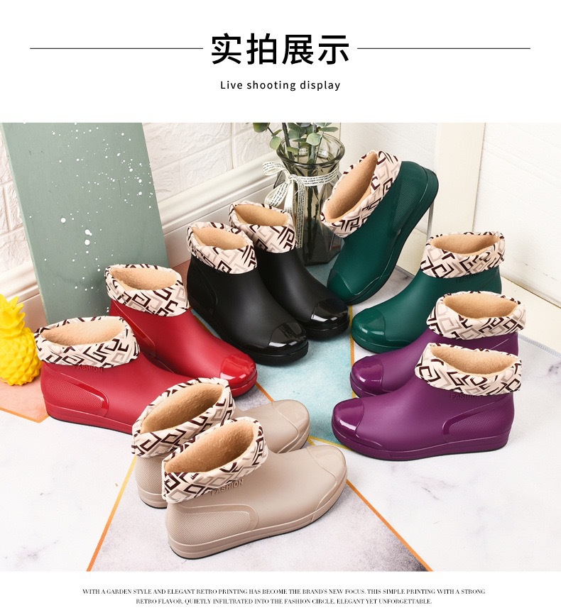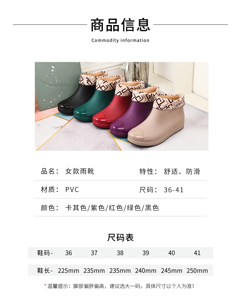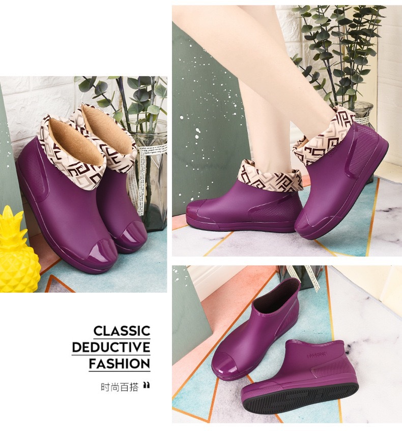 新款防水雨鞋女学生雨鞋低帮短筒时尚塑胶鞋防滑保暖加绒棉套水鞋