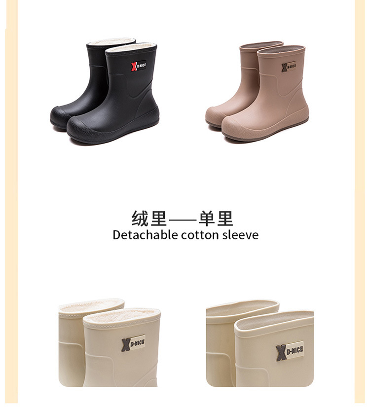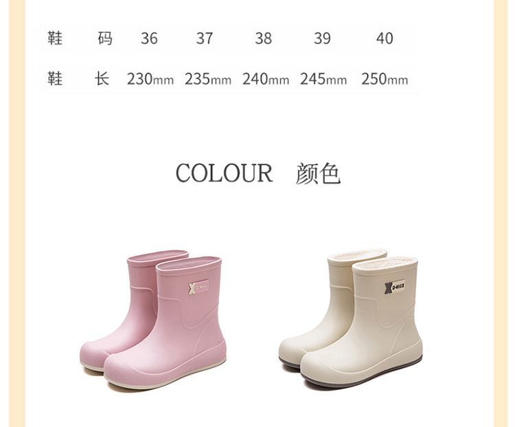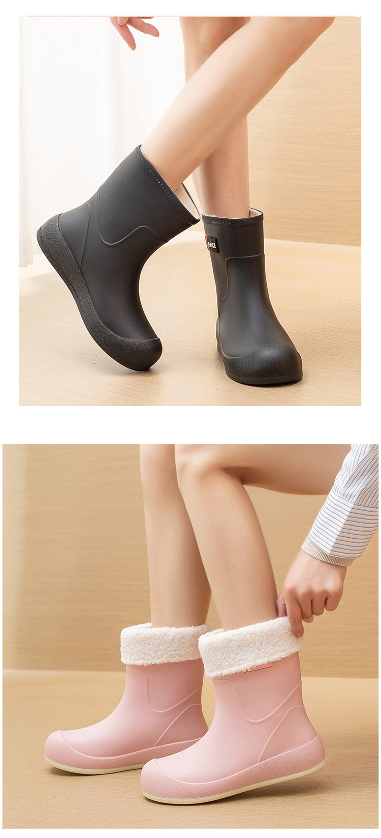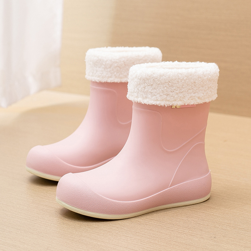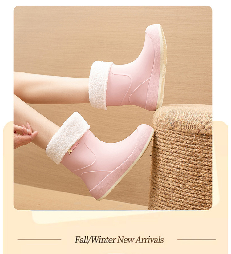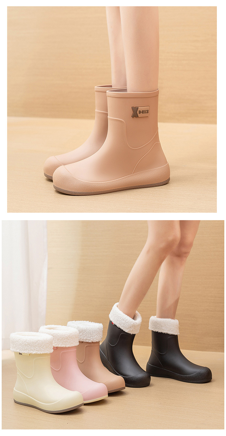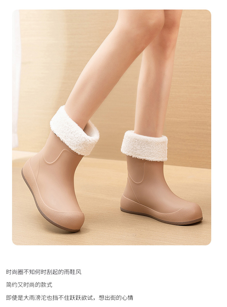 高颜值防水防滑雨鞋加厚加绒保暖中筒雨靴甜美系女户外水鞋防水靴