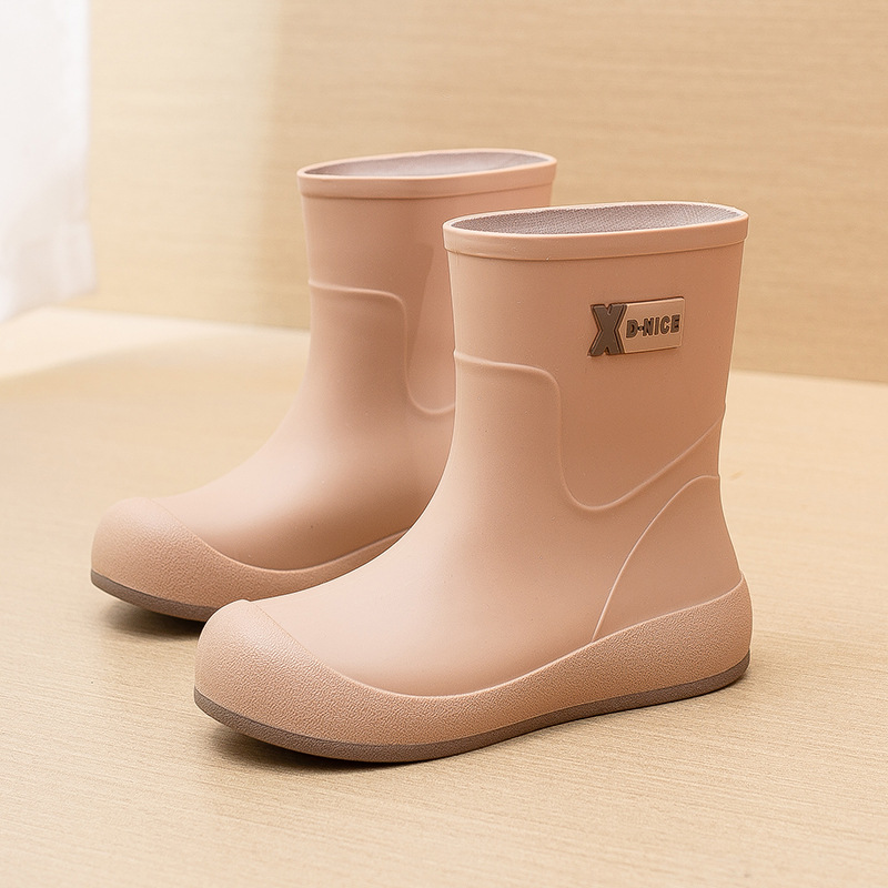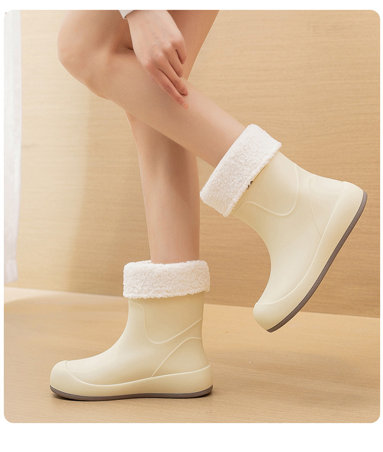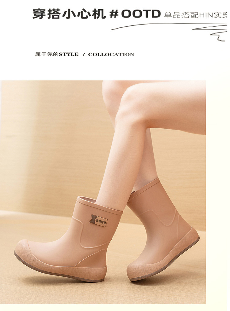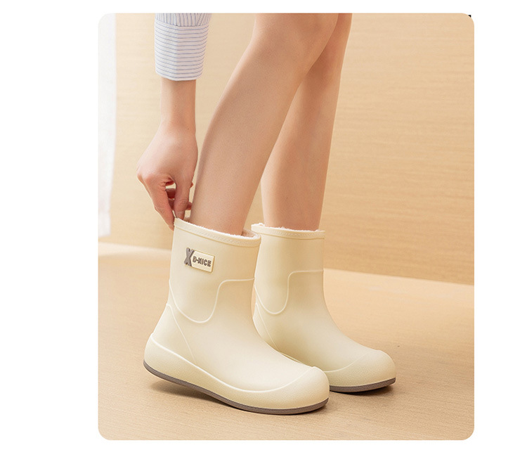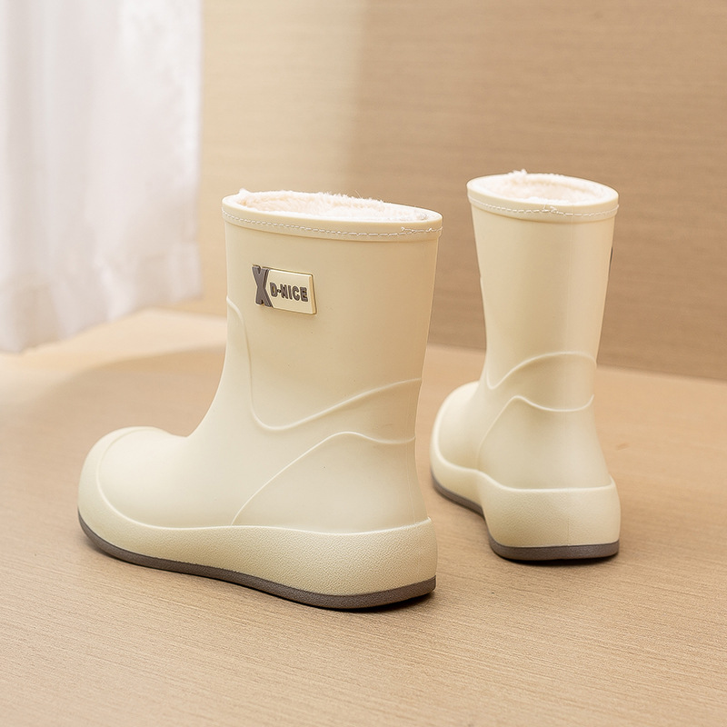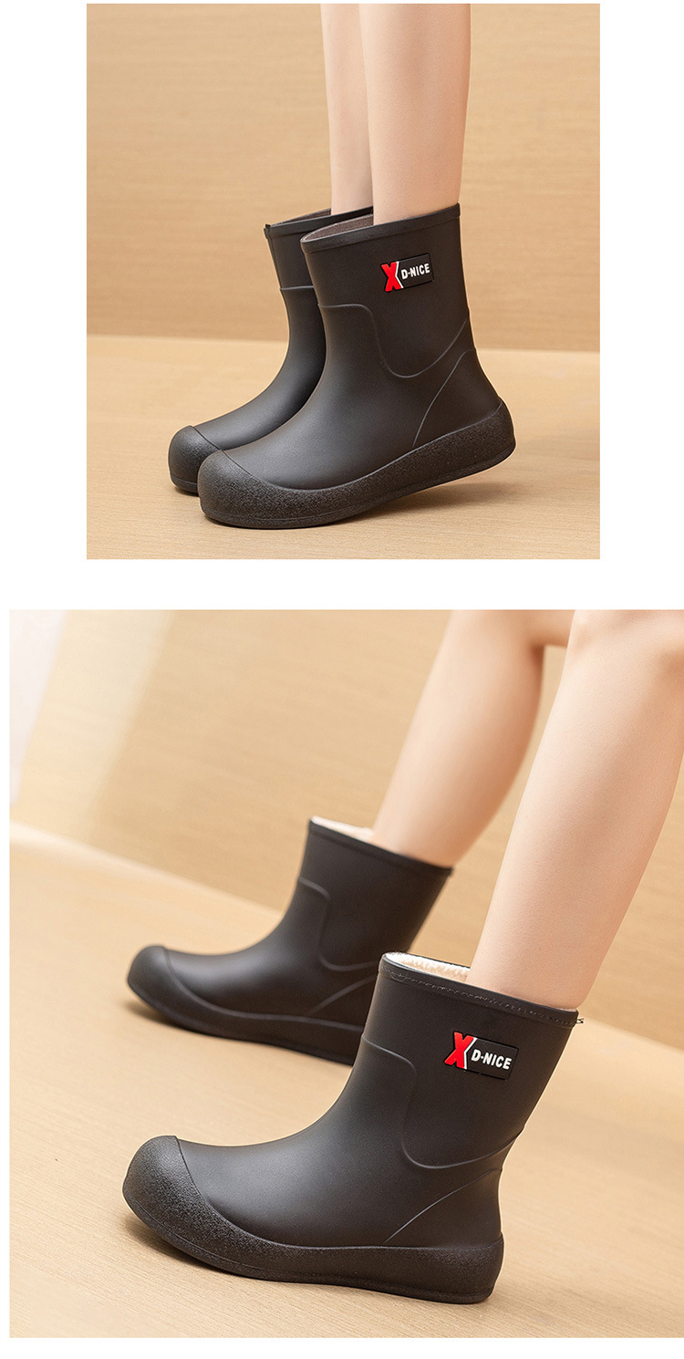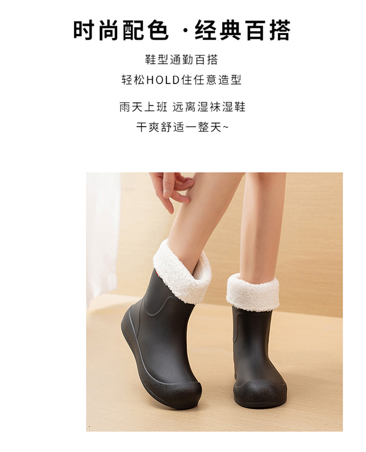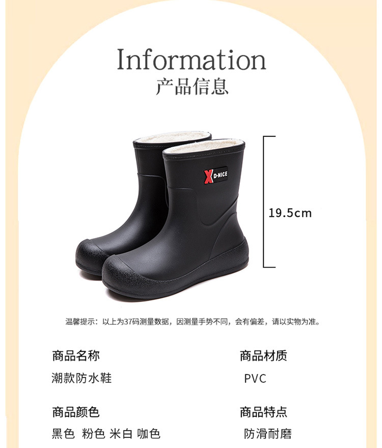 高颜值防水防滑雨鞋加厚加绒保暖中筒雨靴甜美系女户外水鞋防水靴