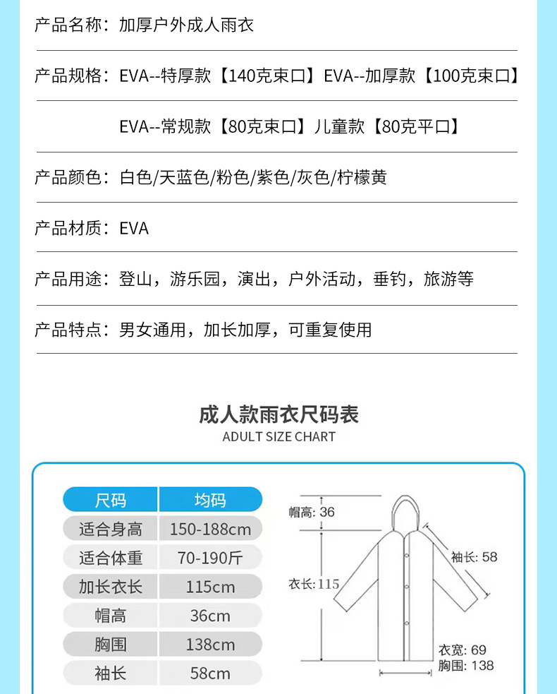 外贸长款加厚EVA雨衣全身儿童成人男女户外非一次性徒步雨服便携