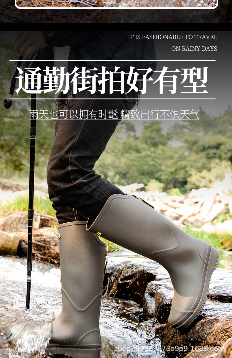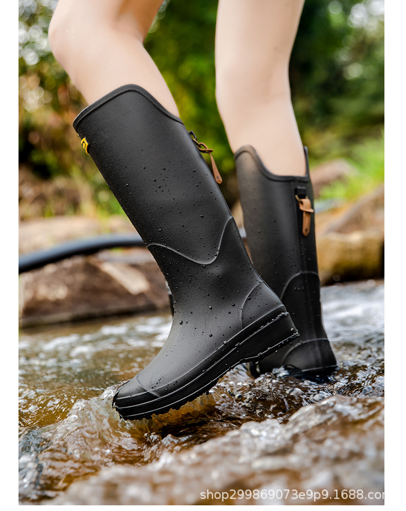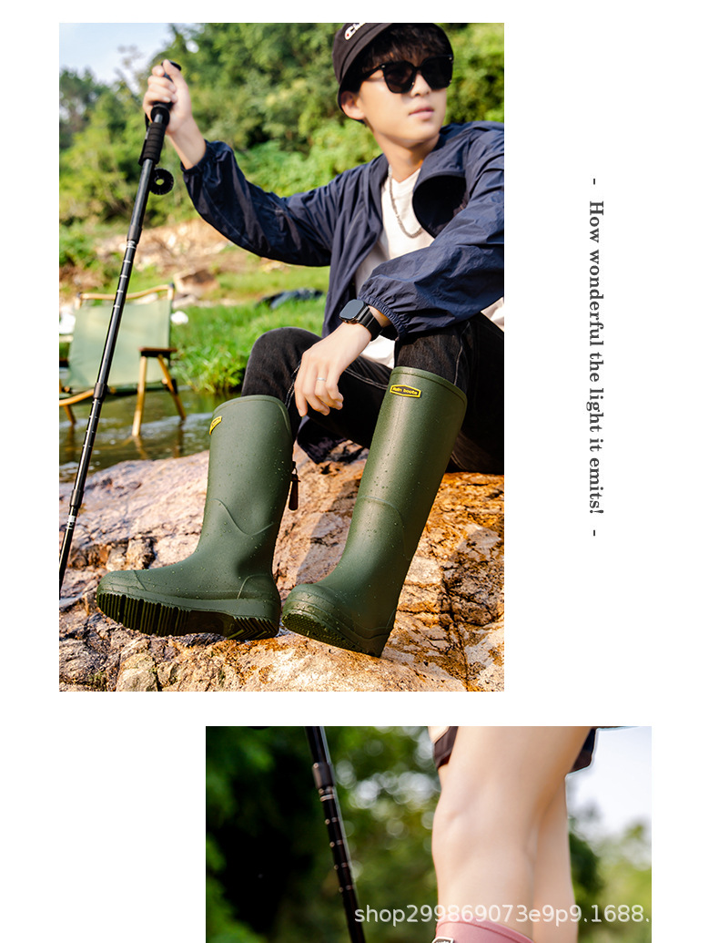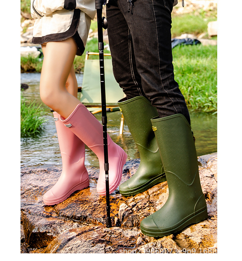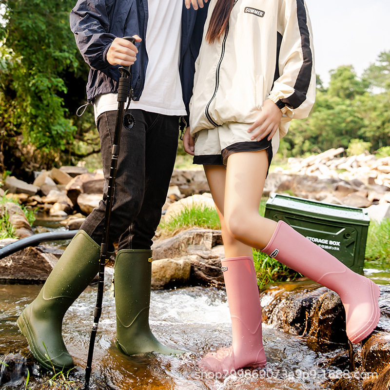 跨境时尚厚底高筒情侣雨鞋露营雨靴户外涉水工作溯溪钓鱼防滑水鞋