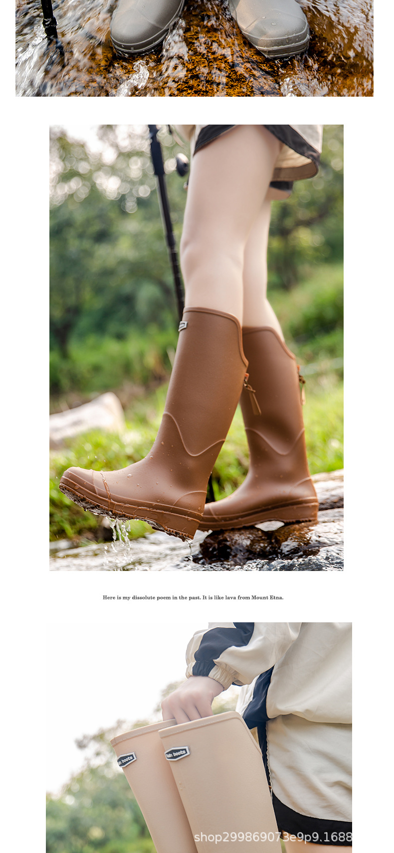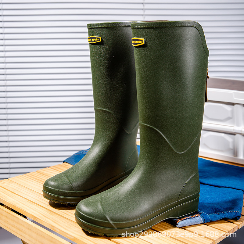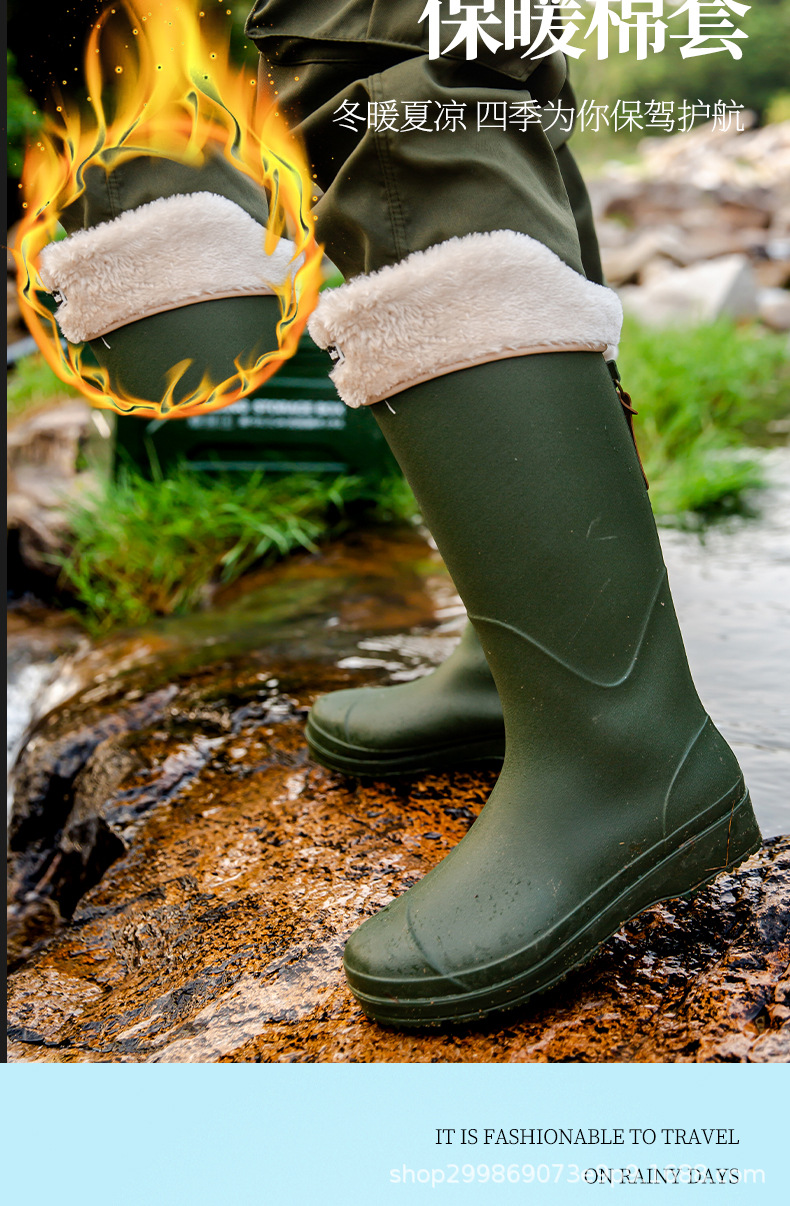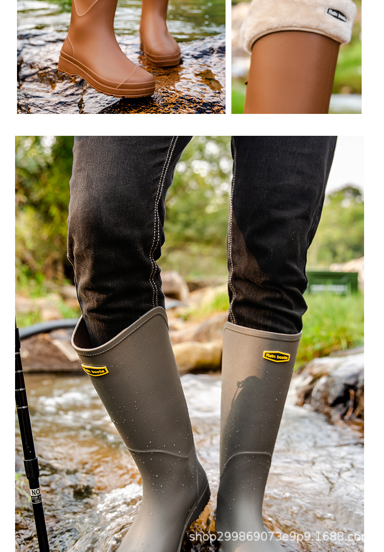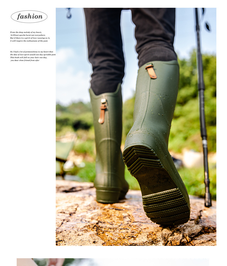 跨境时尚厚底高筒情侣雨鞋露营雨靴户外涉水工作溯溪钓鱼防滑水鞋