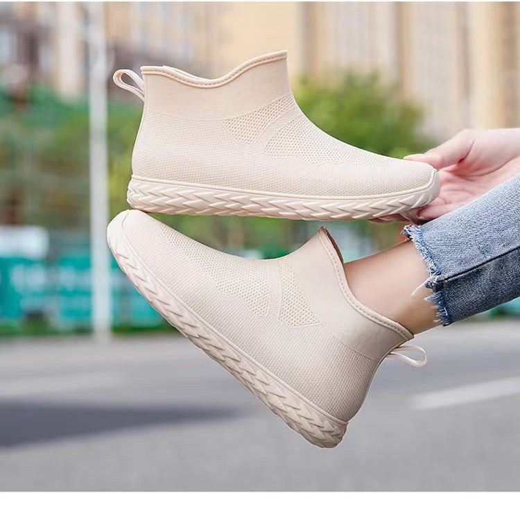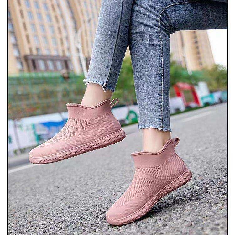 合利鲨新款纯色女士四季水鞋时尚休闲平底雨靴低筒圆头外穿雨鞋
