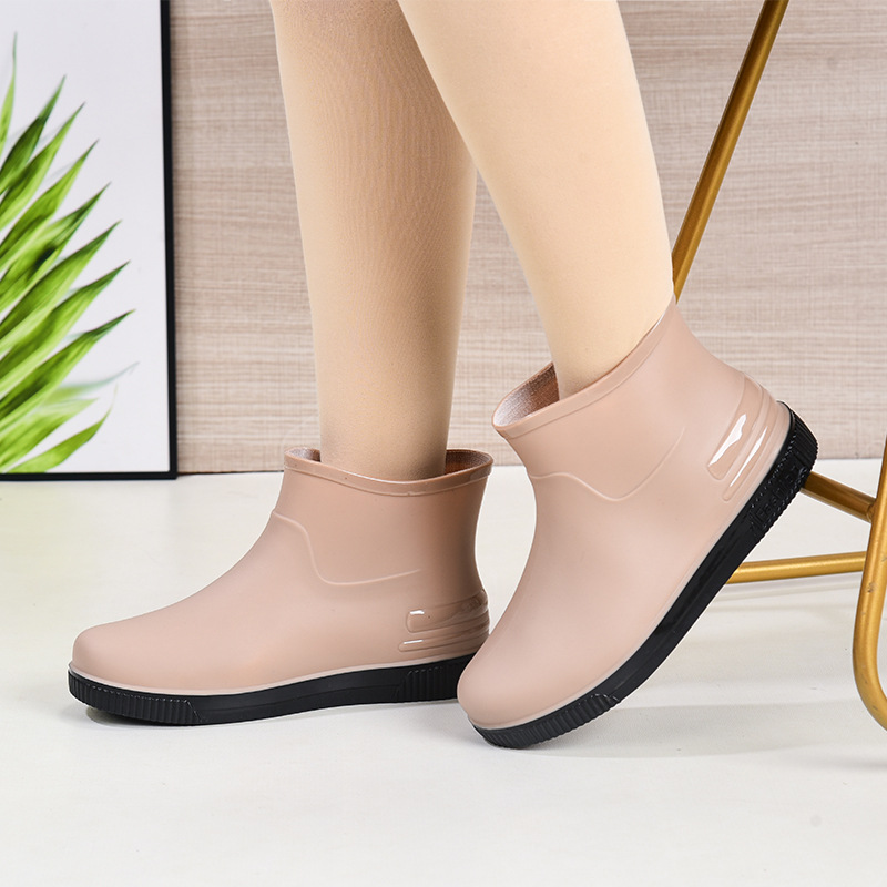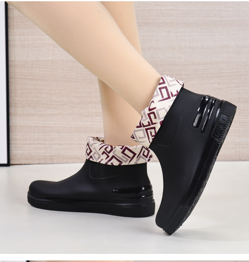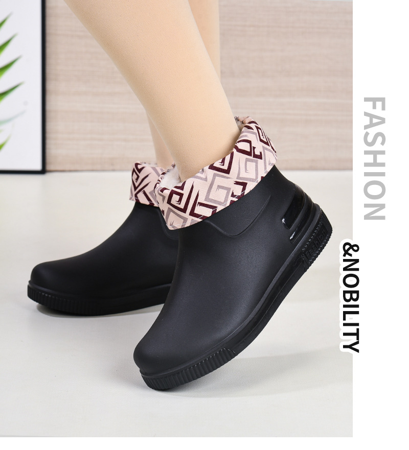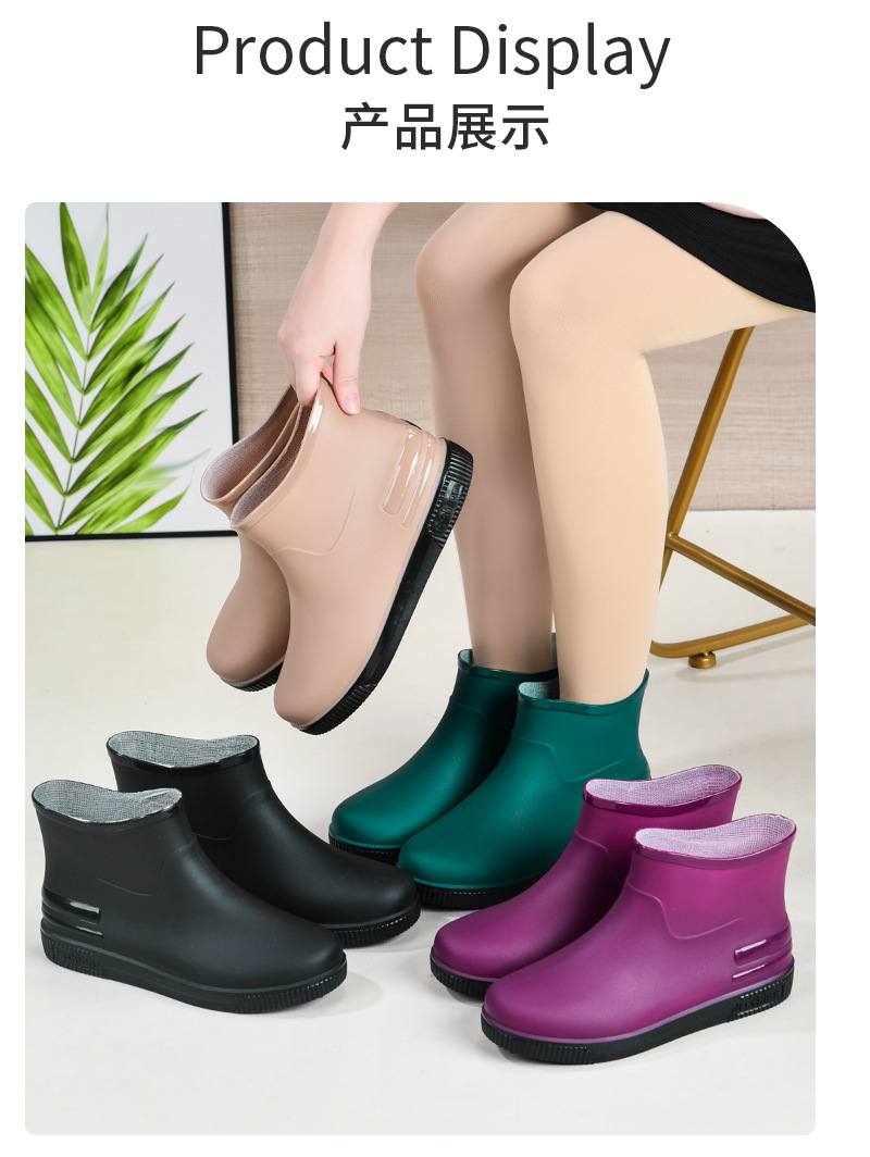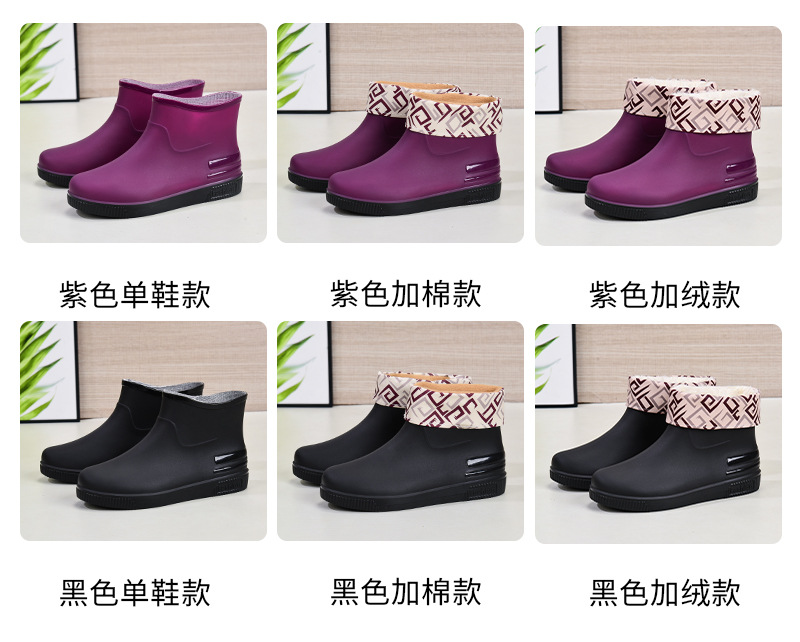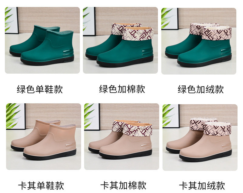 新款时尚跨境女士低筒雨靴保暖防滑短筒水鞋牛筋底耐磨成人水鞋