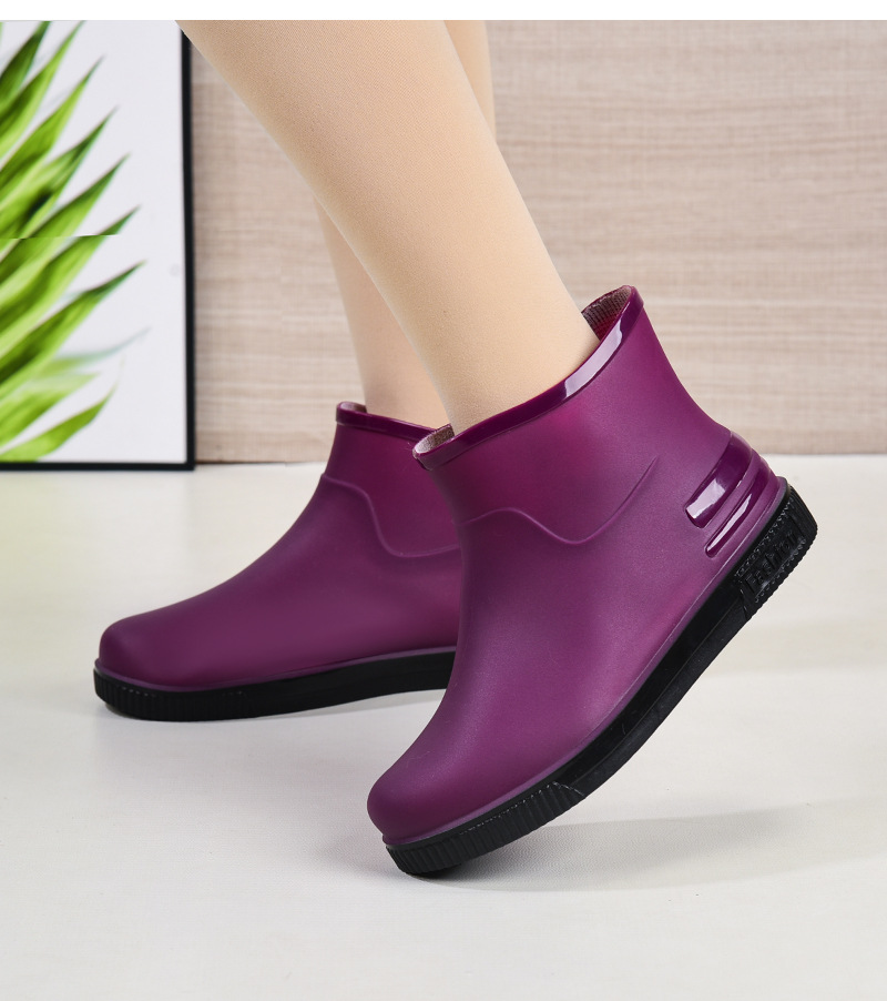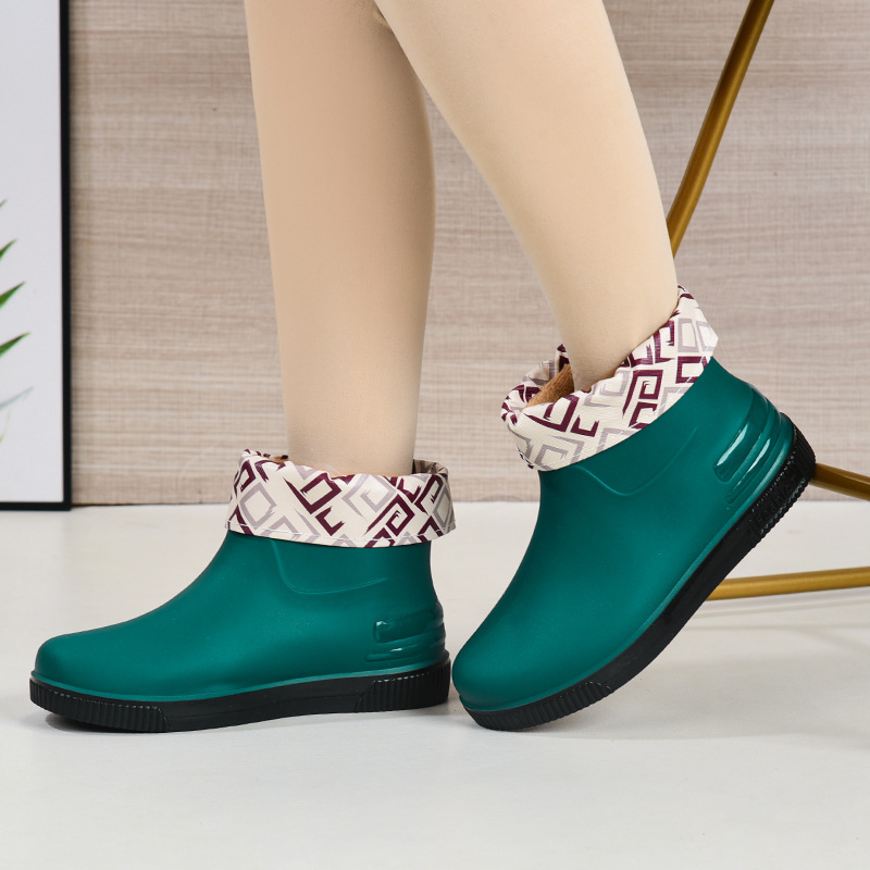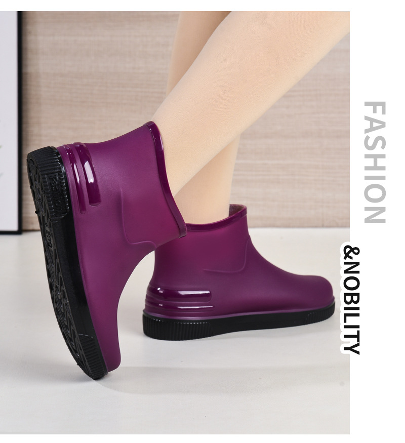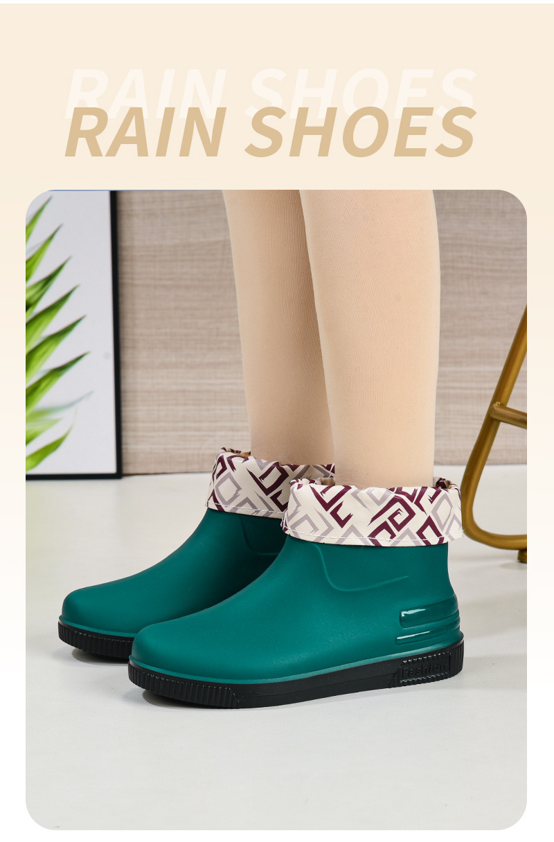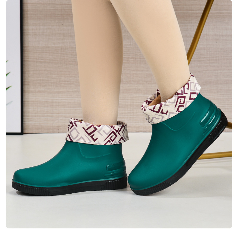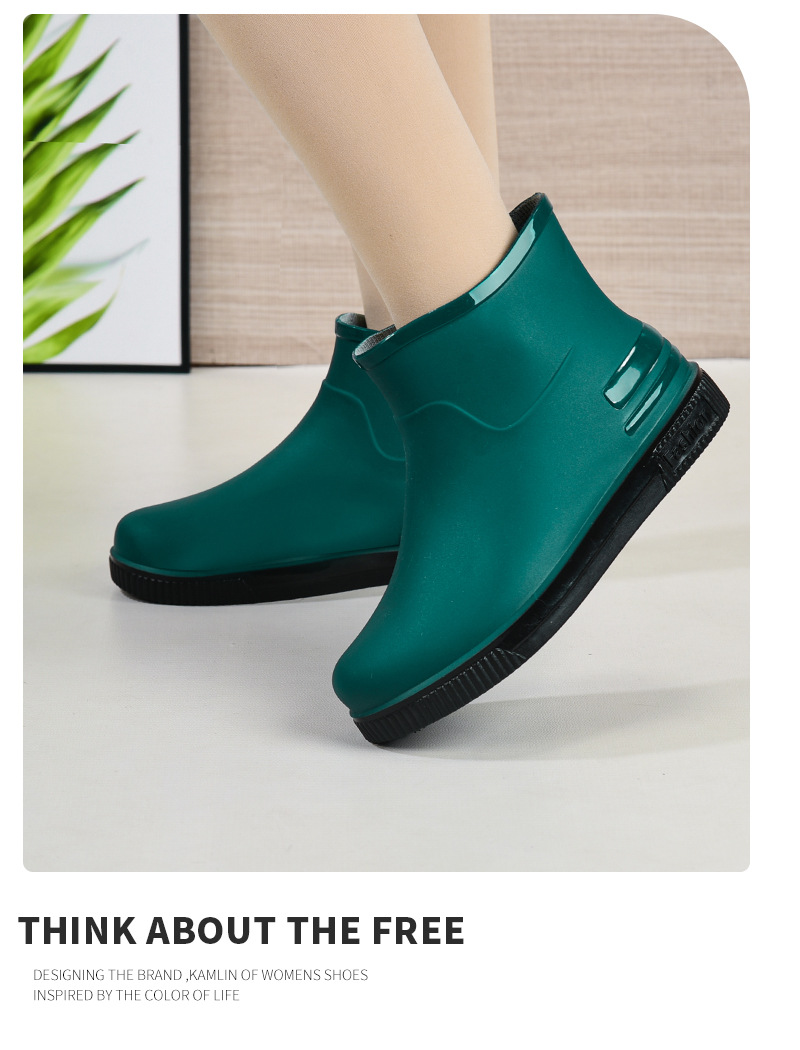 新款时尚跨境女士低筒雨靴保暖防滑短筒水鞋牛筋底耐磨成人水鞋