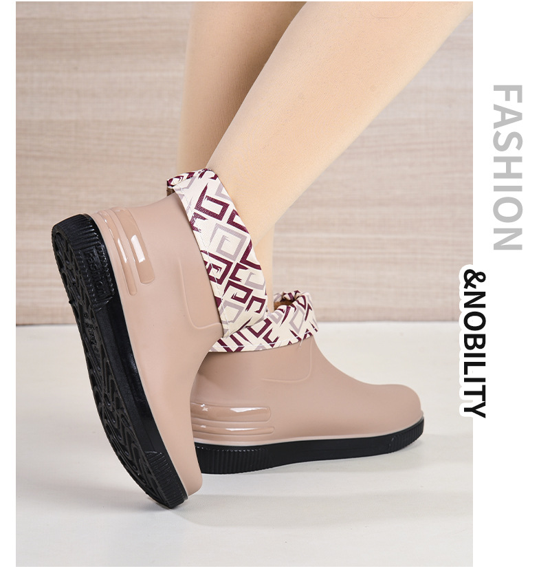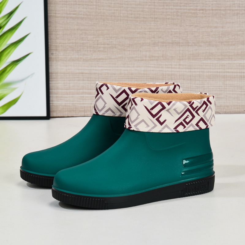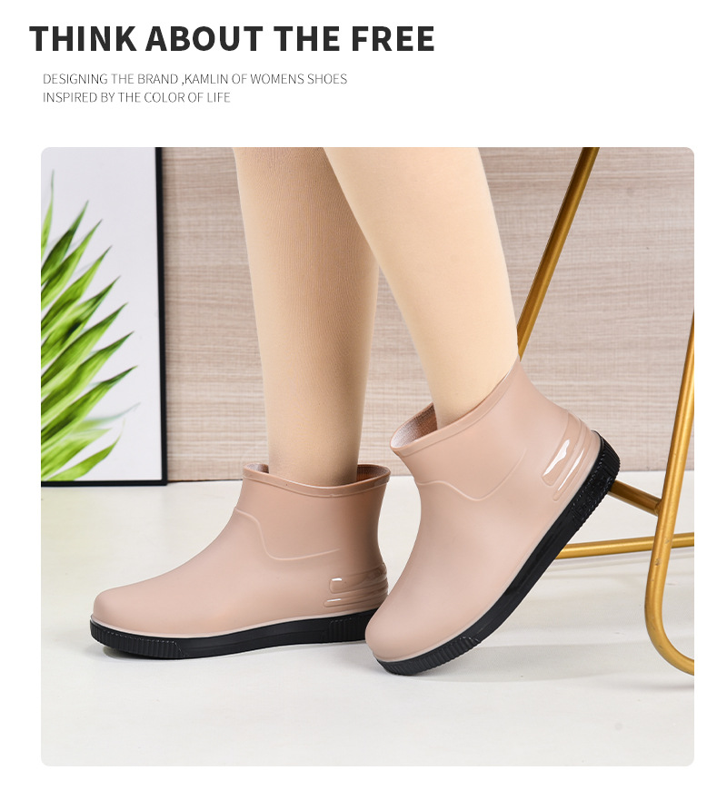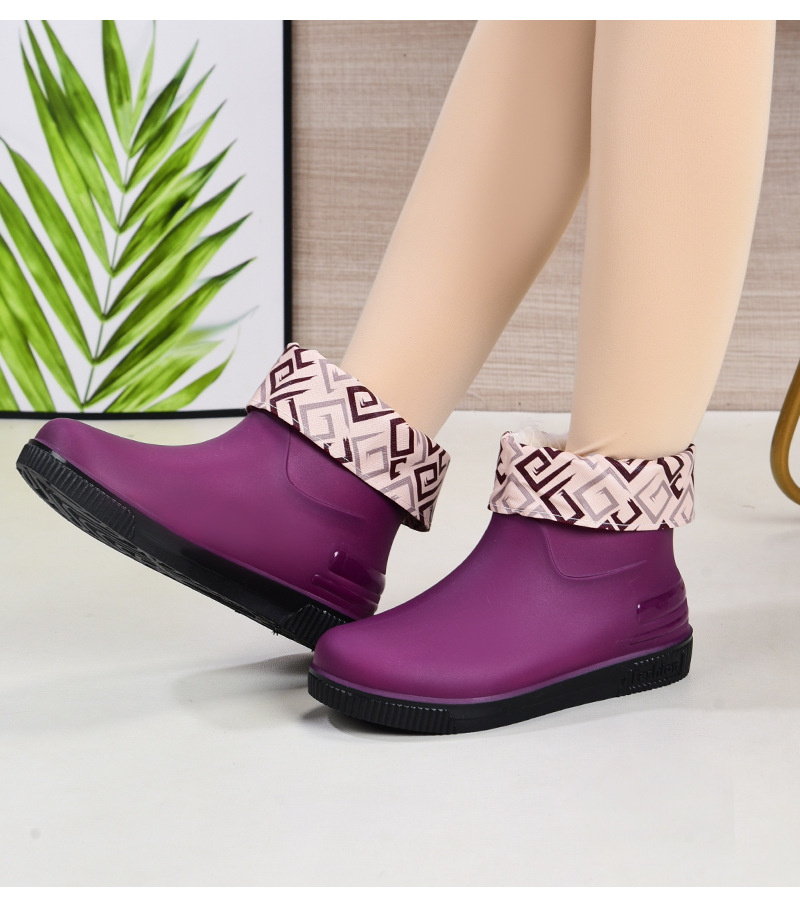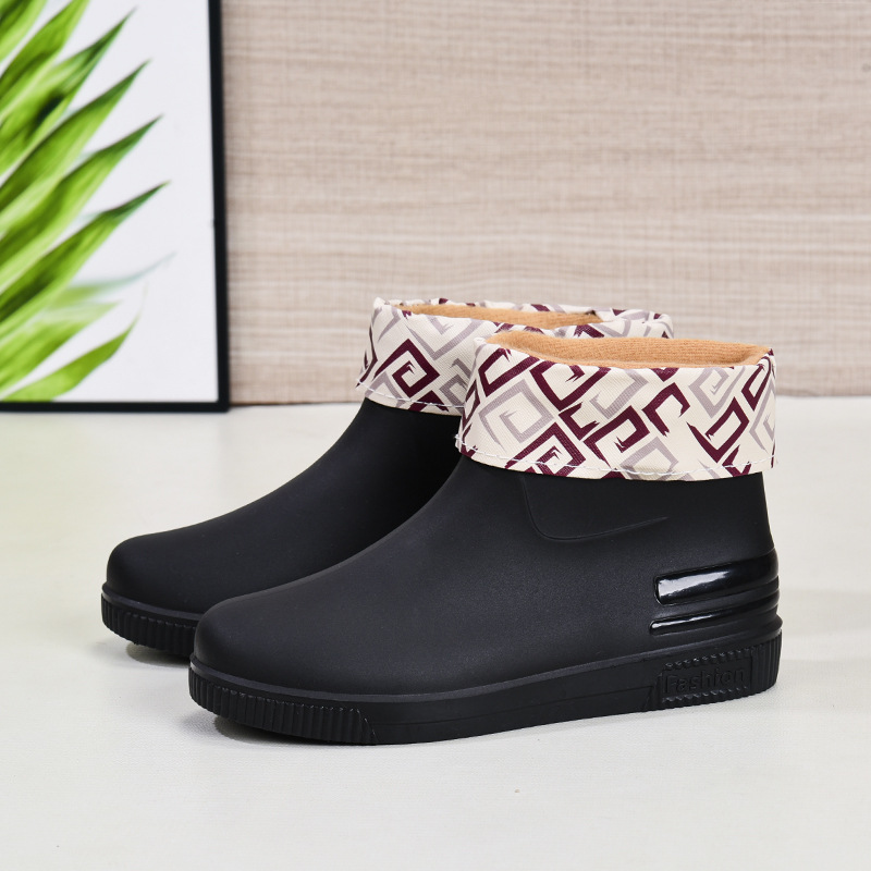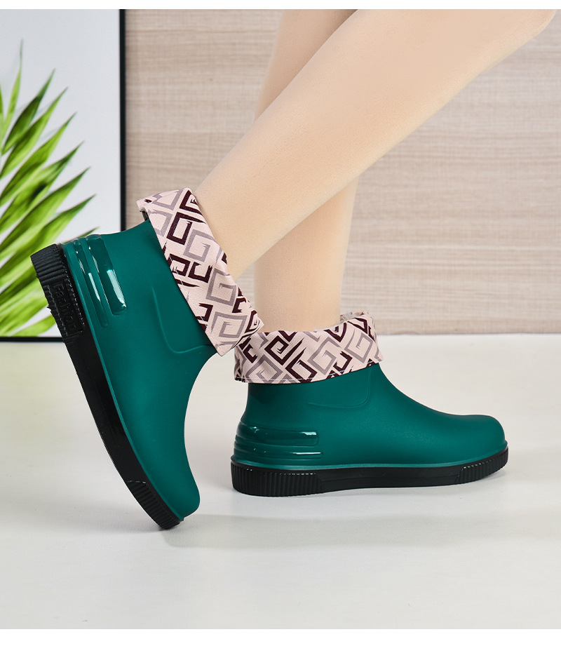 新款时尚跨境女士低筒雨靴保暖防滑短筒水鞋牛筋底耐磨成人水鞋