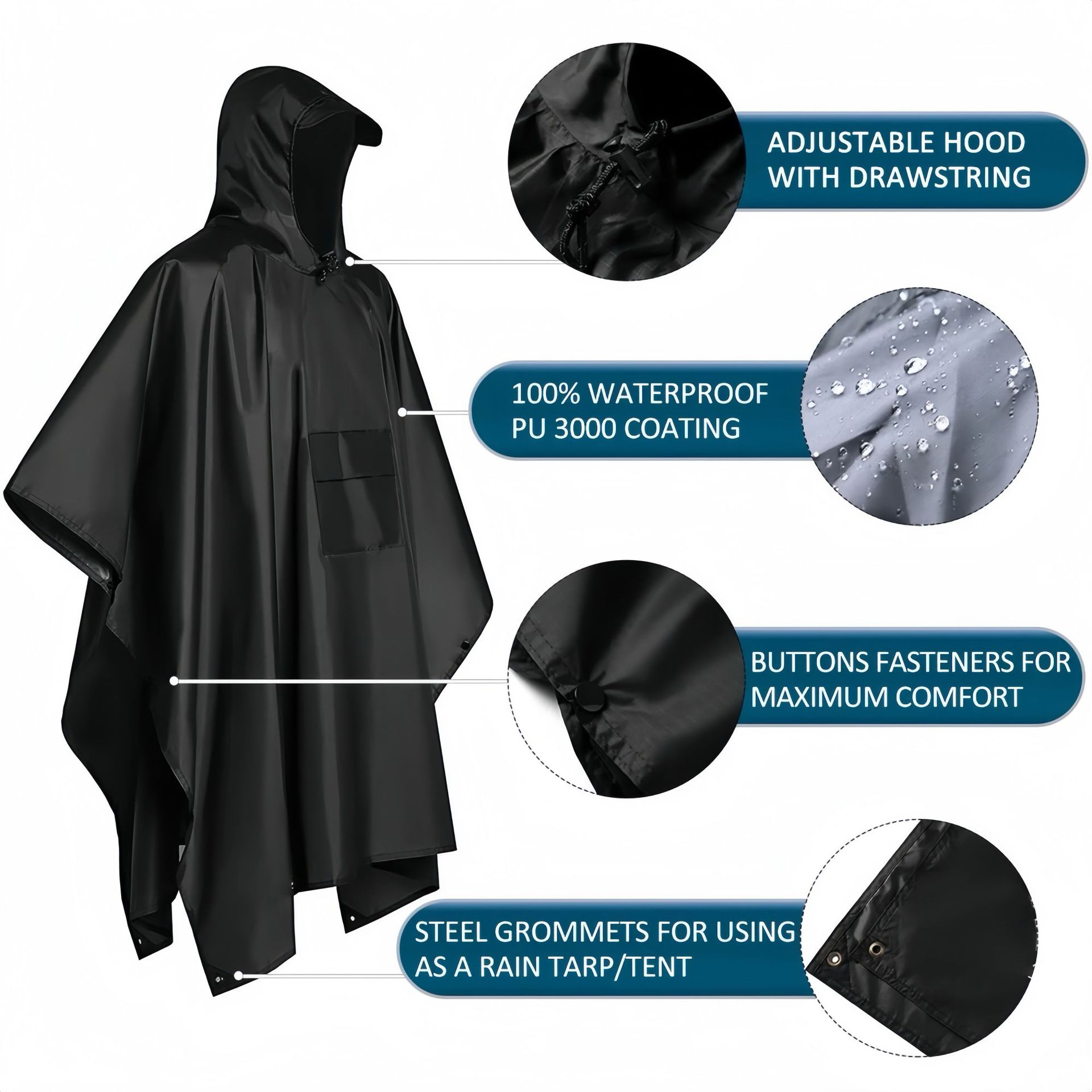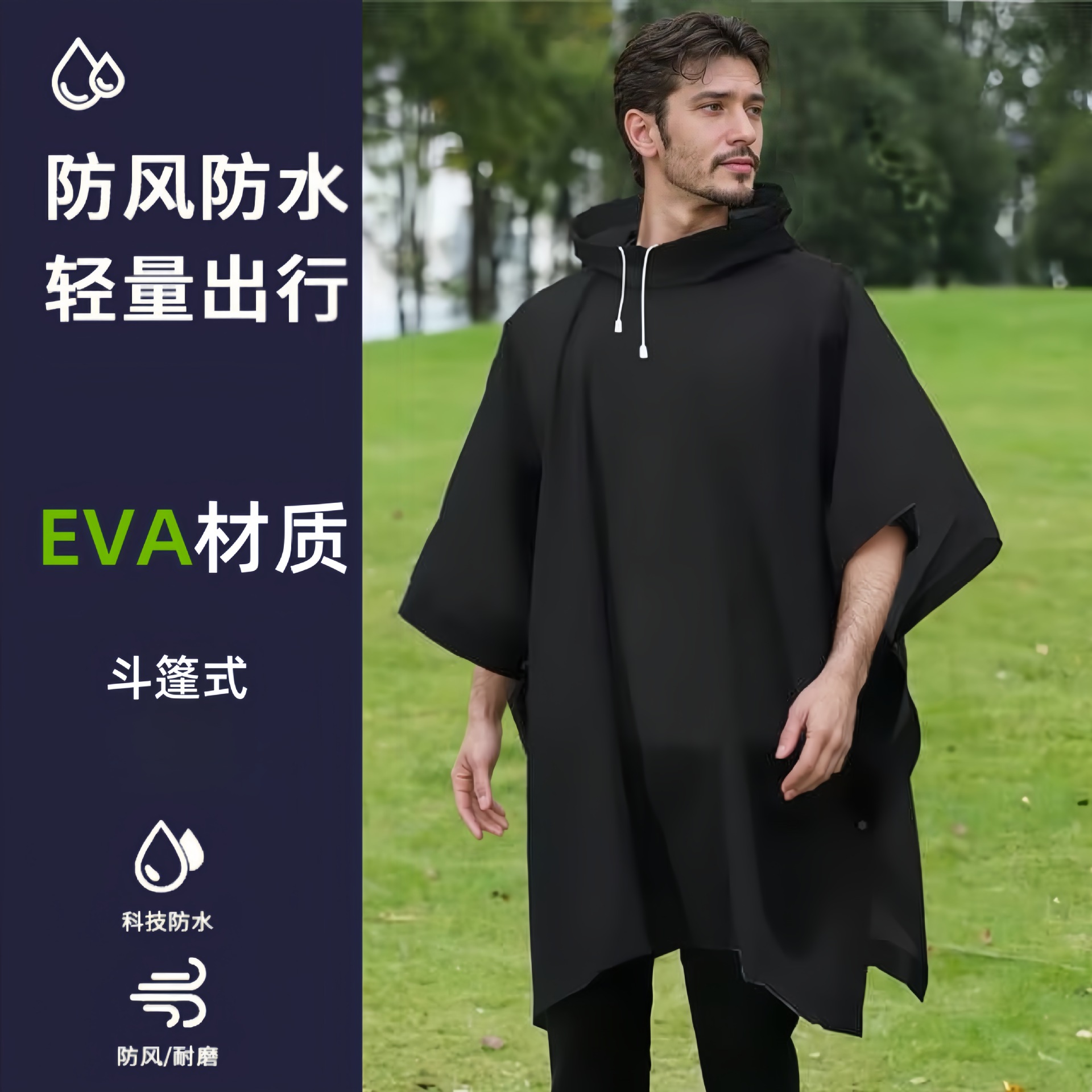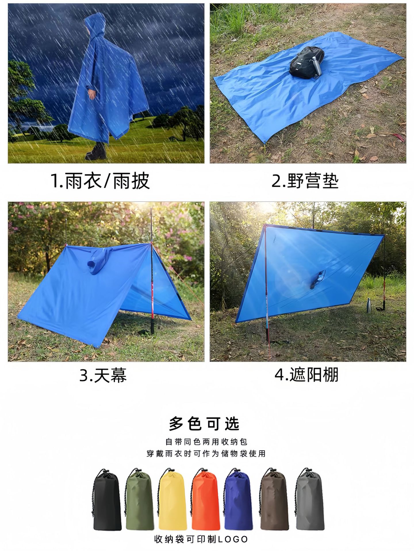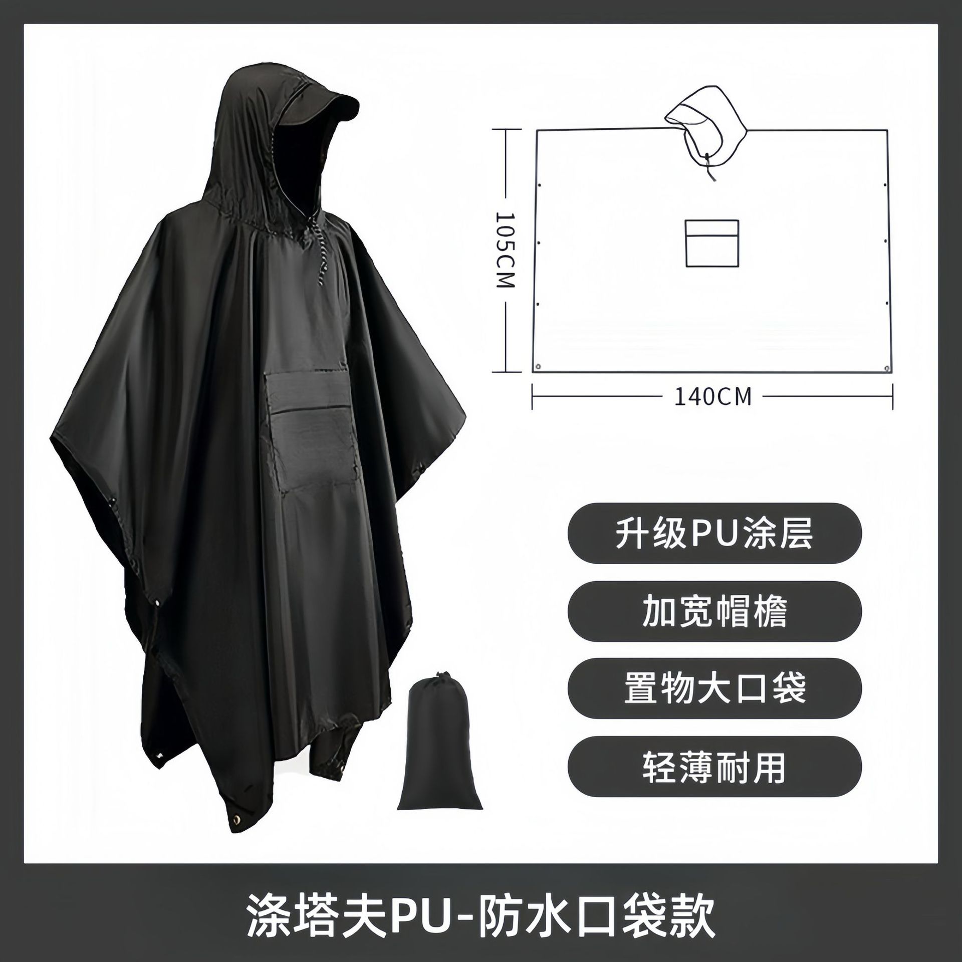 外贸天幕多功能三合一斗篷雨衣背包登山户外迷彩战术连帽斗篷雨披
