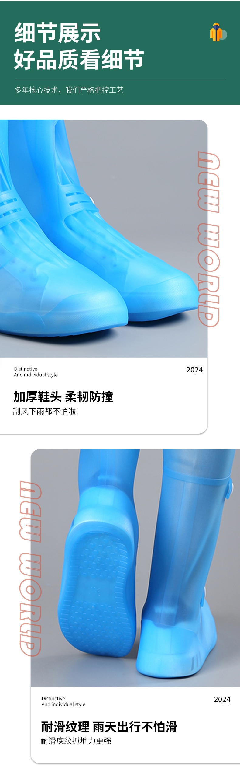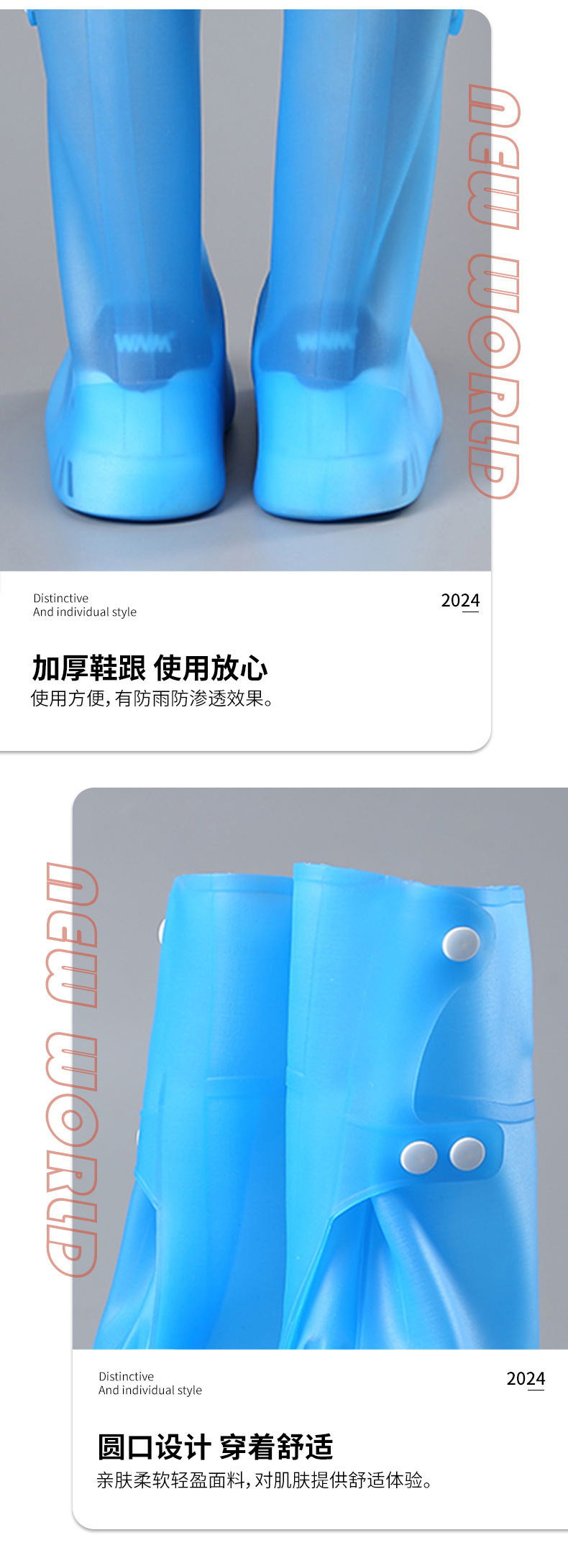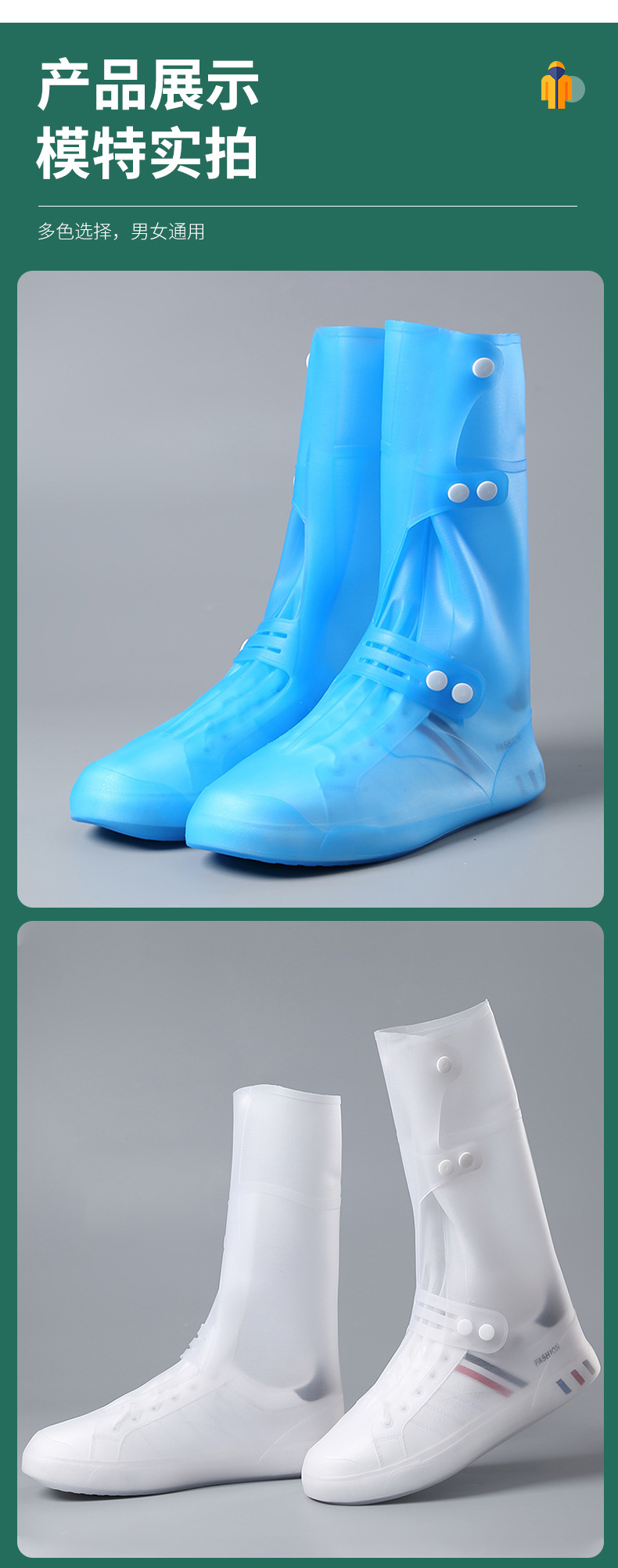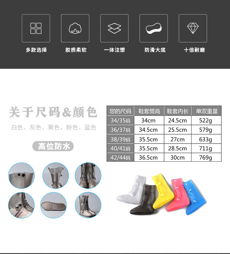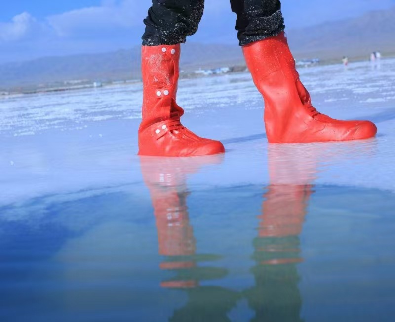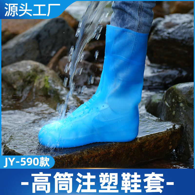盐湖高筒注塑防雨鞋套防水鞋套中筒硅胶雨靴水鞋雨天防滑加厚耐磨
