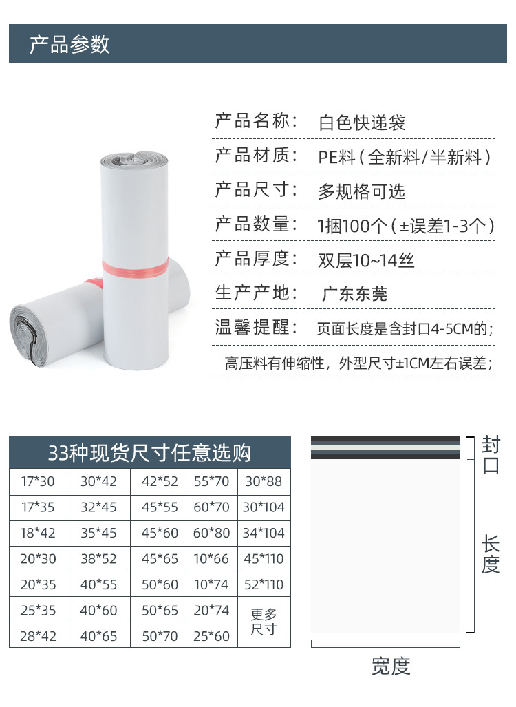 白色加厚快递袋批发淘宝电商打包连卷袋包装服装袋子塑料自粘袋子
