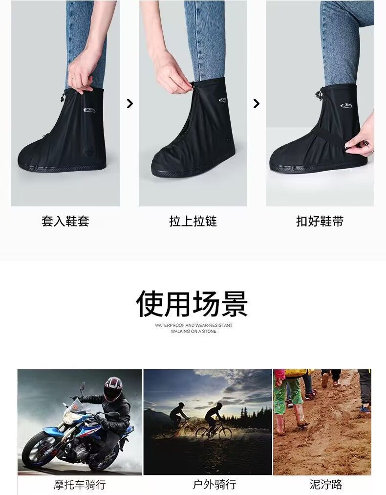 雨鞋套绷带款加厚防水鞋套防滑耐磨防污成人户外旅行便携防雨鞋套