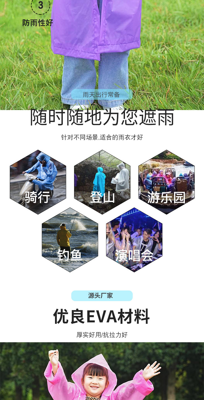 加厚非一次性eva时尚户外成人儿童旅游出行雨衣雨披厂家批发