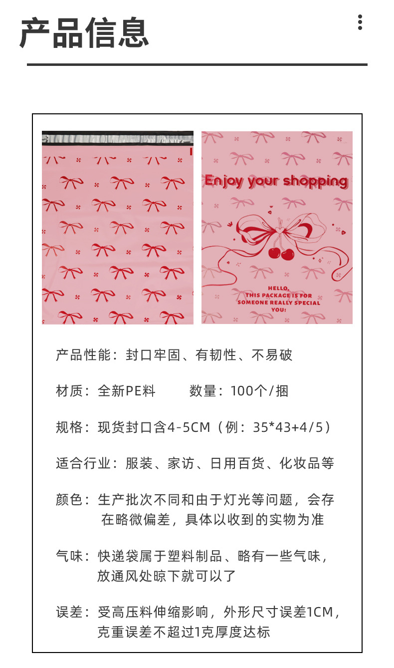 行家选粉色卡通印刷快递袋加厚服装打包袋子物流防水包装袋自封袋