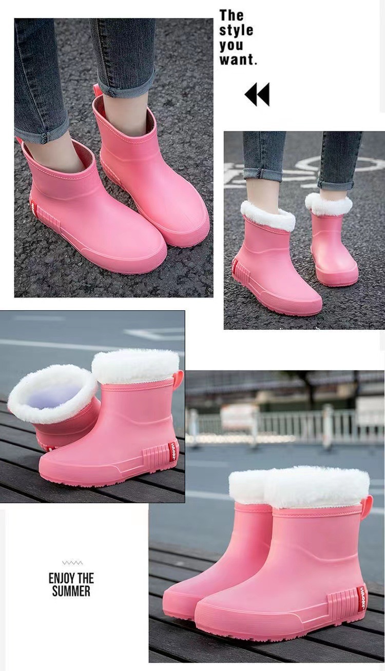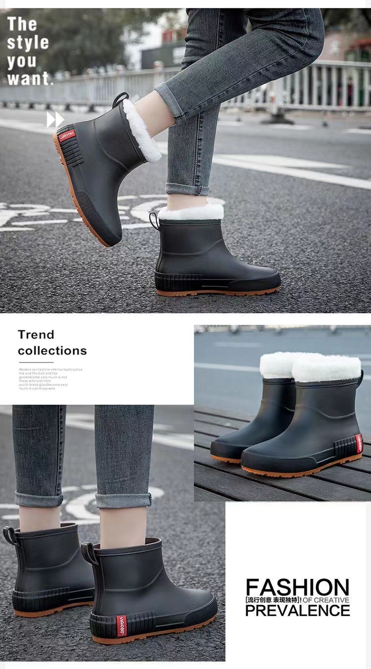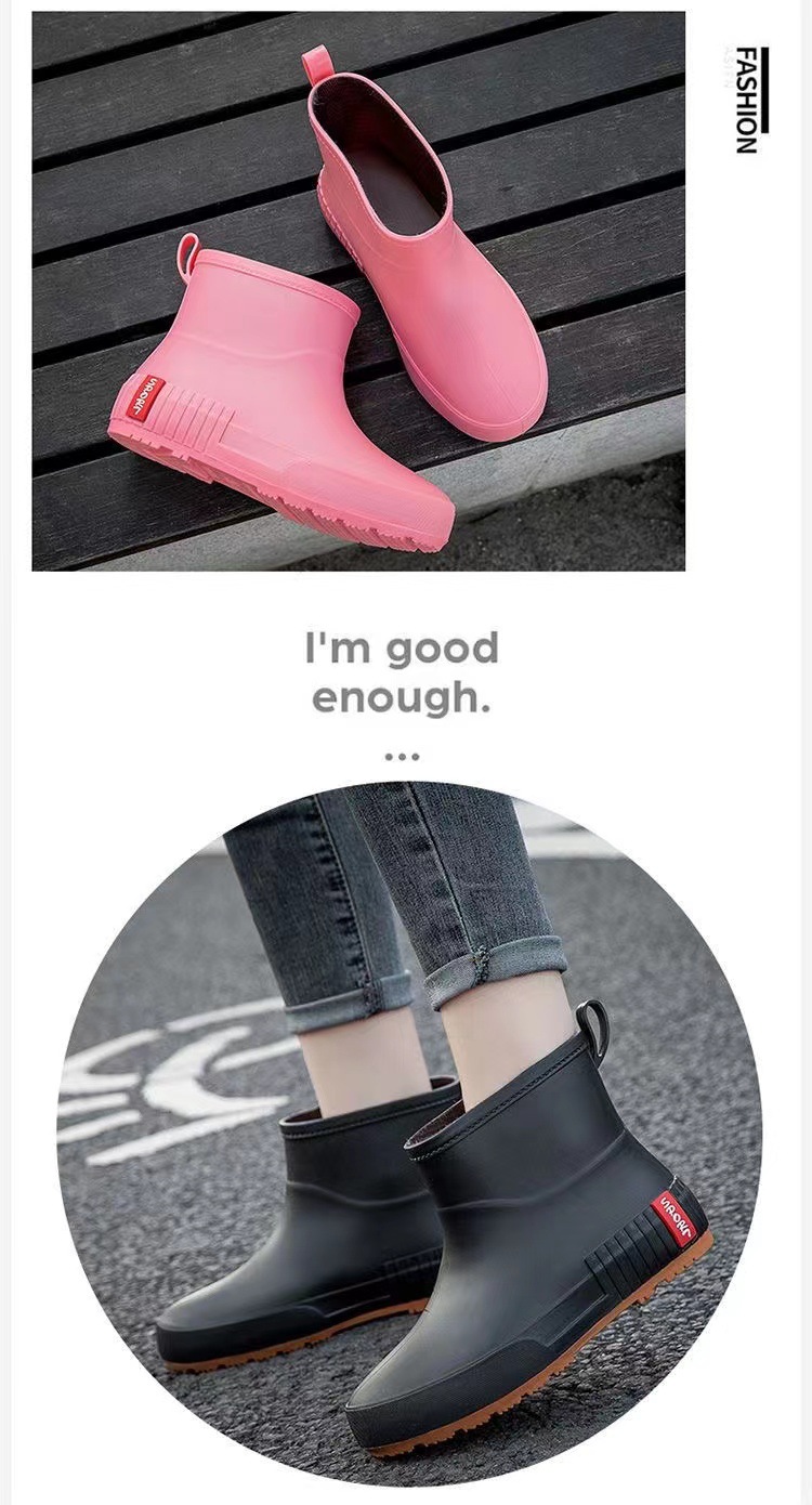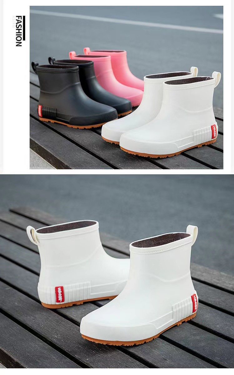 新款短筒雨鞋女款外穿平底防滑水鞋学生胶鞋厨房工作短款水靴跨境