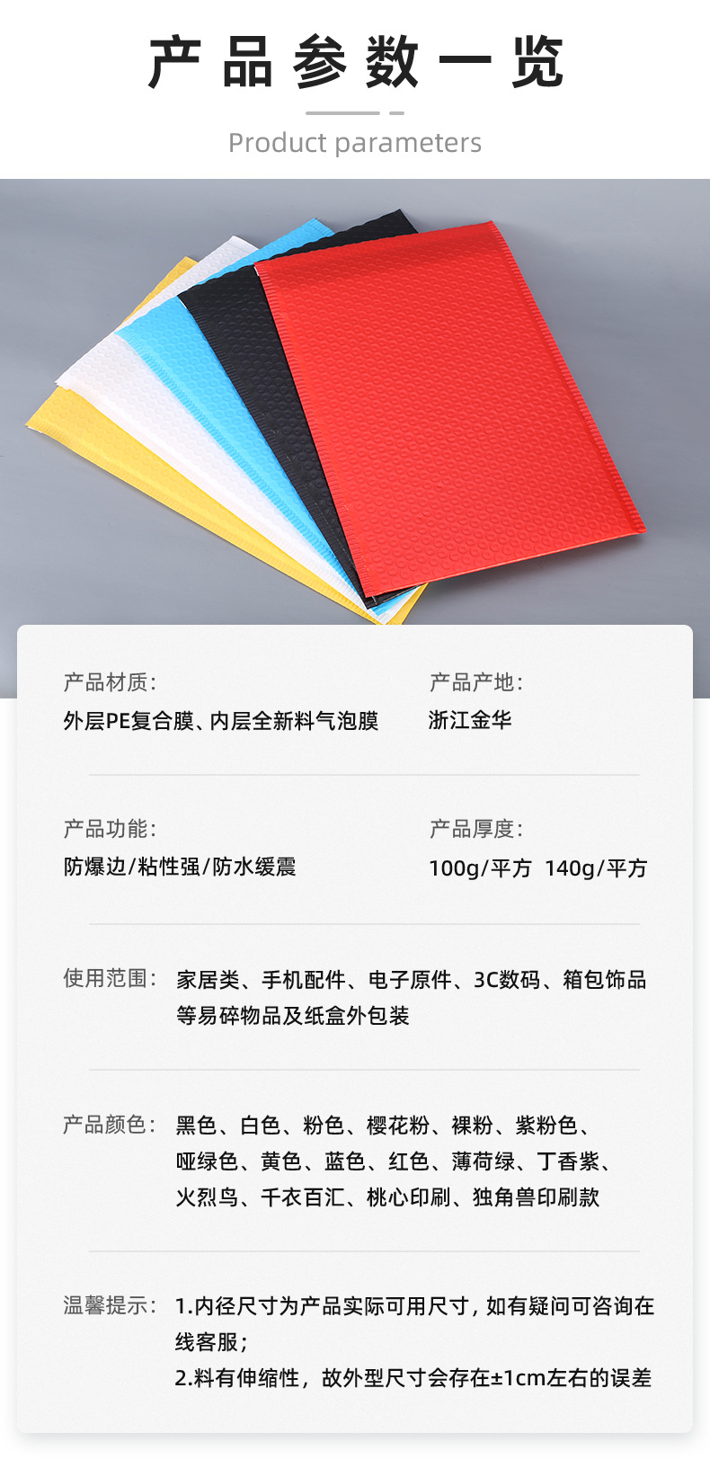 彩色哑光共挤膜气泡袋信封袋加厚防震泡沫袋服装包装袋气泡快递