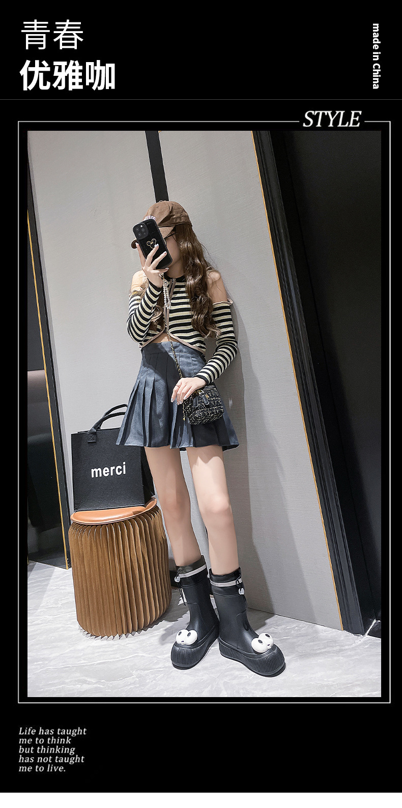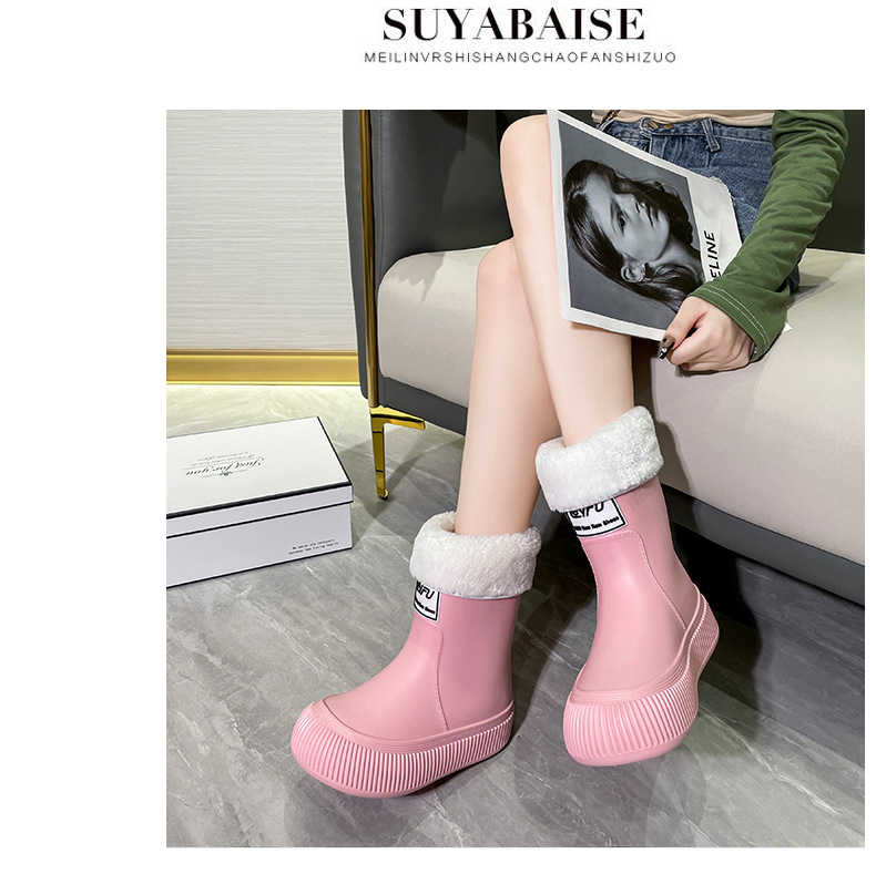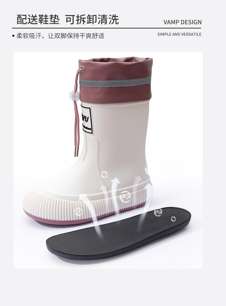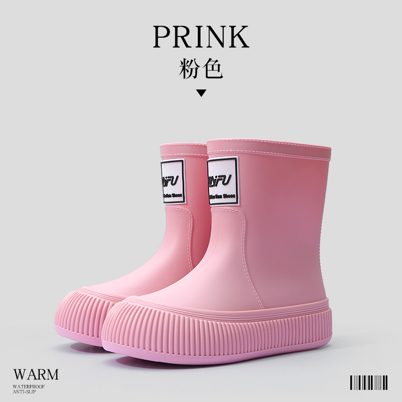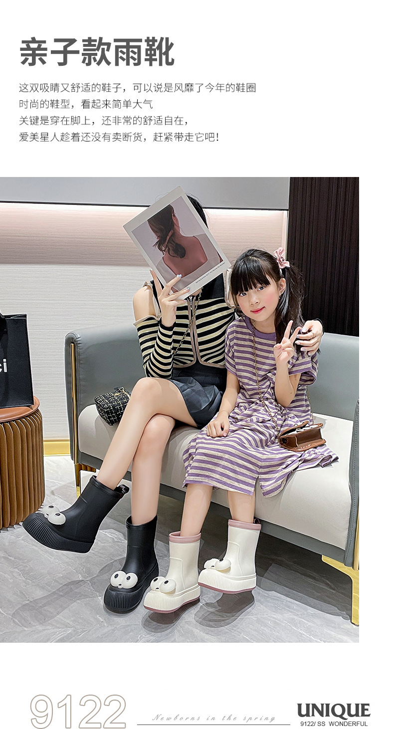 雨鞋女时尚款外穿女士水鞋防滑防水加绒亲子雨靴中筒水靴儿童雨鞋