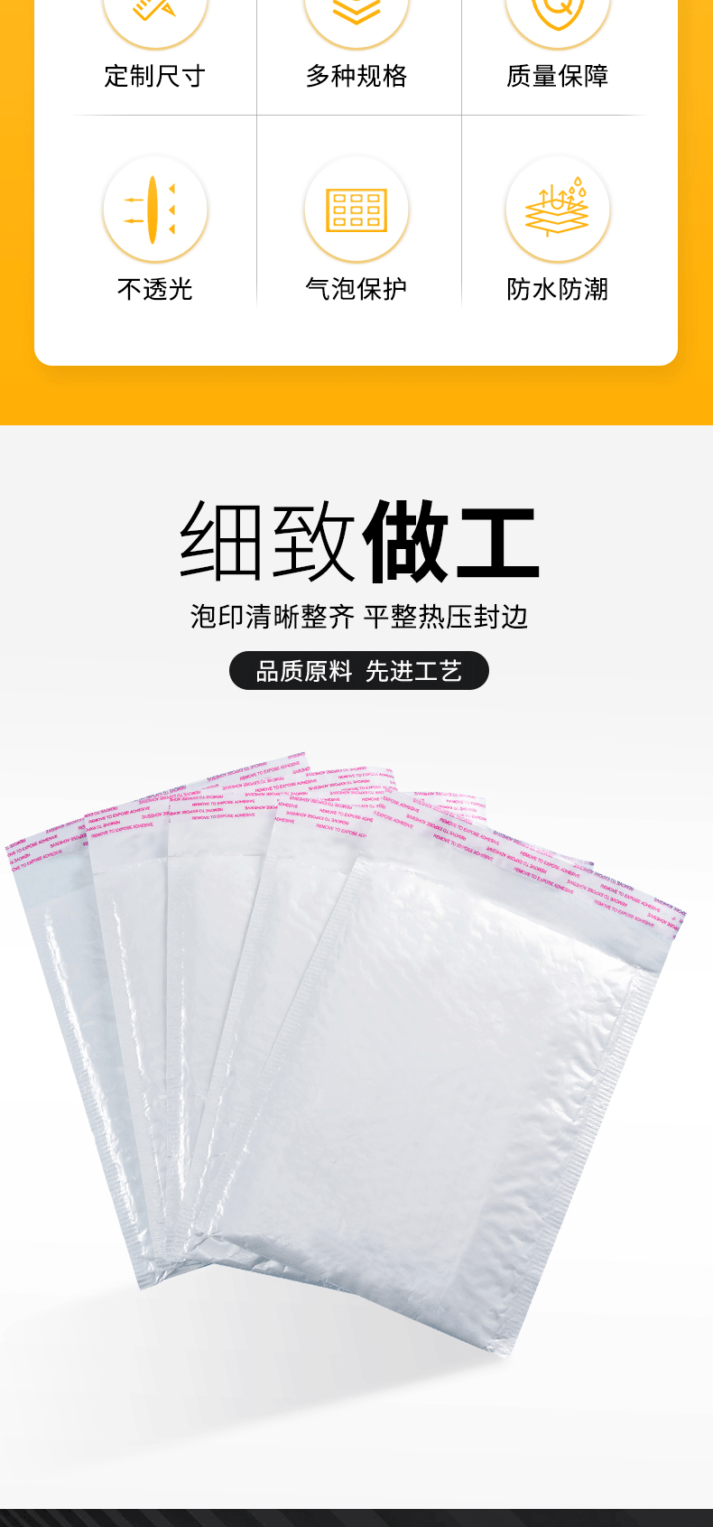 外贸出口快递气泡袋自粘袋白色珠光膜泡沫打包袋长条信封袋包装袋