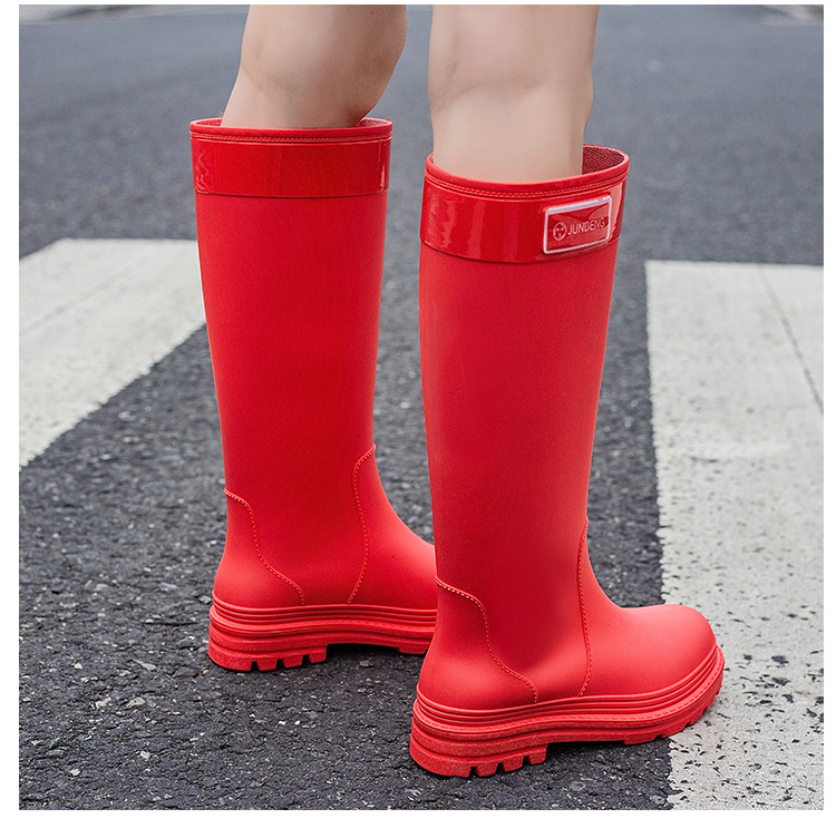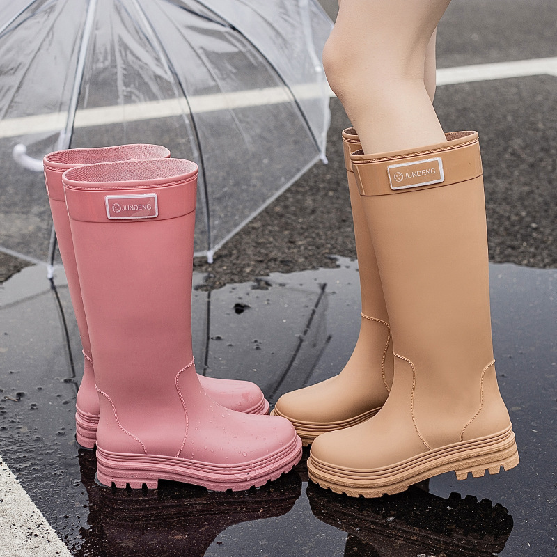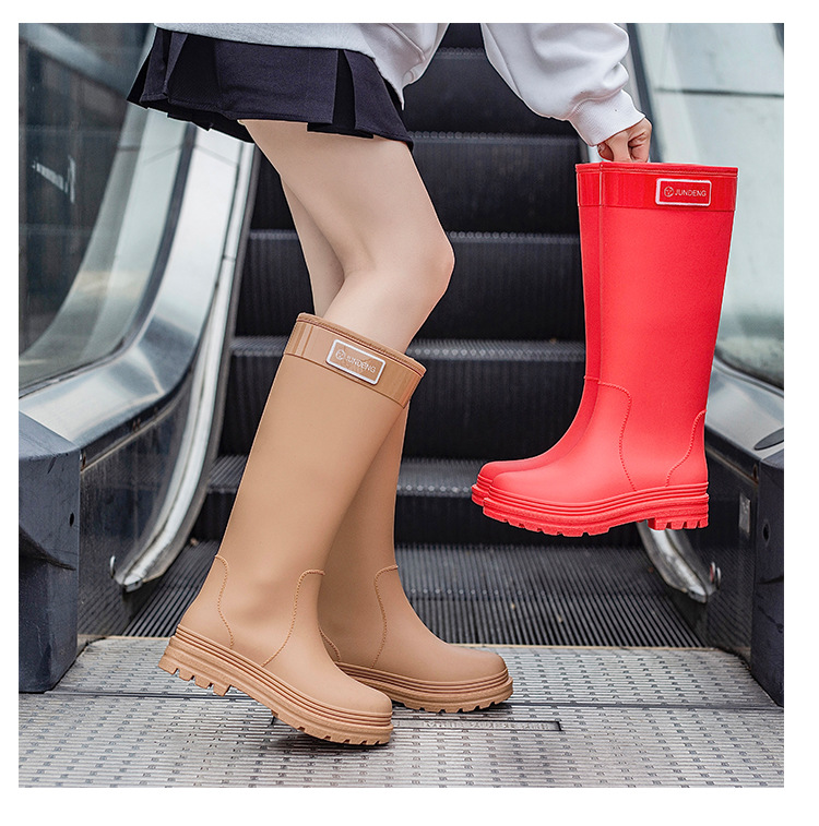 春秋网红高筒女涉水靴女士海边雨鞋时尚雨靴雨林徒步38cm胶鞋水鞋