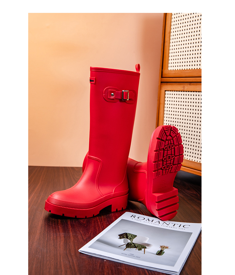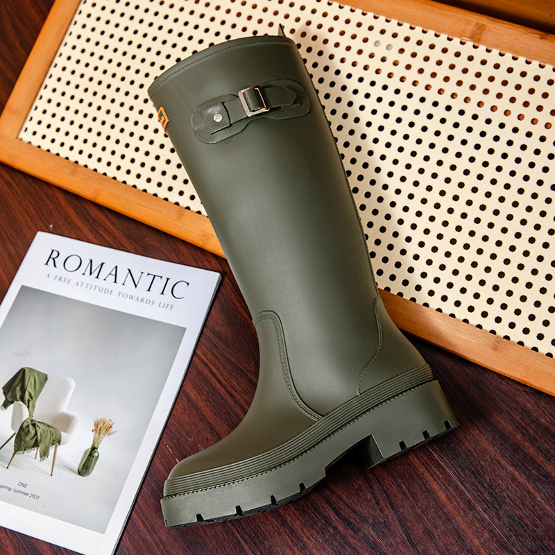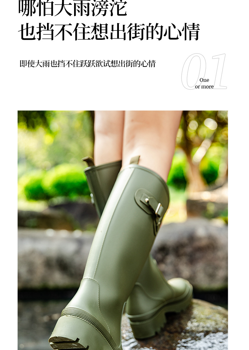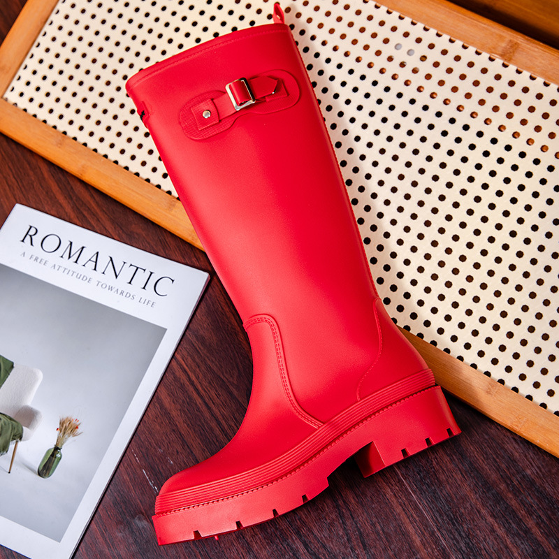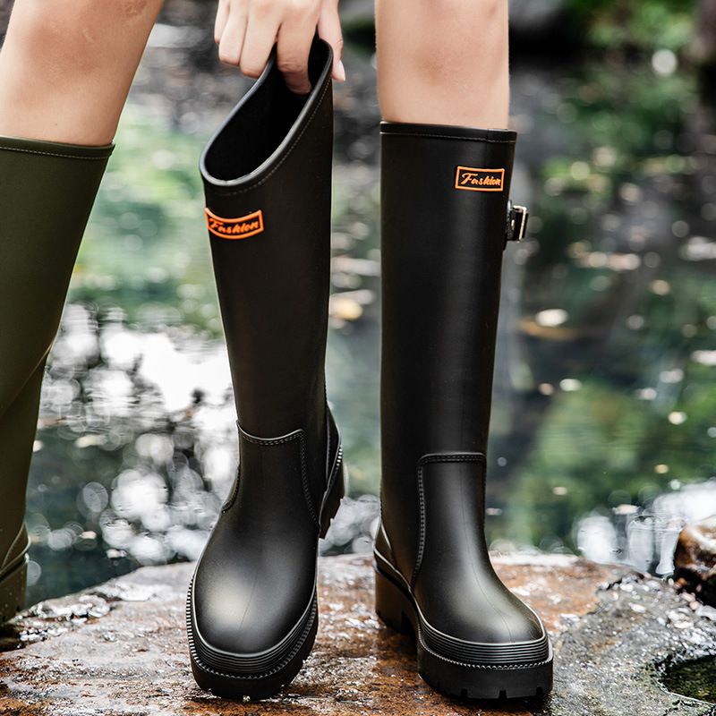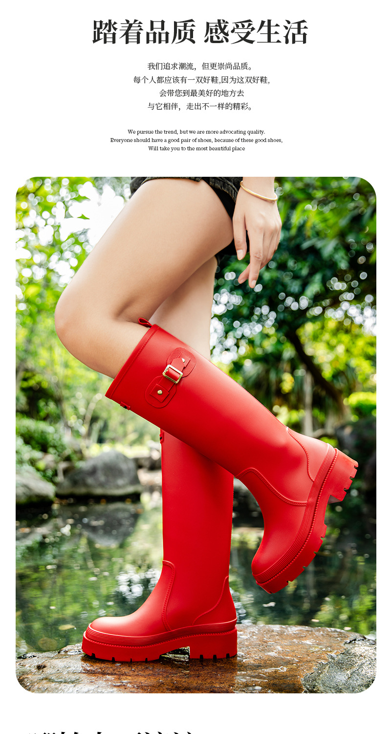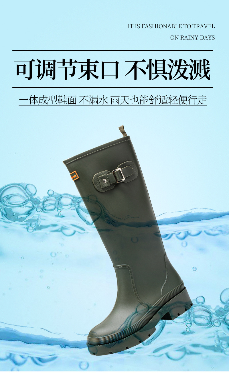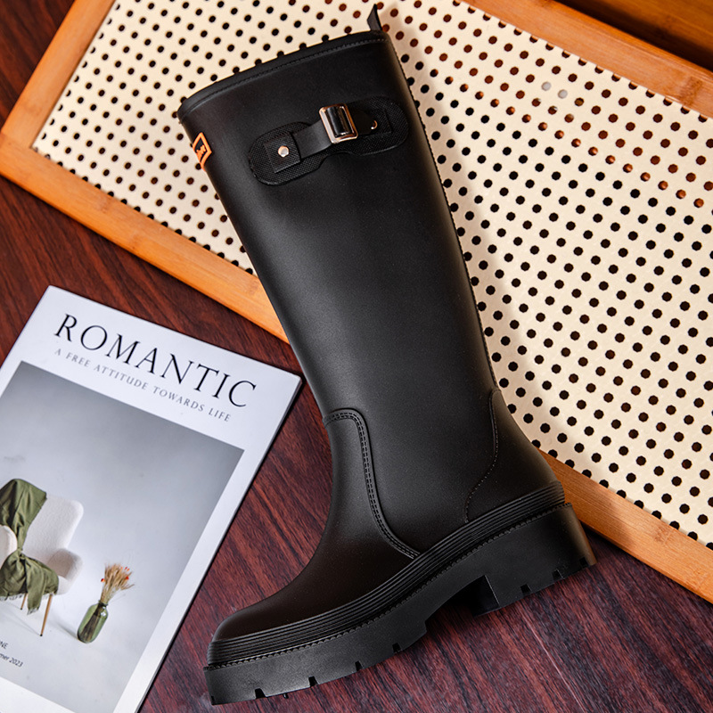 跨境防水雨鞋女成人高筒雨靴搭扣户外长筒水鞋马丁靴机车靴防水鞋