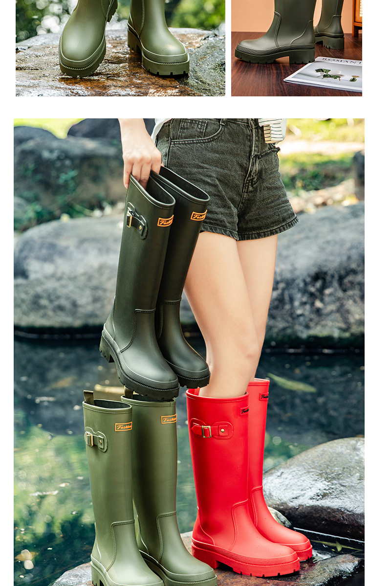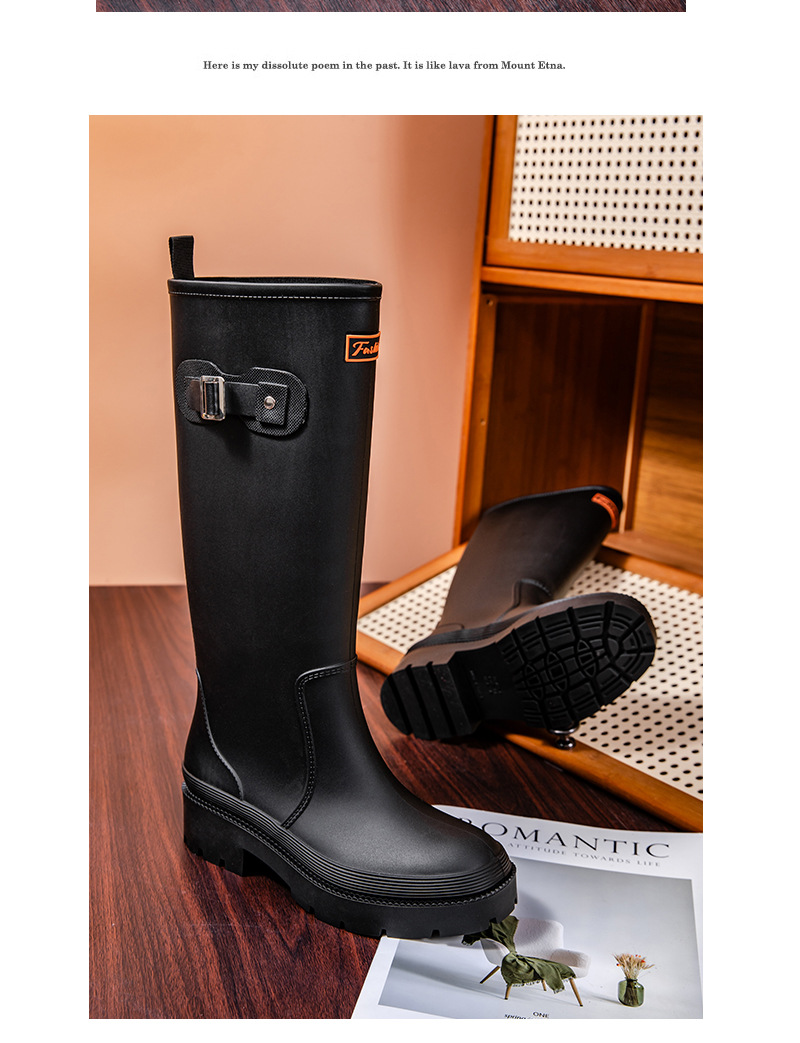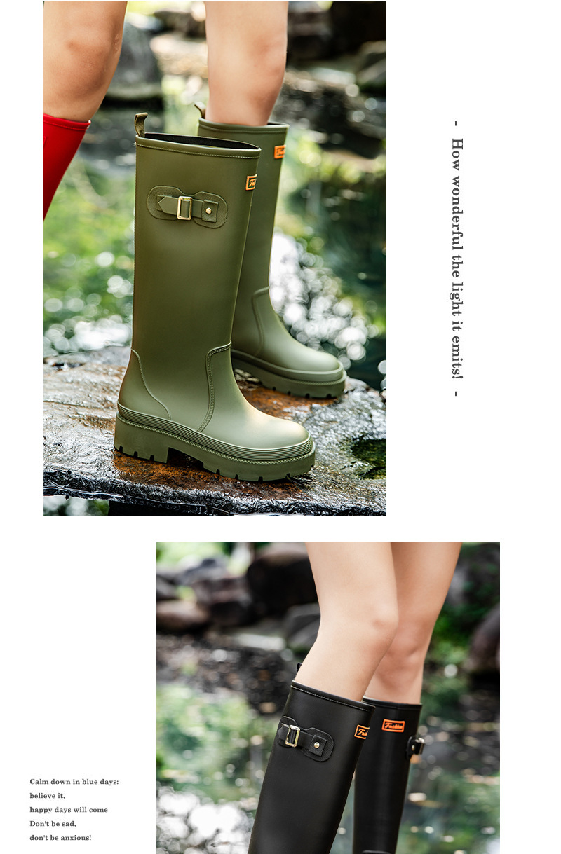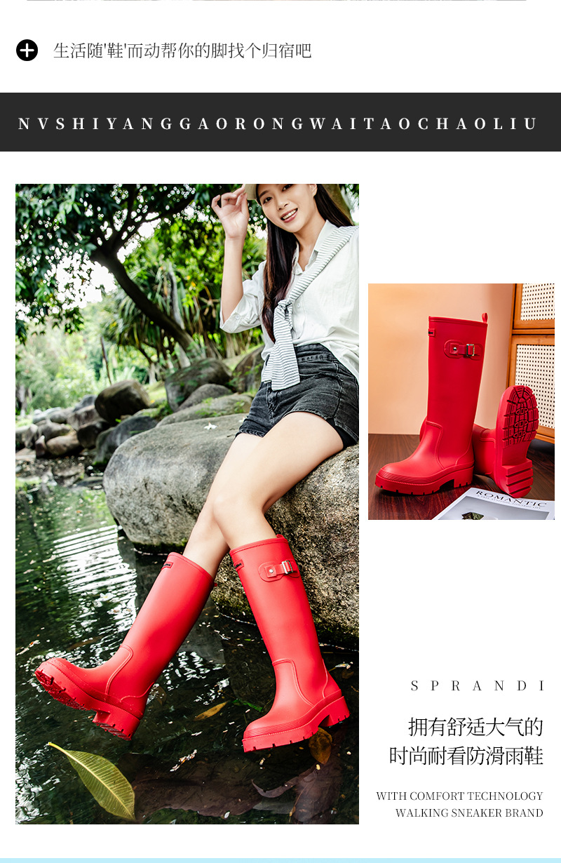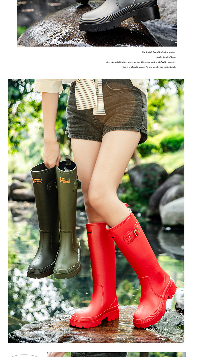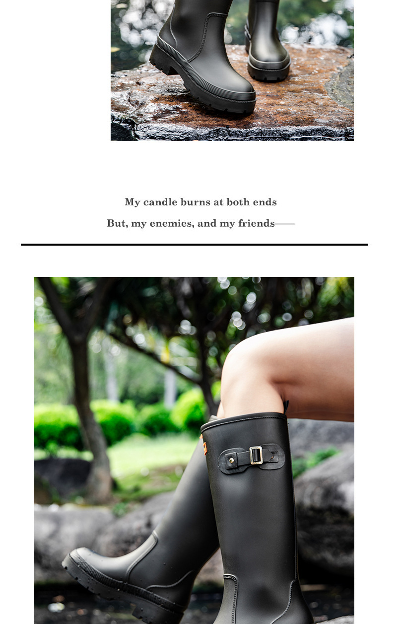 跨境防水雨鞋女成人高筒雨靴搭扣户外长筒水鞋马丁靴机车靴防水鞋
