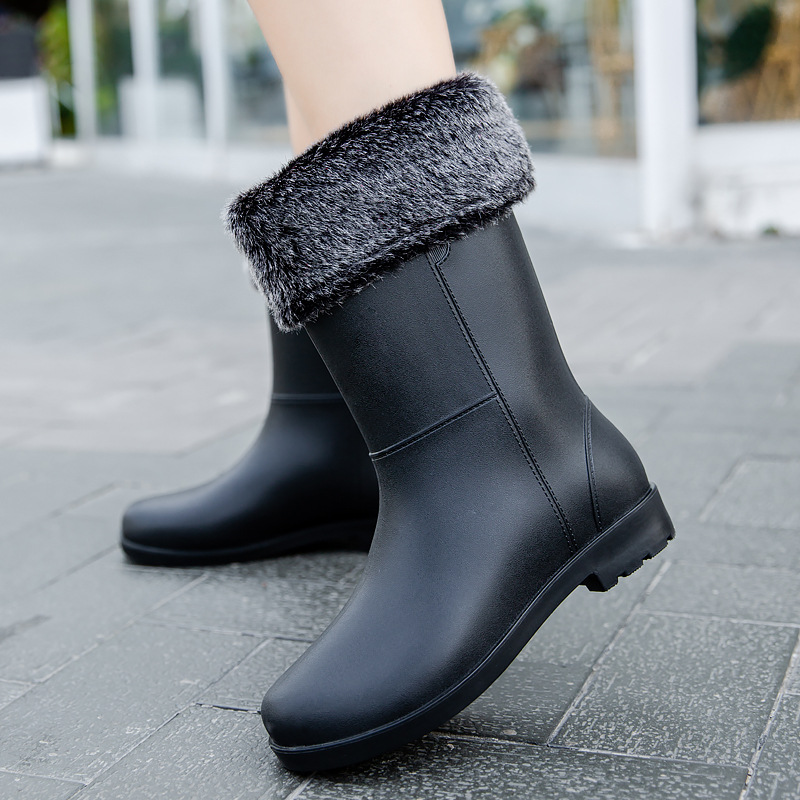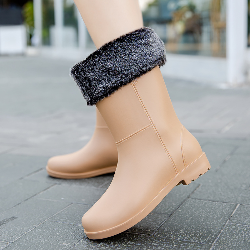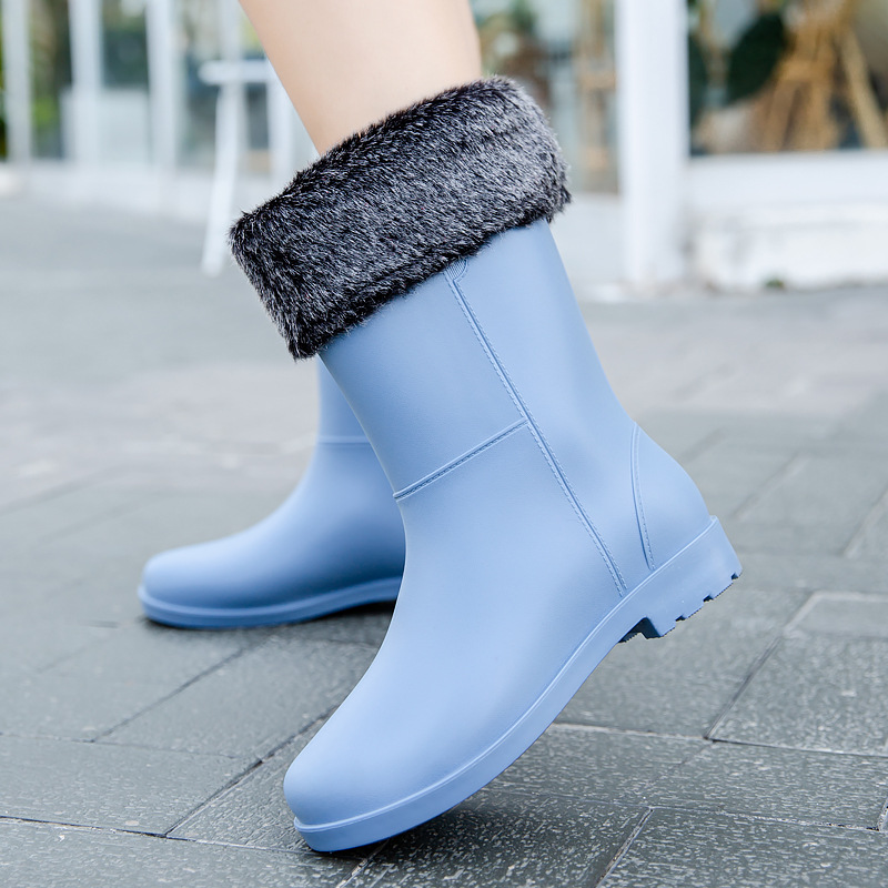 雨鞋女款时尚成人网红中筒加绒雨靴厚底轻便水鞋防滑防水厨房胶鞋