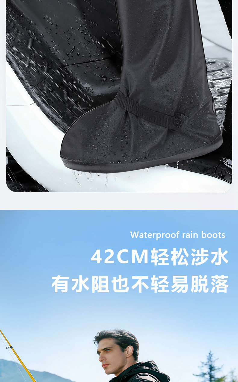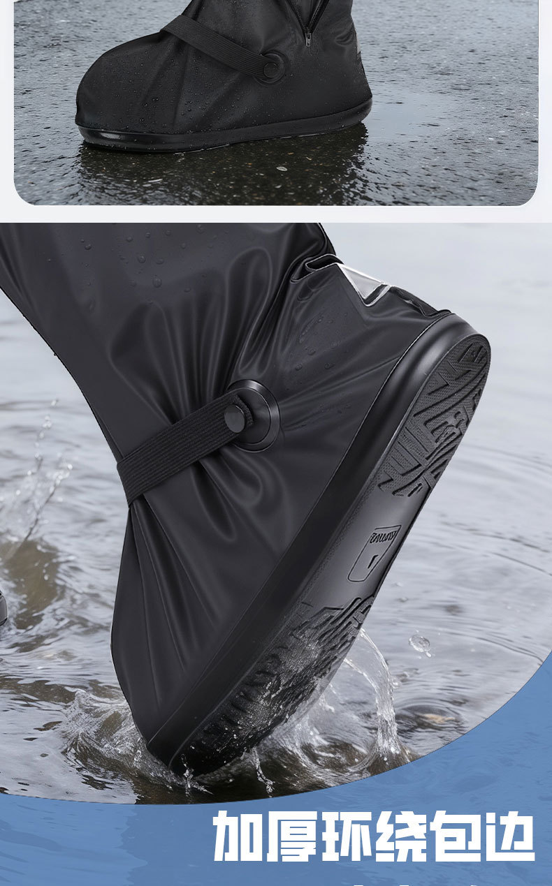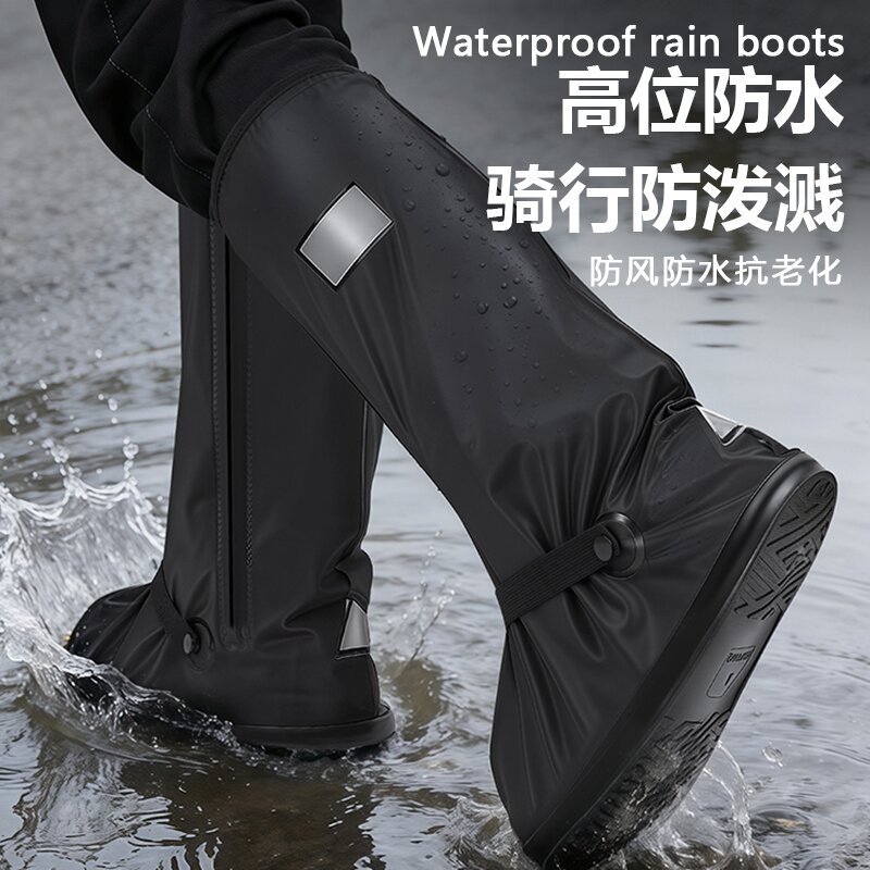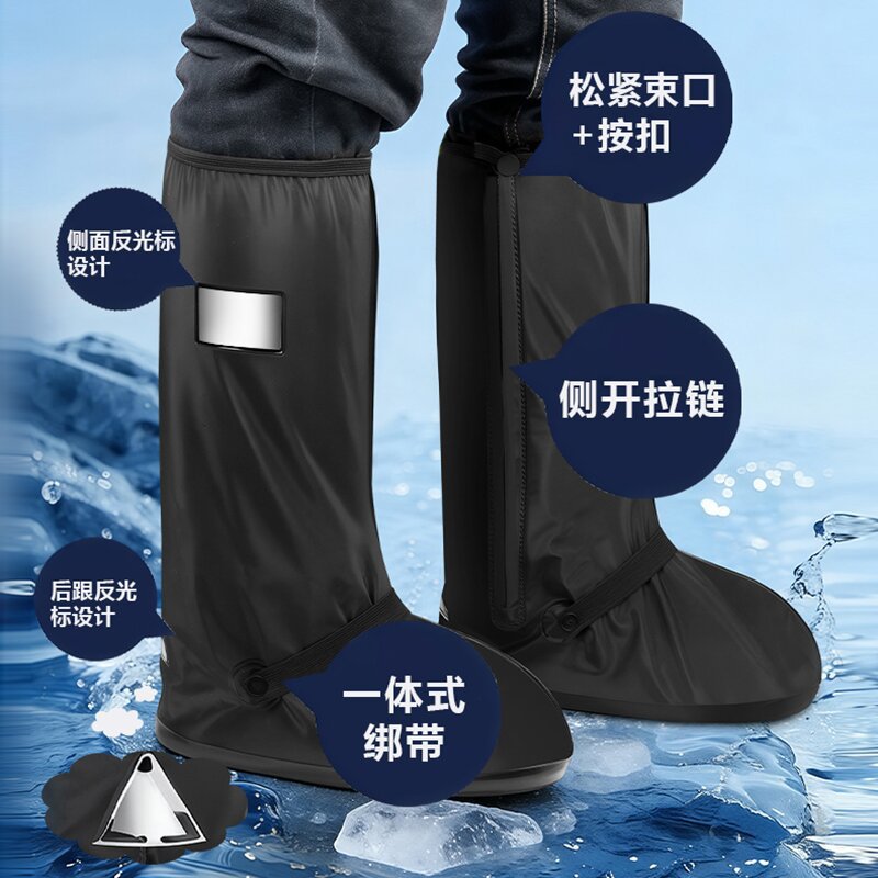 成人防水鞋套户外旅行防雨鞋套绷带款加厚防滑长筒雨靴套鞋套批发