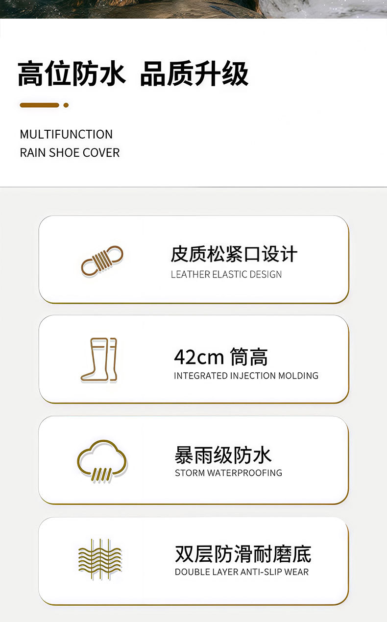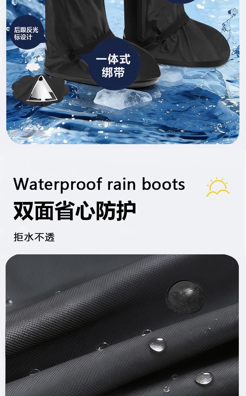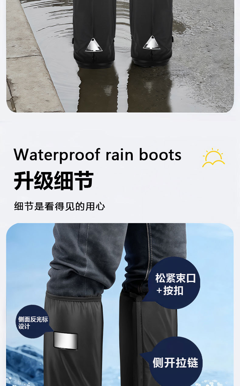 成人防水鞋套户外旅行防雨鞋套绷带款加厚防滑长筒雨靴套鞋套批发