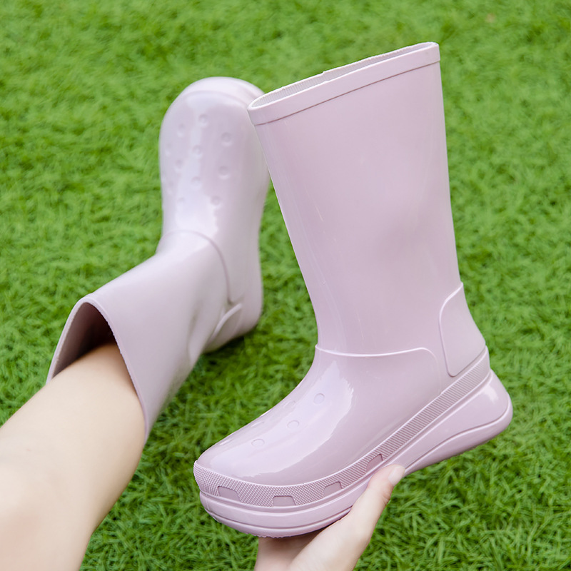 时尚外穿高筒成人女士时尚果冻雨鞋防水鞋防滑平底女式雨靴